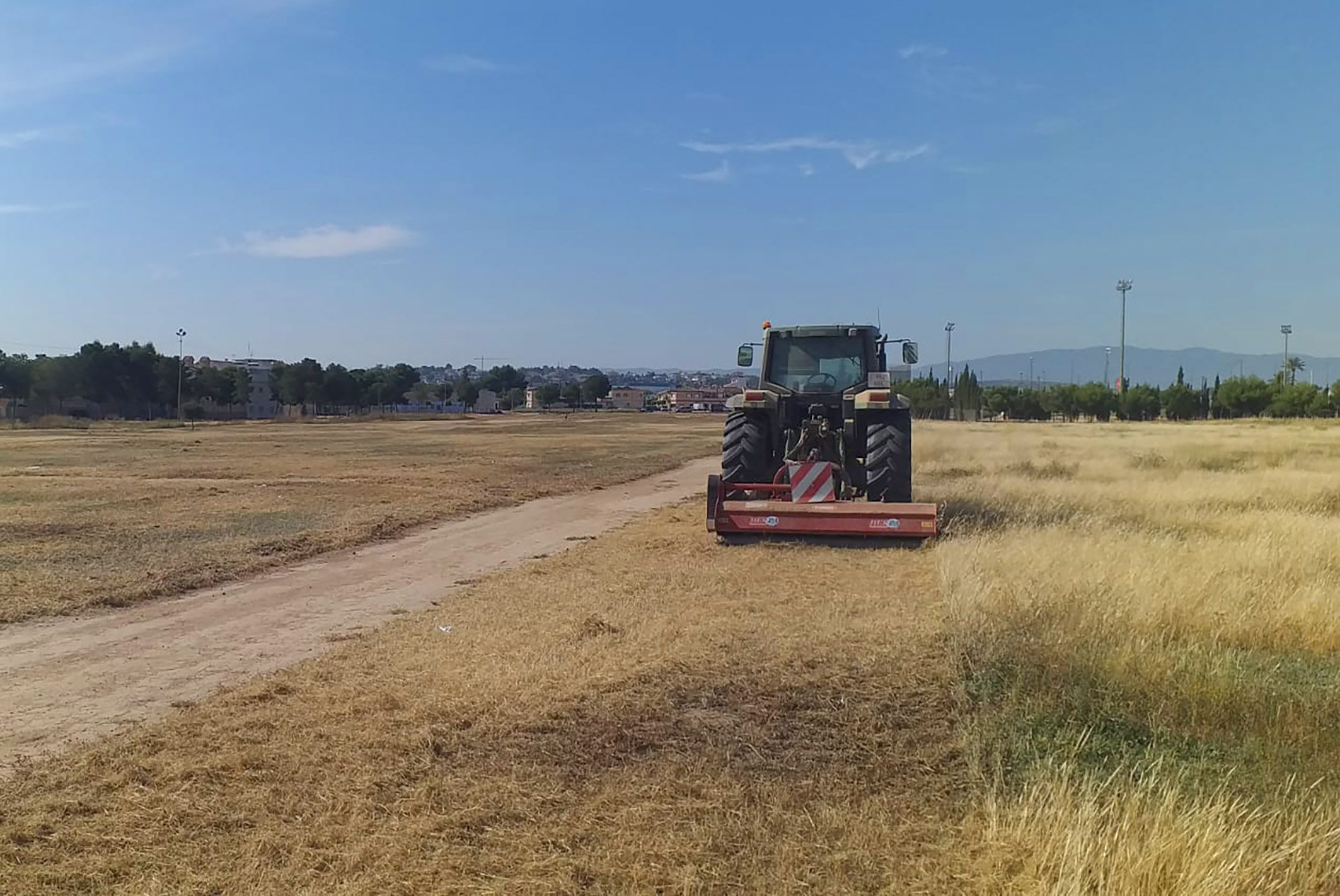 La Concejalía de Mantenimiento de la Ciudad de Las Torres de Cotillas ha comenzado las labores de desbroce de los terrenos municipales del conocido como parque de la Emisora. En total serán 65.000 m2 de superficie los que se trabajen con tractor con desbrozadora para eliminar el desmesurado crecimiento de malas hierbas provocado por las numerosas lluvias de este año. “Esta situación provoca un alto riesgo de incendio, tal y como confirma el Plan Infomur, que señala que hay que extremar las precauciones entre el 1 de junio y el 30 de septiembre”, explica el alcalde torreño, Joaquín Vela Fernández.