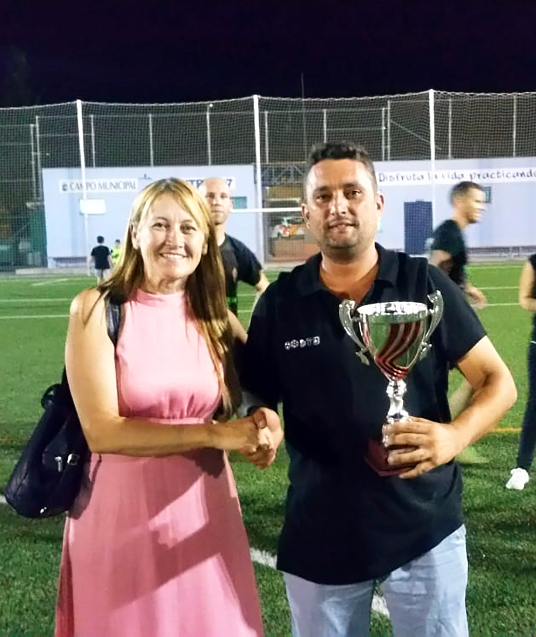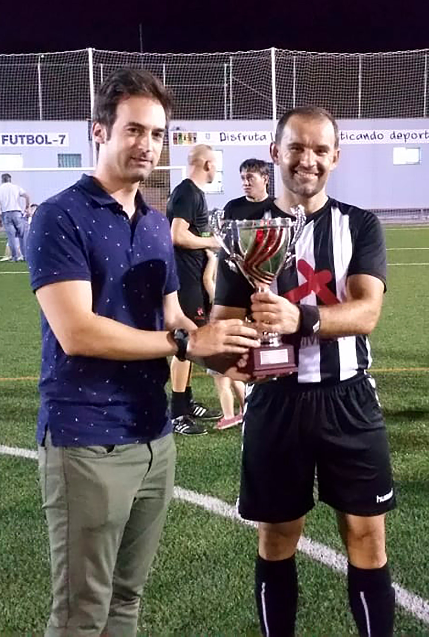 30/08/19 - El deporte sigue teniendo su protagonismo estos días y anoche se disputó en el campo municipal Onofre Fernández Verdú la final del campeonato de veteranos de fútbol 7. En un partido muy emocionante el Aldimesa F.C. se impuso por la mínima (2-1) al Salón Archena y al concluir se entregaron los trofeos, en un acto presidido por los concejales de Salud y Deporte, Alberta Martínez Vázquez, y de Urbanismo, Transición Ecológica, Medio Ambiente y Dominio Público, Francisco Fernández Baño.