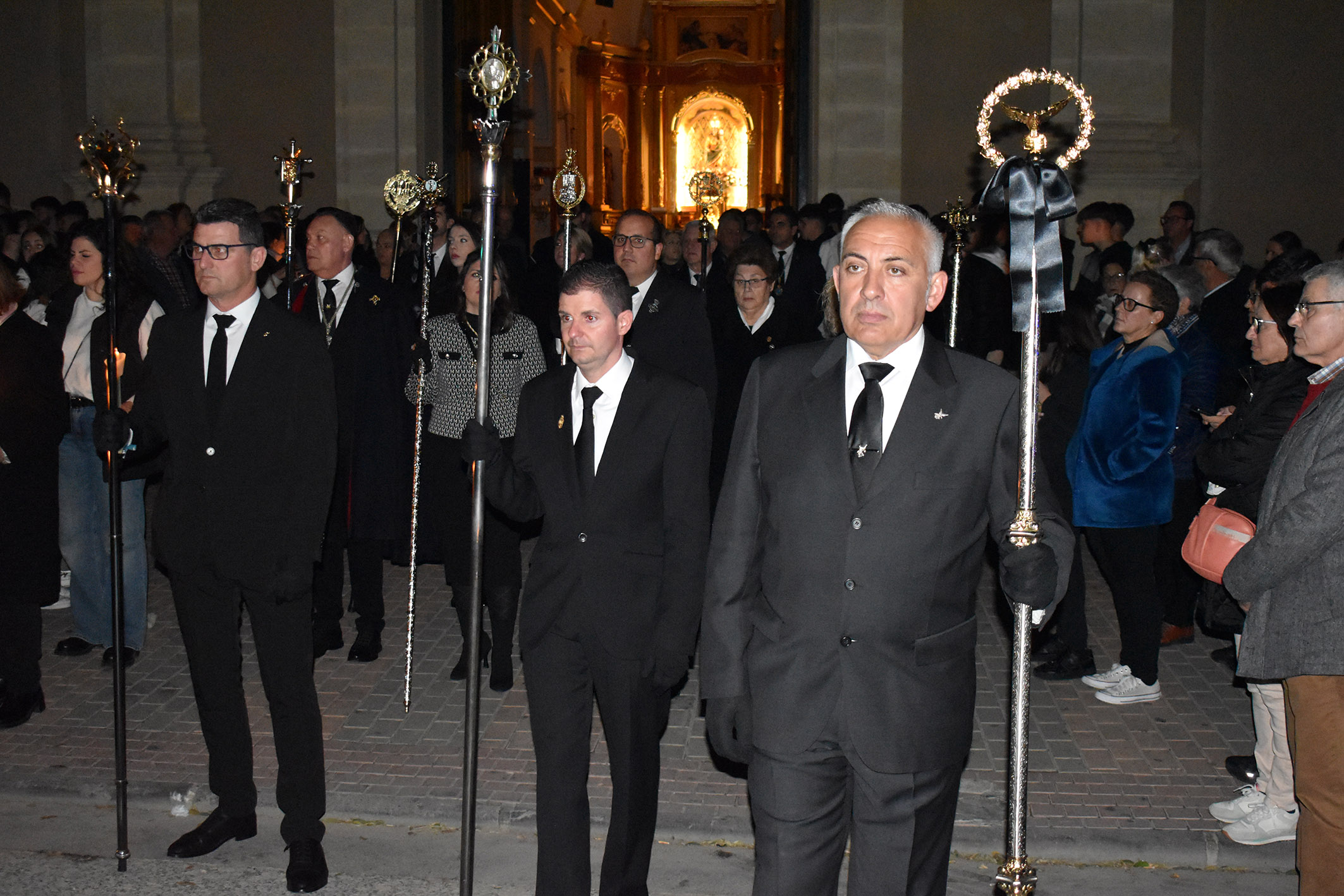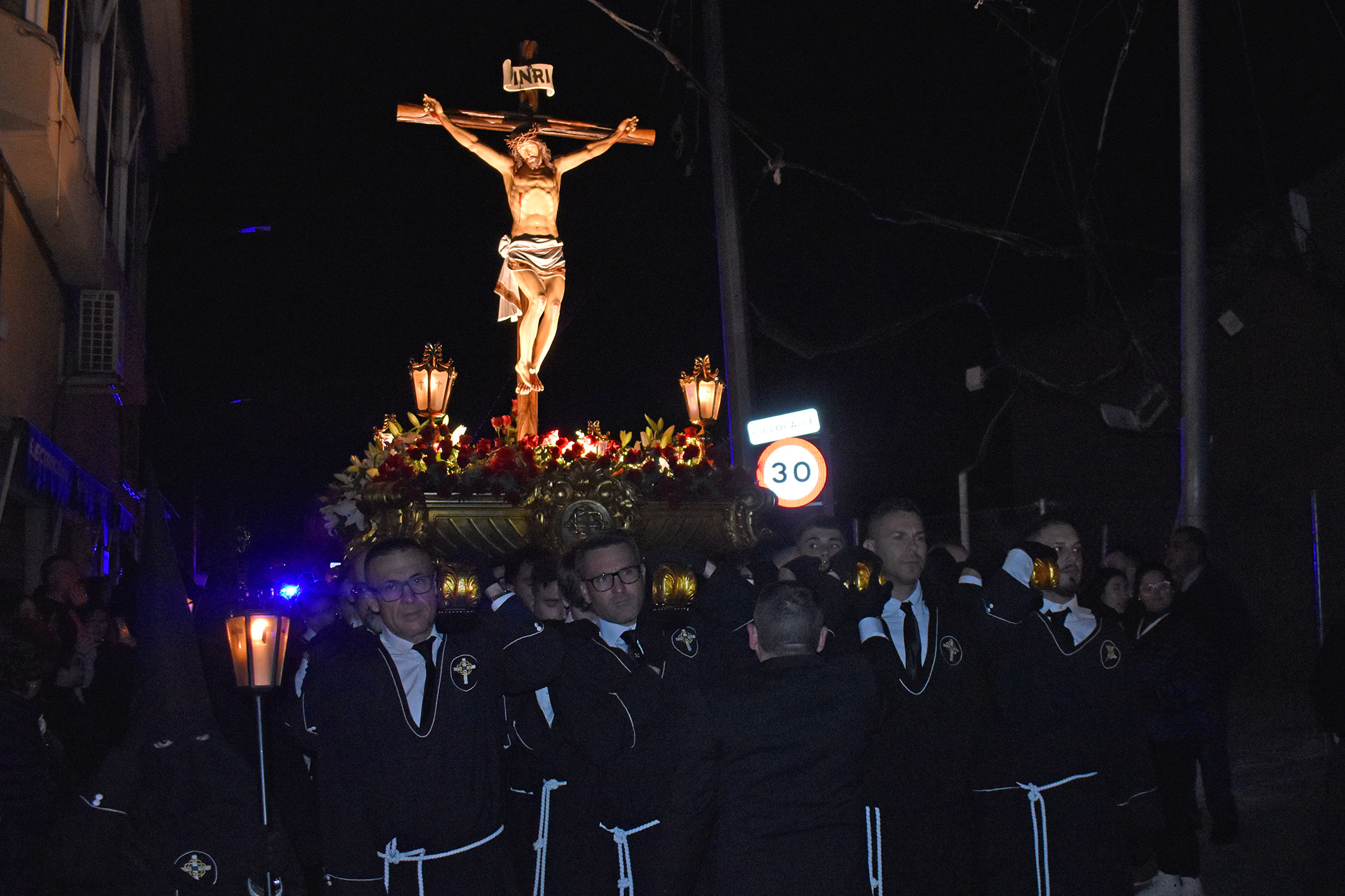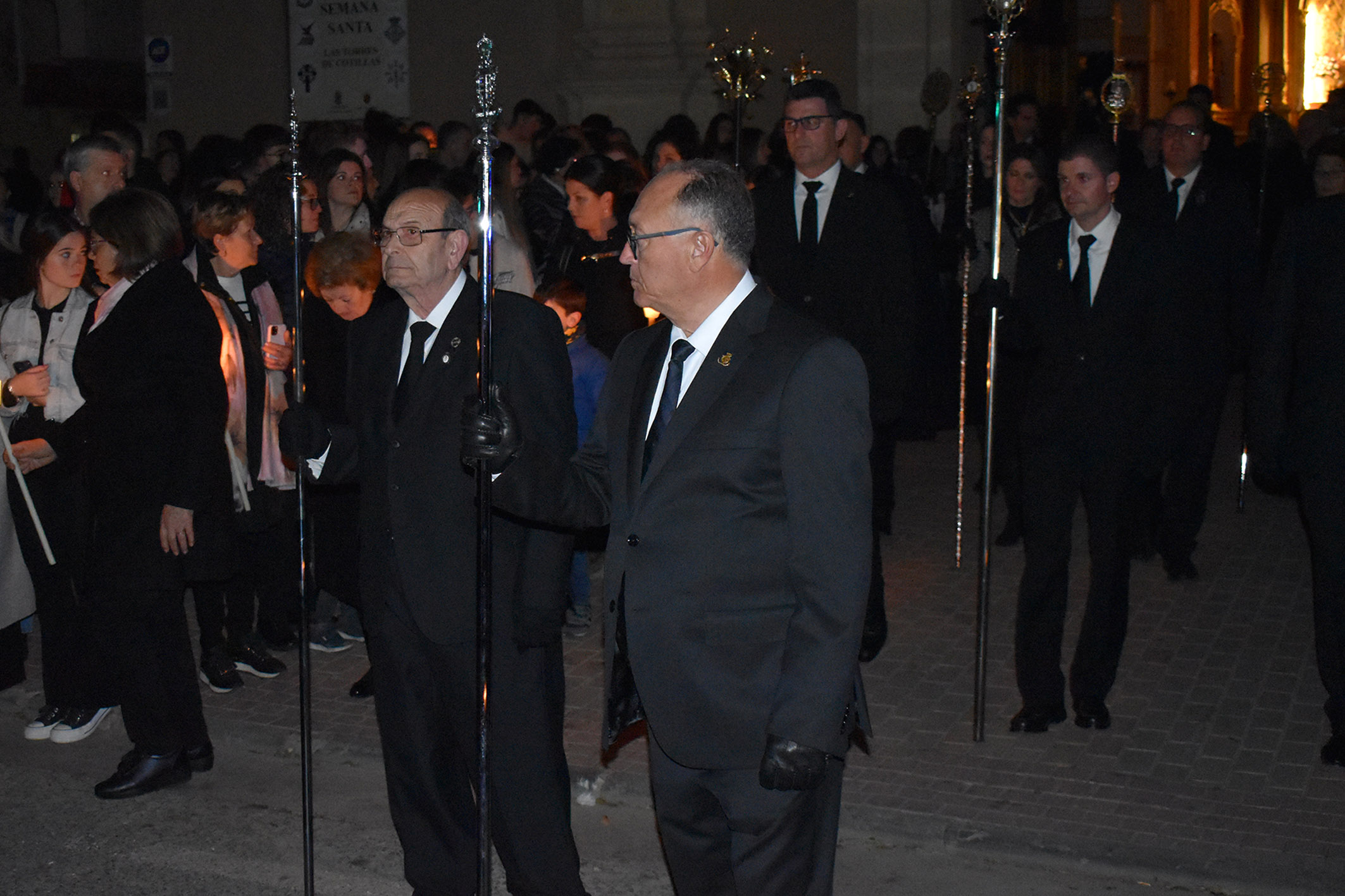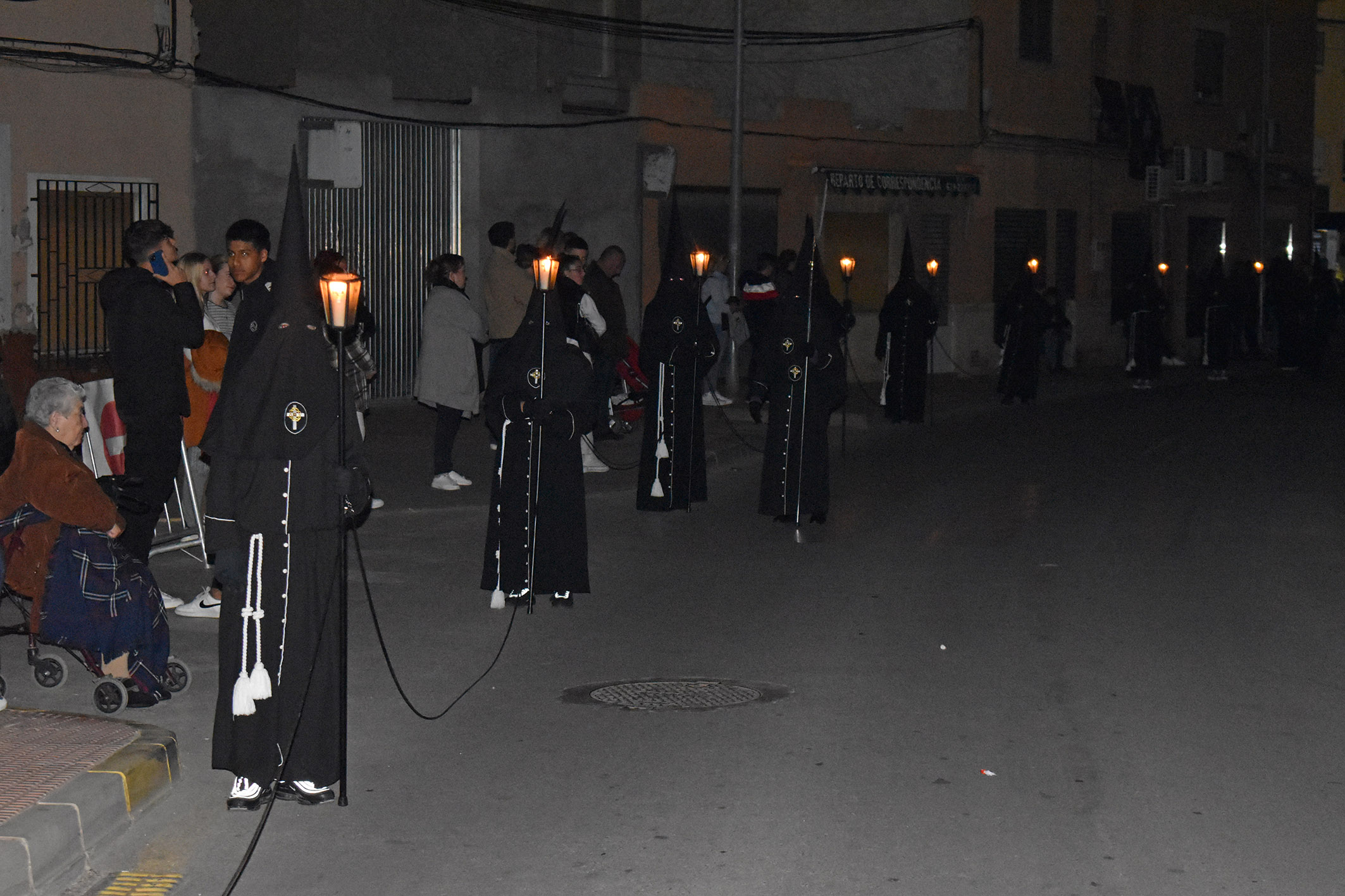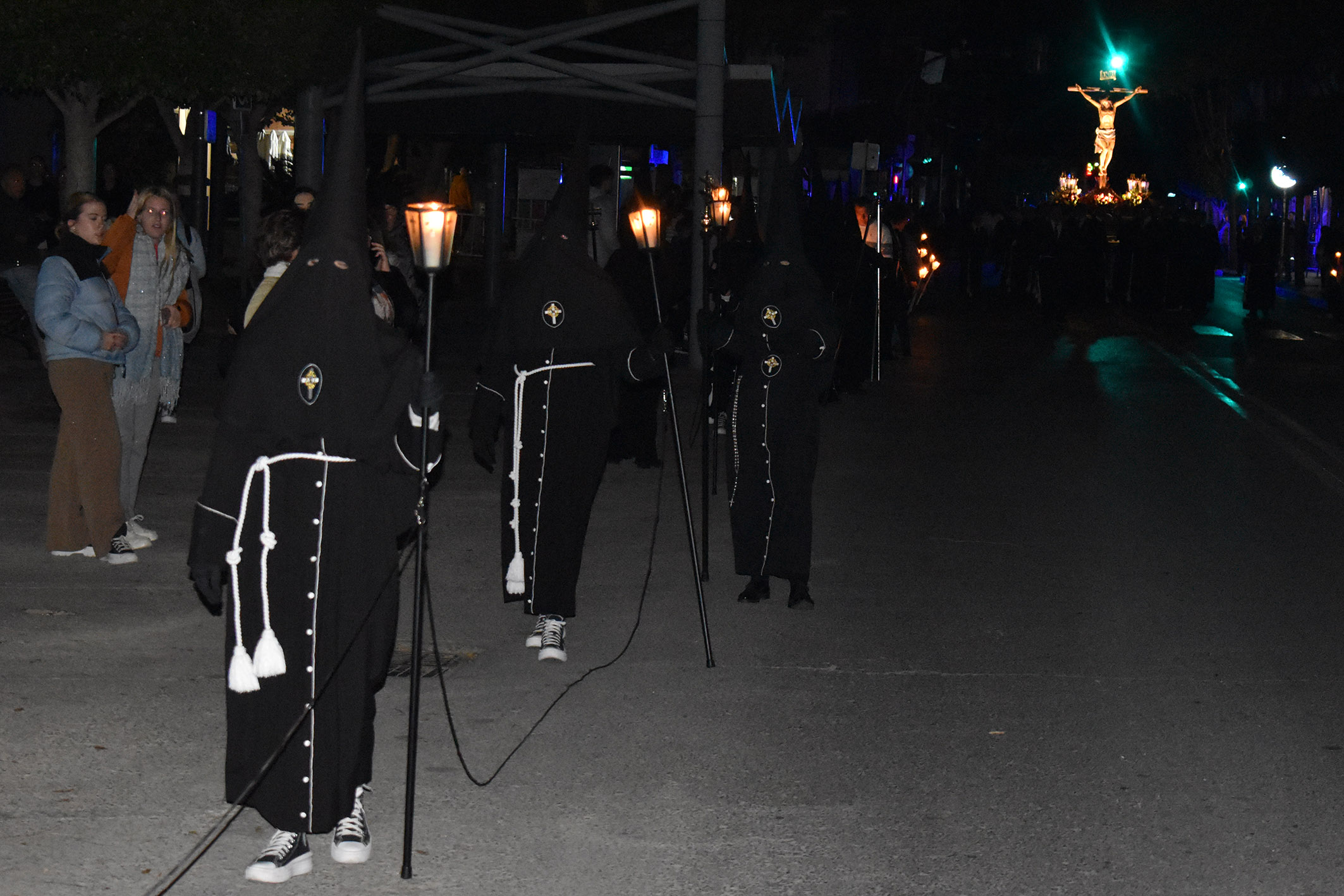 Un desfile presidido por la presidenta del Cabildo Superior de Cofradías, Ángeles Sola, arropada por los personajes destacados de esta Semana Santa: la pregonera, Isabel María Zapata, el pregonero infantil, Jorge Férez, y el Nazareno del Año, Mariano López. En su recorrido, lleno de sentimiento, se pudieron ver diversos altares dispuestos a las puertas de sus casas por los vecinos con las estaciones del Vía Crucis.