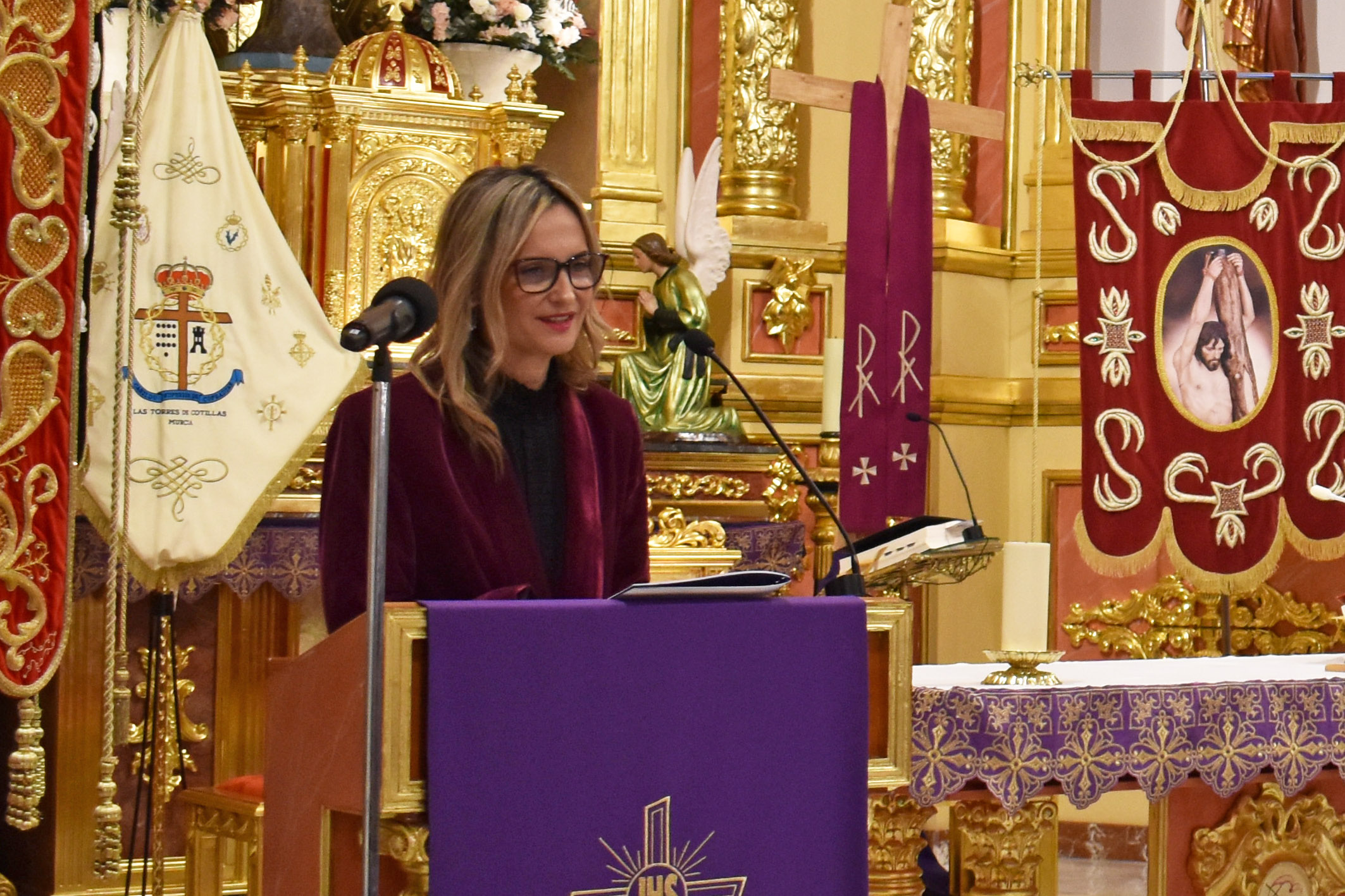 Como anticipo a la lectura del pregón, un cortejo con representación de todas las cofradías torreñas recorrió las calles del municipio. Y ya en el templo este acto también tuvo su parte artística, ya que la agrupación musical Medina Siyasa de Cieza interpretó diversos temas de Semana Santa, la peña torreña L’Almazara colaboró con el canto de una saeta y un cuerpo de baile -donde participaba María, una de las hijas de la pregonera- puso el toque flamenco.