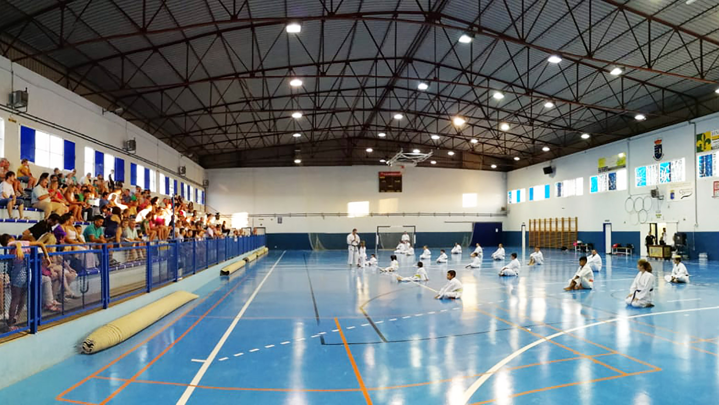 El pabellón acoge un curso de defensa personal y una exhibición de kárate