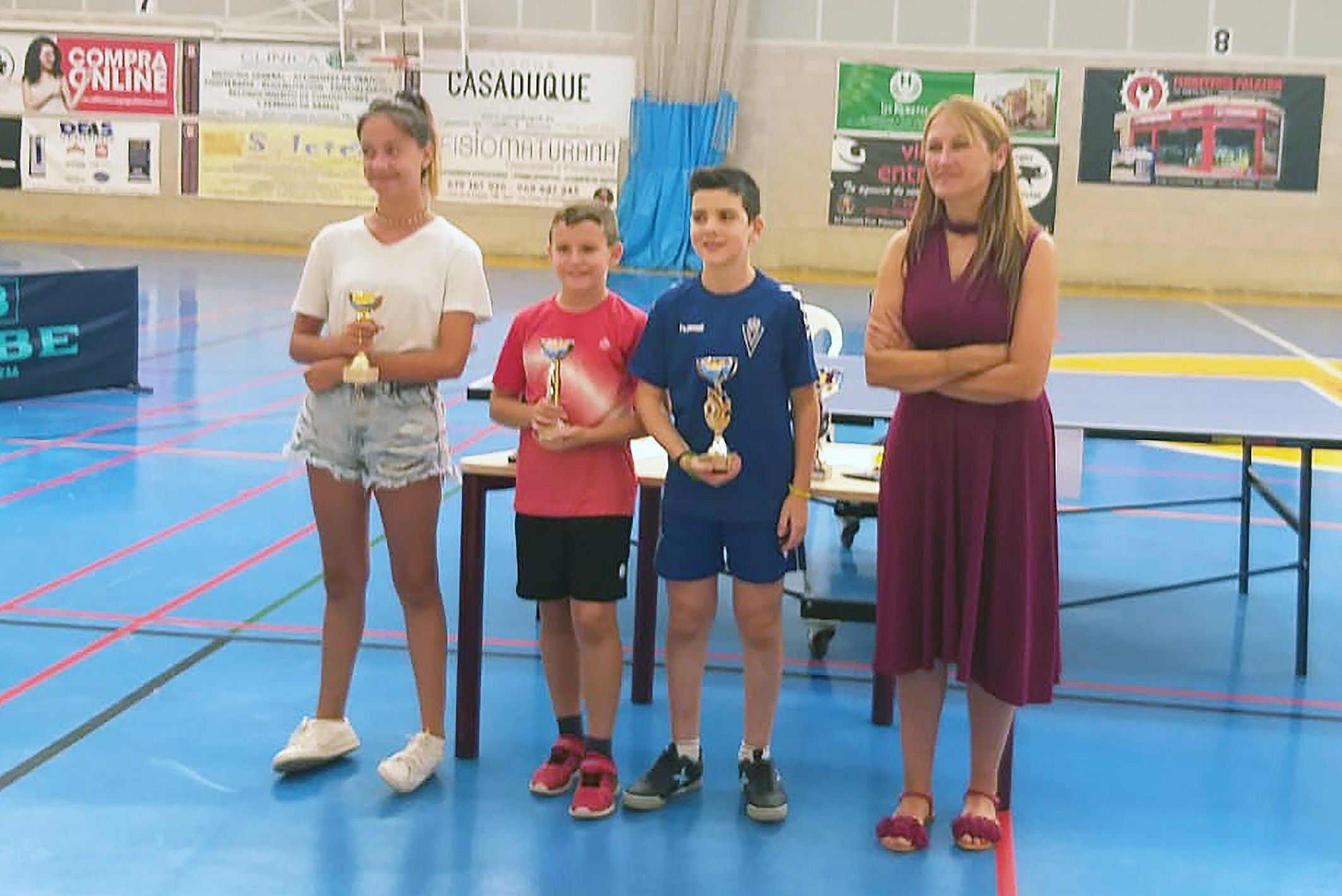26/08/19 - Unos 20 participantes de todas las edades han competido en la mañana de hoy lunes 26 de agosto en el campeonato de tenis de mesa disputado en el pabellón Mireia Belmonte. La entrega de trofeos a los mejores del torneo celebrado con motivo de las fiestas 2019 ha estado presidida por la concejala de Salud y Deporte, Alberta Martínez Vázquez.