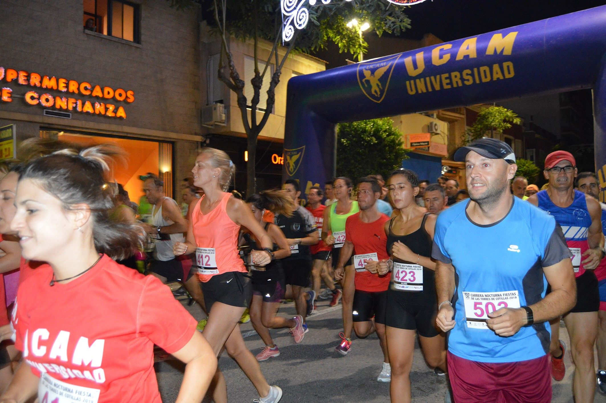 29/08/19 – La Carrera Nocturna Fiestas de Las Torres de Cotillas celebró su 25ª edición ayer miércoles 28 de agosto y lo hizo de la mejor manera: aumentando el éxito de las últimas ediciones con la participación de 550 atletas de todas las edades, su récord. Organizada por la Concejalía de Salud y Deporte en colaboración con el club Atletismo Las Torres y Protección Civil, la prueba modificaba su recorrido para hacerlo más cómodo a sus participantes. Con salida en la calle Mayor, los atletas tomaron rumbo hacia la calle Fernández Vera para girar por la calle Campo hasta la calle Dalí, seguir por la calle D'Stoup y enfilar de nuevo la meta en la calle Mayor.