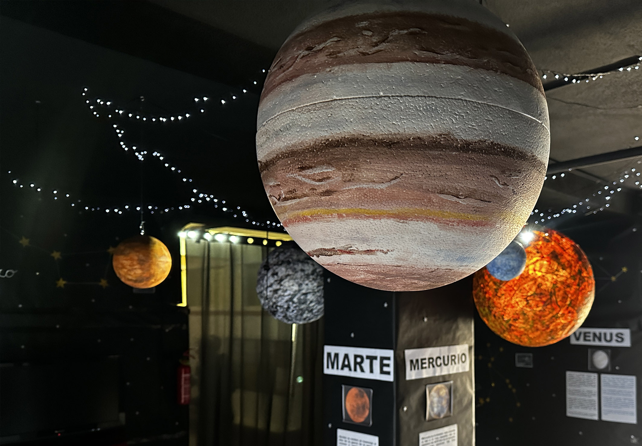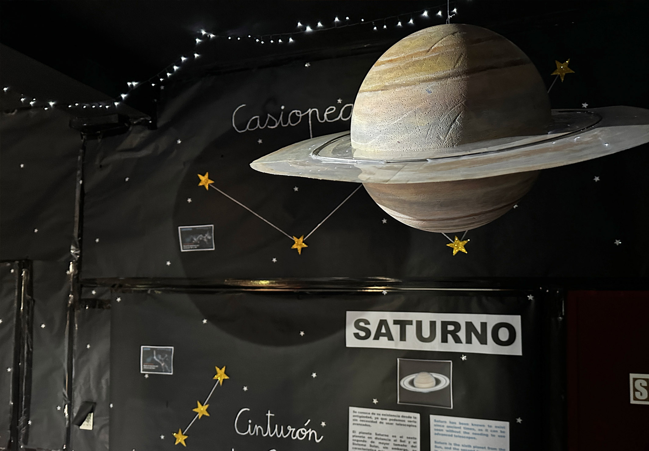 Para hacer esta propuesta más inmersiva, la decoración de esta iniciativa abarca todo el centro, cuyos pasillos y aulas están tematizados con explicaciones astronómicas. Especial interés despierta el hall de entrada del colegio, donde se puede ver una representación del sistema solar (con el satélite Sputnik incluido).
