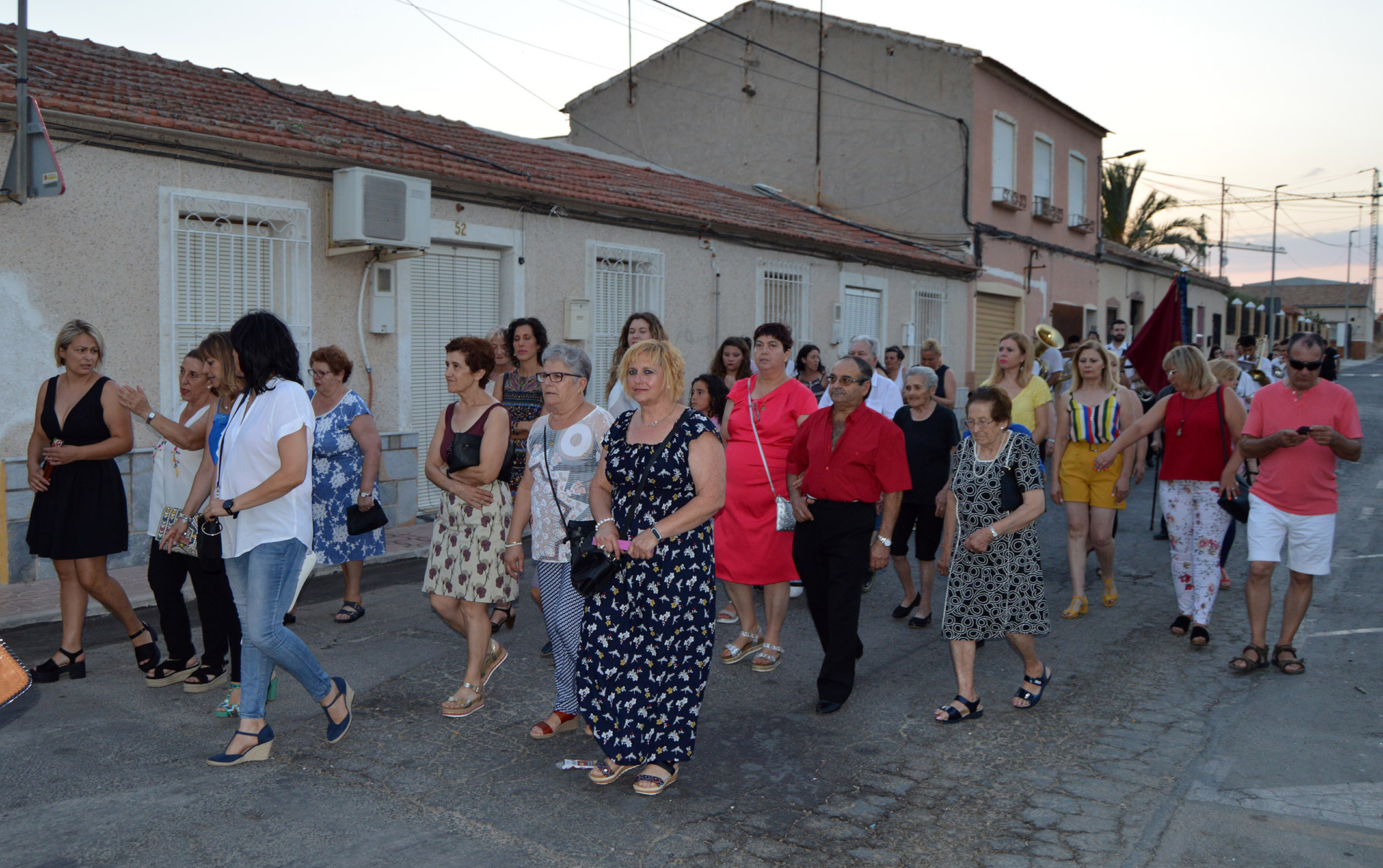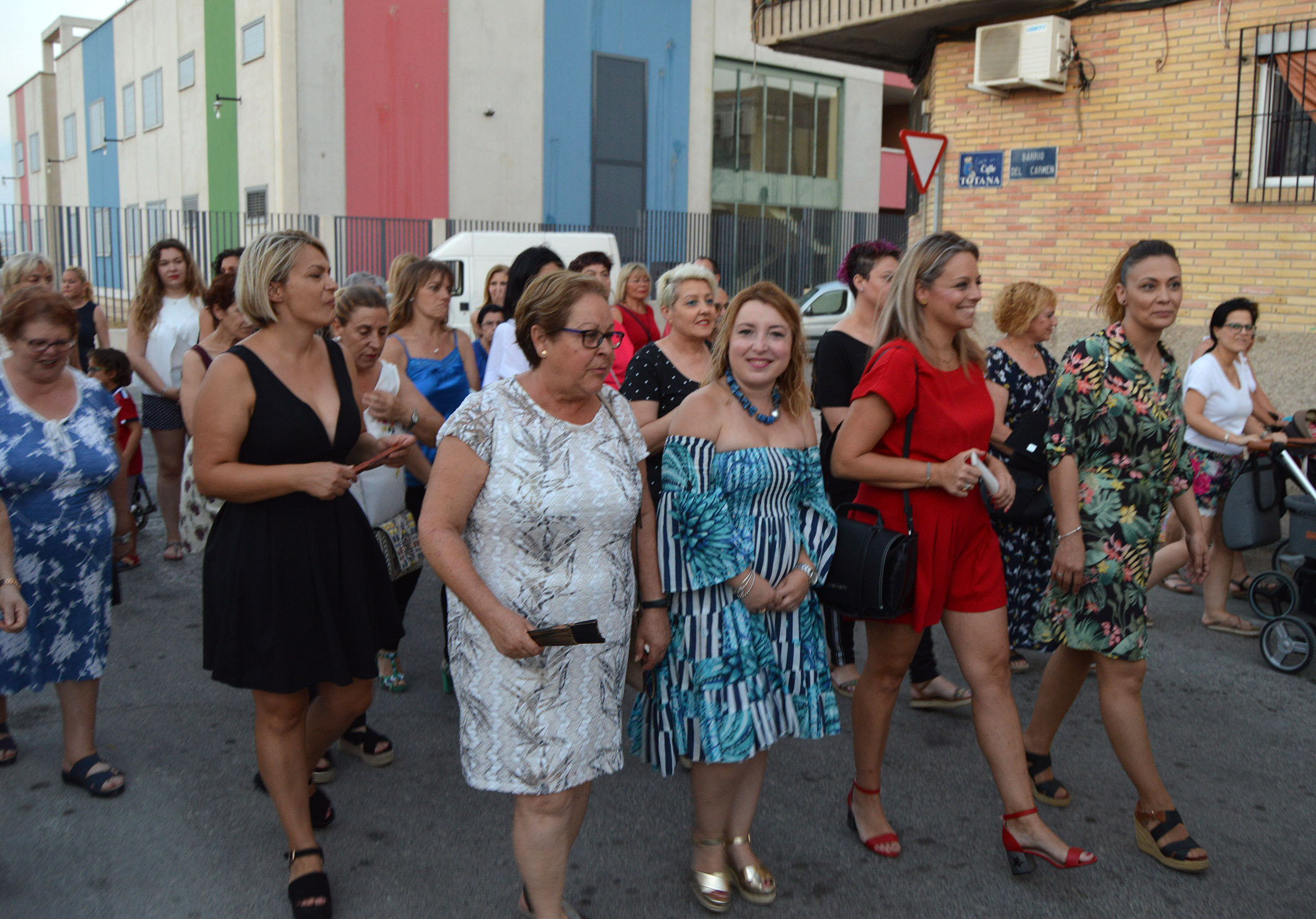 15/07/19 – El barrio del Carmen de Las Torres de Cotillas concluyó en la noche de ayer domingo 14 de julio sus fiestas patronales de este año. Como es tradición, el último acto del programa festivo fue la procesión con la imagen de la virgen del Carmen por las calles de la barriada. Un desfile que estuvo acompañado de la banda de música local y presidido por el alcalde torreño, Joaquín Vela Fernández, y que como aperitivo contó con una misa oficiada por el párroco Ismael Sánchez.