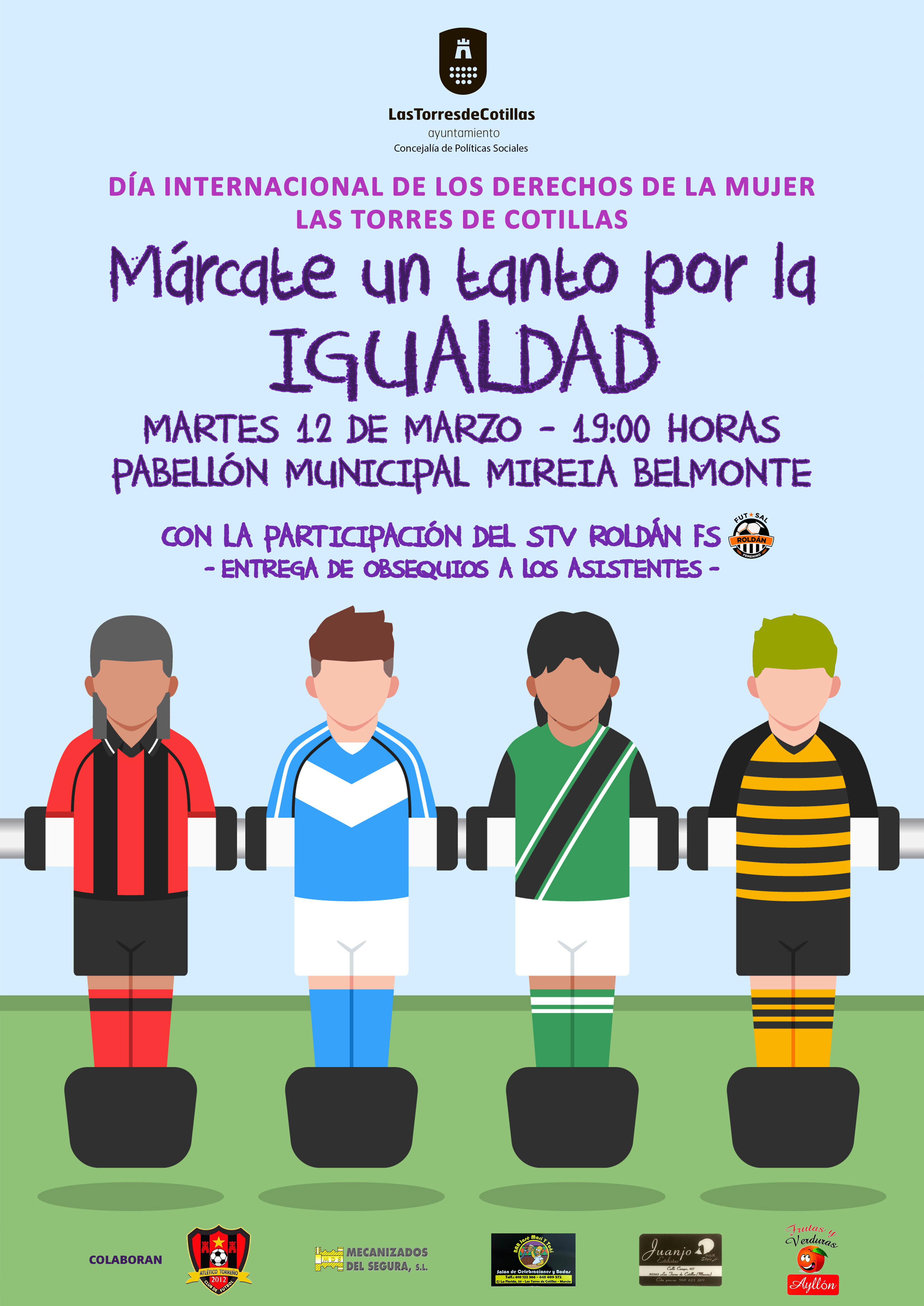 El STV Roldán FS de 1ª División Femenina será el invitado de honor martes 12 de marzo (19:00 horas) del evento deportivo “Márcate un tanto por la igualdad”. Una cita organizada por la Concejalía de Políticas Sociales de Las Torres de Cotillas en el pabellón municipal Mireia Belmonte con motivo de la celebración del 8 de marzo, día internacional de la mujer.
