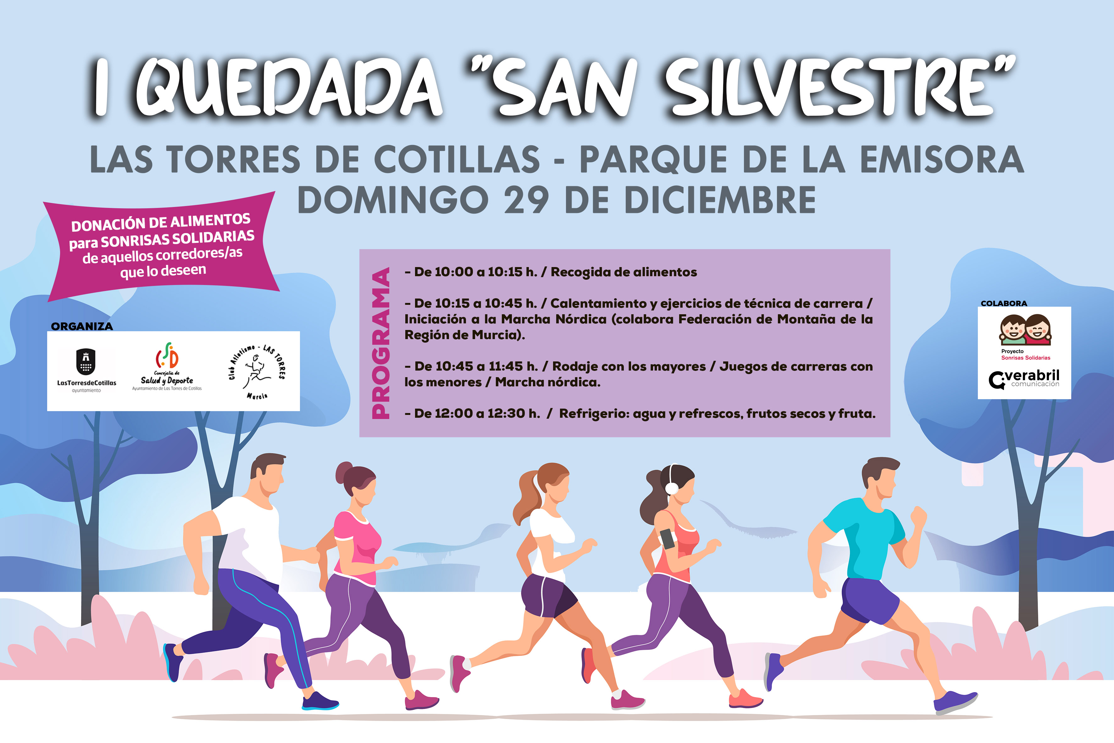 Los terrenos del parque de La Emisora serán escenario de diversas carreras sin carácter competitivo para participantes de todas las edades, que deberán aportar alimentos como inscripción. Además, para reforzar el carácter de jornada de convivencia de este evento deportivo a su conclusión (en torno a las 12 horas) los asistentes podrán degustar un almuerzo gratuito.