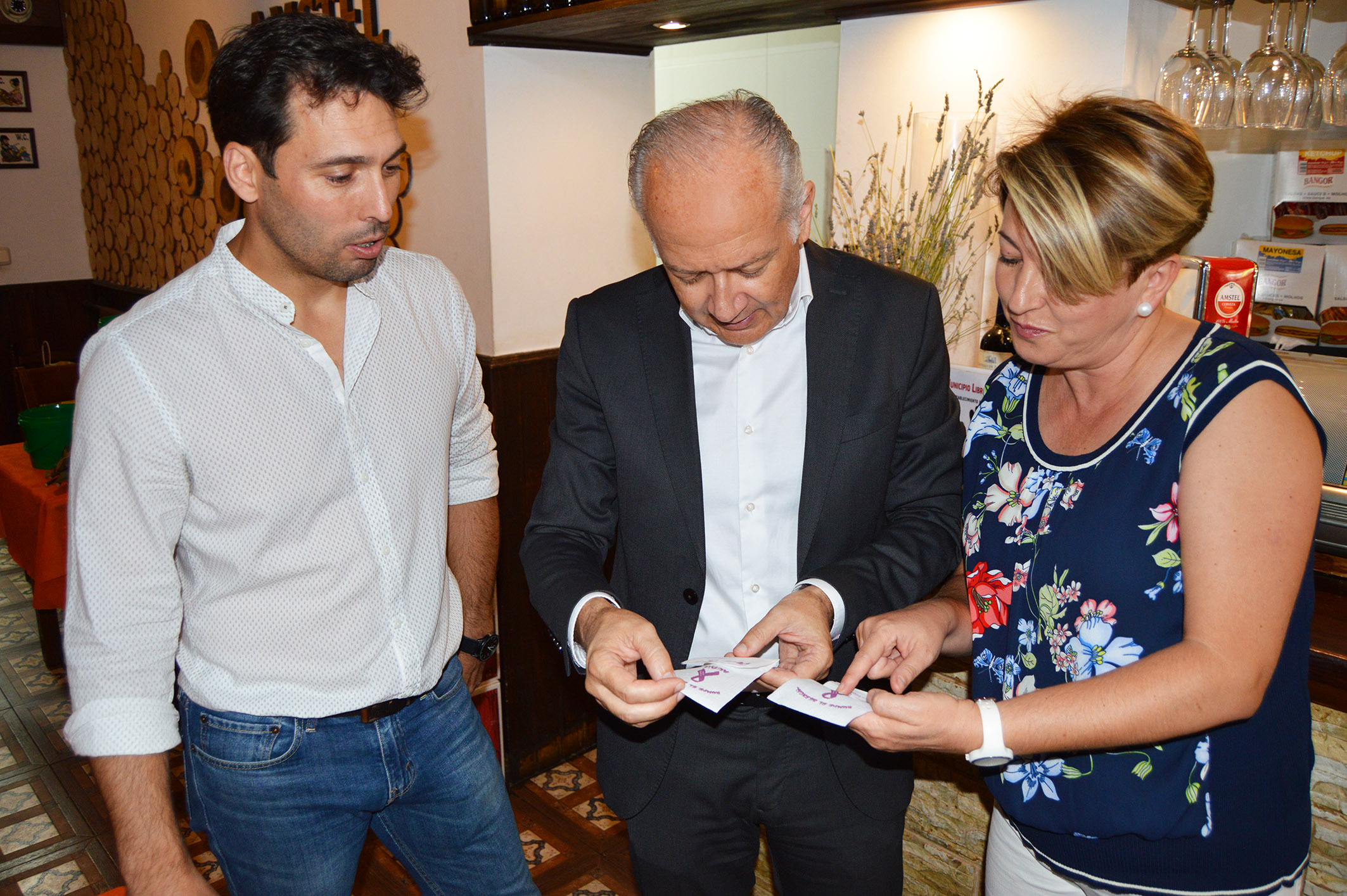 29/08/19 – Un total de 41 establecimientos hosteleros de Las Torres de Cotillas se han adherido a una de las iniciativas de la campaña “En fiestas también, el NO es NO. Por unas fiestas libres de agresiones sexistas”, impulsada por la Concejalía de Igualdad. Esta campaña acompaña la declaración de sus fiestas locales libres de agresiones sexistas, aprobada en pleno municipal, una serie de iniciativas como ésta de divulgación en la que se ha distribuido cartelería y folletos informativos en la hostelería local. “También se han repartido más de 3.000 paquetes de servilletas, de dos tamaños diferentes, con un mensaje de concienciación”, apunta la concejala de Igualdad, María del Mar Ruiz Rosillo, que visitó el pasado lunes 26 de agosto junto al alcalde Joaquín Vela Fernández diversos establecimientos.