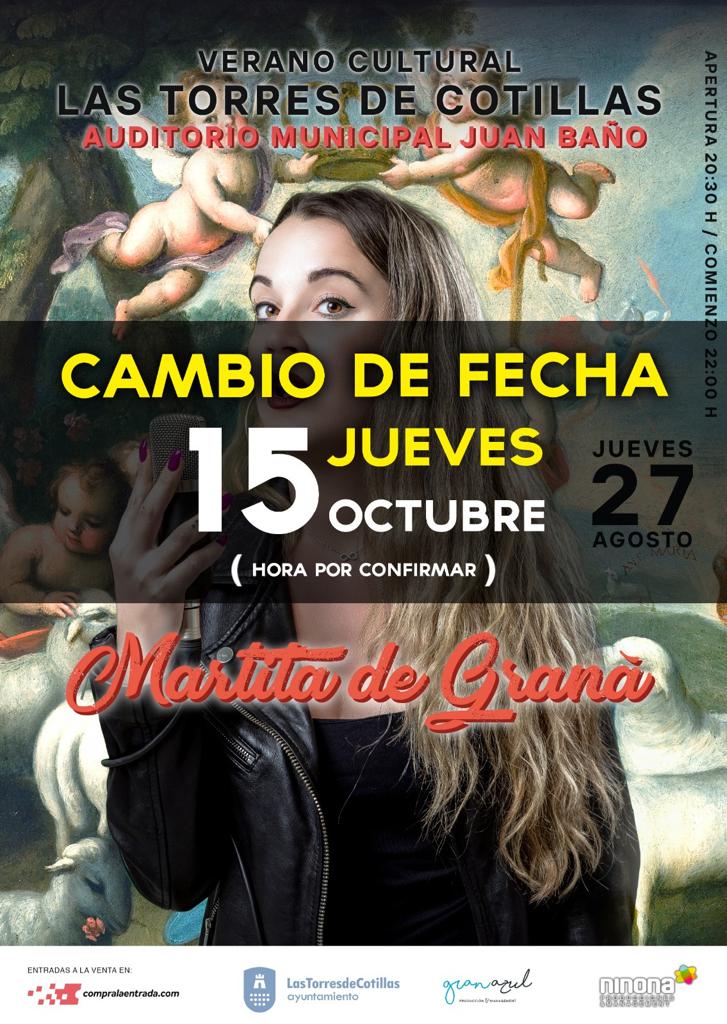 🔸 MARTITA DE GRANÁ - Previsto para hoy 27 de agosto, a partir de las 20’30 horas. La nueva fecha será el 15 DE OCTUBRE de 2020 (hora por confirmar).
