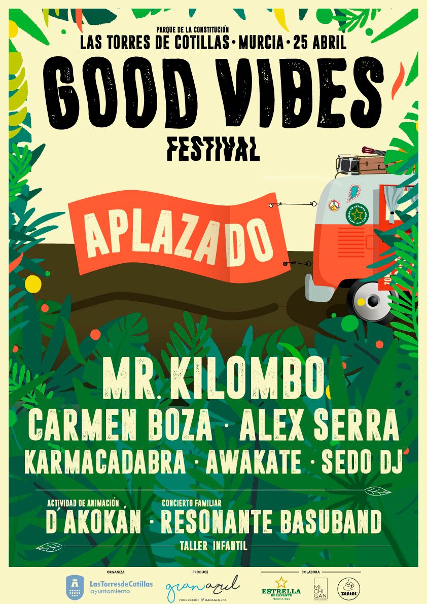 El festival musical Good Vibes, que estaba previsto para el próximo 25 de abril en el parque de la Constitución, se ha visto obligado a aplazar su celebración por la situación actual de crisis sanitaria. En cuanto se tenga fijada su nueva fecha será debidamente informada.