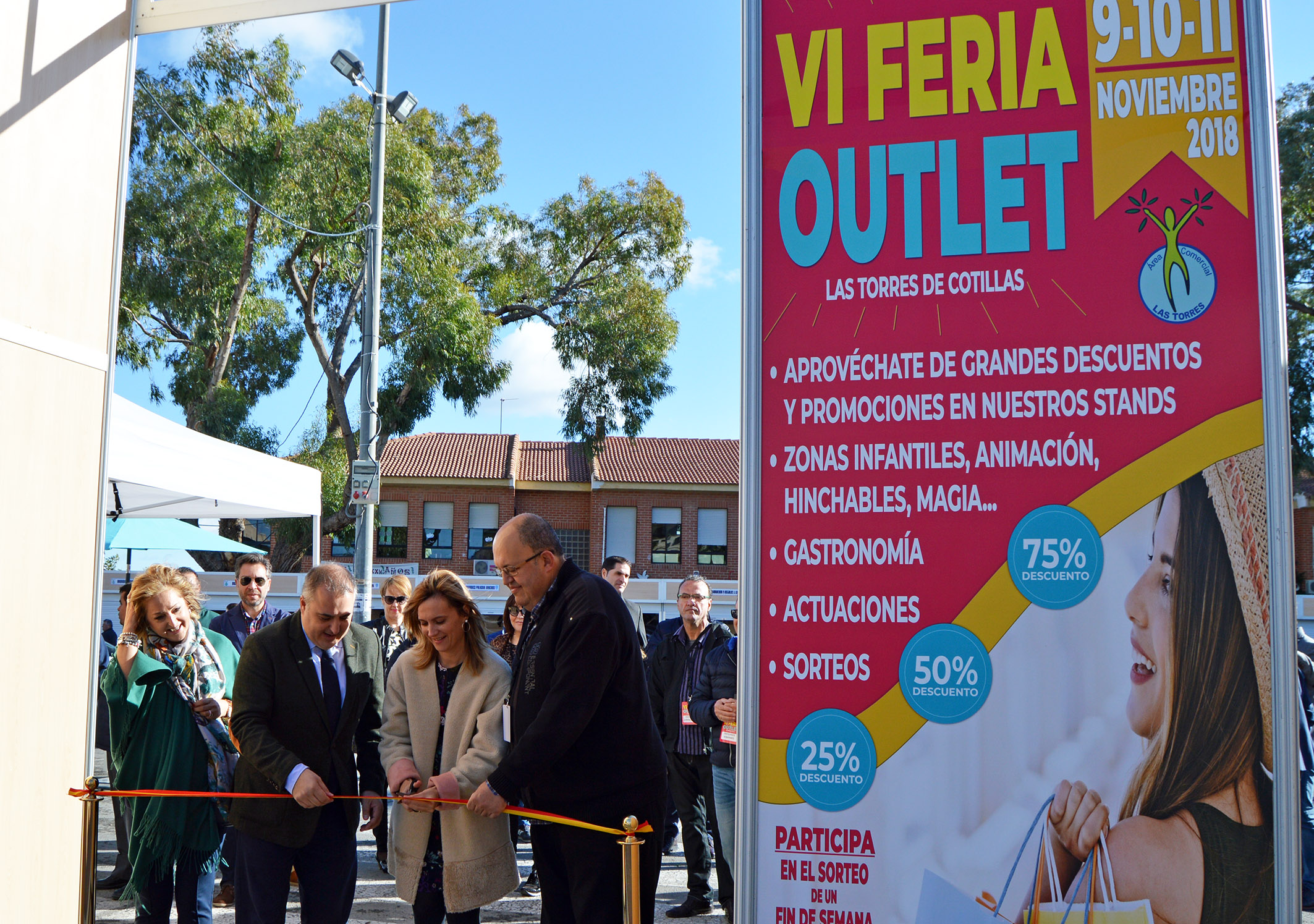 La alcaldesa de Las Torres de Cotillas, Isabel María Zapata, y el director general de Comercio, Francisco Abril, han inaugurado en la mañana de hoy viernes 9 de noviembre la sexta edición de la ‘Feria Outlet’ del municipio. Este evento, que se celebra hasta el próximo domingo en la explanada Maestro Don Ángel Palazón, está organizado por el ‘Área Comercial Las Torres’ (ACLT) en colaboración con la Concejalía de Comercio.