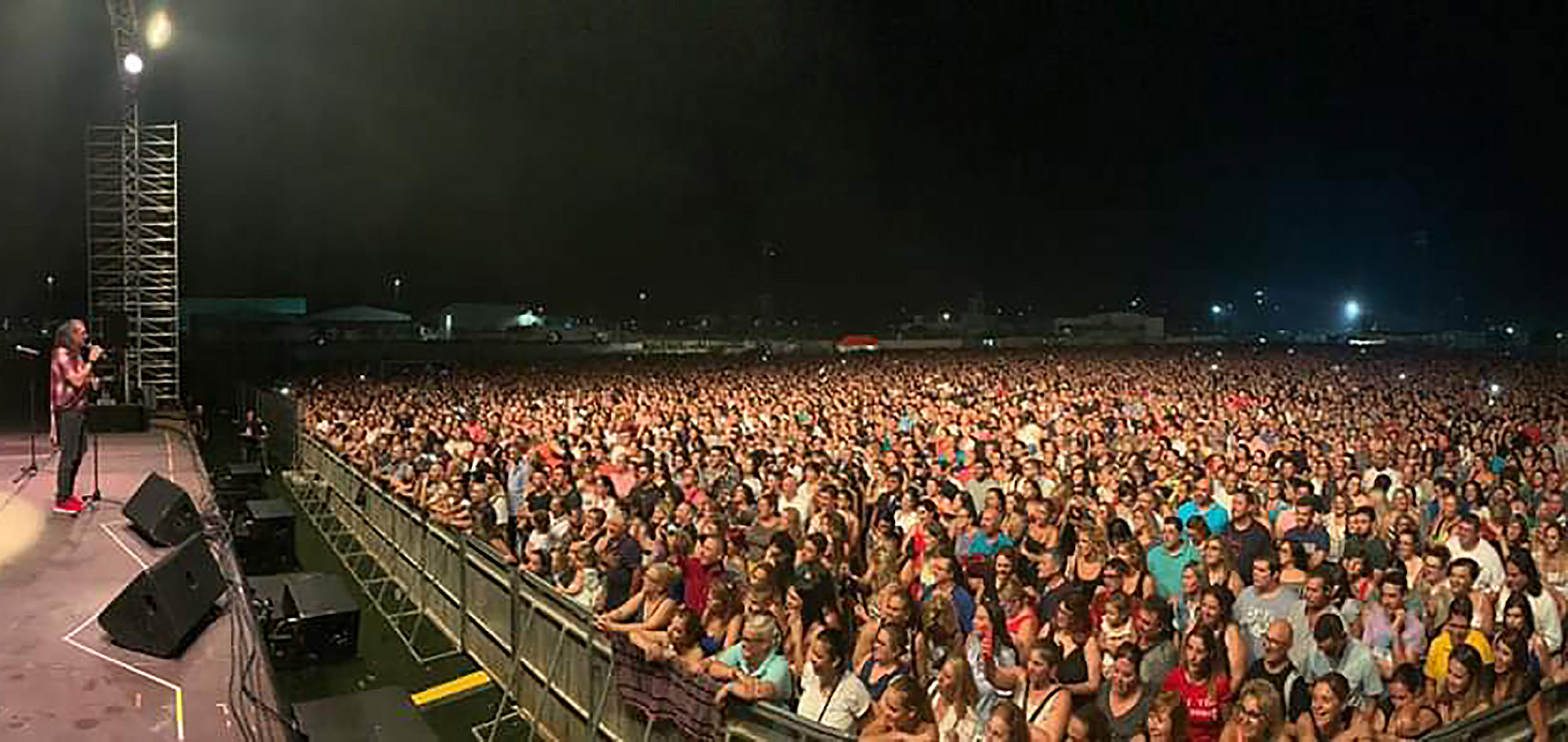 01/09/19 - El plato fuerte de las fiestas de Las Torres de Cotillas no defraudó. Camela, el grupo formado por Dioni y Ángeles que cuenta con 25 años a sus espaldas, reunió ayer sábado 31 de agosto a cerca de 18.000 personas en el campo municipal Onofre Fernández Verdú. Una actuación que contó con entrada gratuita y ante la que los fieles de este grupo creador de la tecnorumba no dudaron en responder de manera multitudinaria.