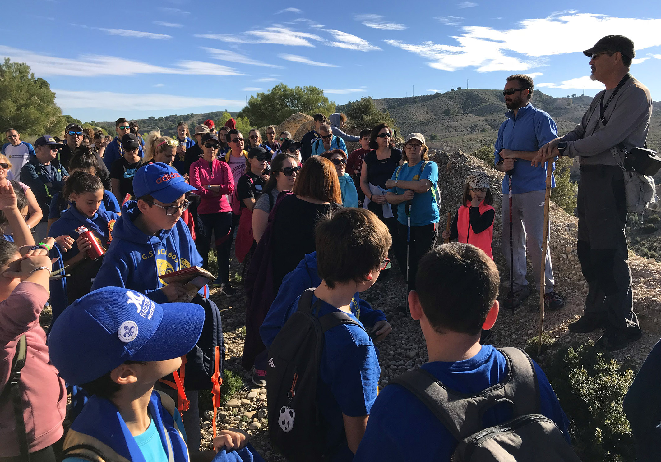 El gran grupo ha realizado la ruta por el sendero circular de las Lomas de las Meleras, con una distancia de poco más de 2 kilómetros que ha contado con sus correspondientes paradas para descansar y que Lázaro Giménez, técnico creador del diseño del sendero y que ha ejercido de guía, explicase diferentes aspectos del entorno. “Ha sido una actividad para toda la familia, divertida y saludable, que no requería de gran forma física y que ha servido para que muchos vecinos del municipio conocieran esta ruta”, señala el concejal de Actividad Física y Deportes, Ginés Pérez, que ha participado en esta jornada.
