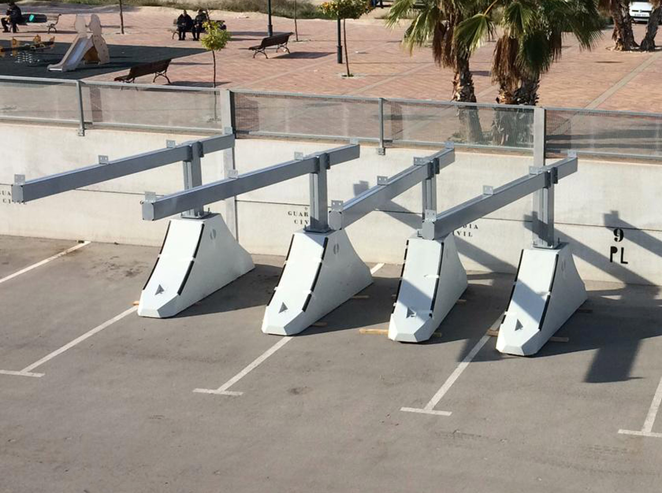 Comienza la instalación de la marquesina del parking del Centro Local de Seguridad