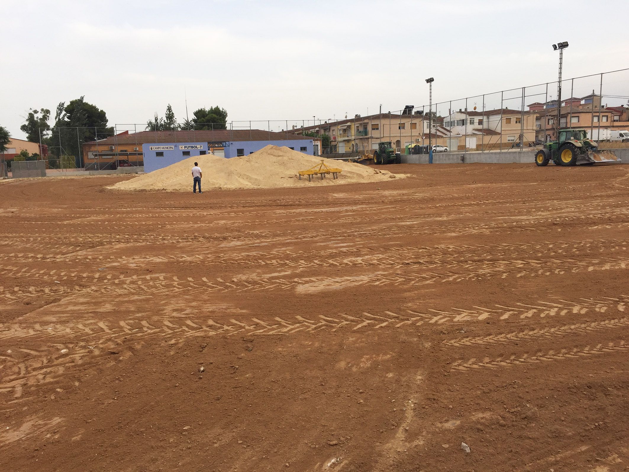 El Ayuntamiento de Las Torres de Cotillas continúa con su programa de mejora de las instalaciones deportivas municipales. Ahora le ha tocado el turno al campo de fútbol 7 situado junto a la Casa de la Cultura ‘Pedro Serna’, que desde hace años ofrecía servicio con superficie de tierra y en el que ya han comenzado los trabajos para instalar césped artificial. “De esta forma descongestionaremos el campo municipal ‘Onofre Fernández Verdú’, que cuenta con cerca de 1.500 usuarios entre los clubes de fútbol, los participantes en la liga de adultos aficionados y los alquileres fijos”, señala el concejal de Actividad Física y Deportes, Ginés Pérez.