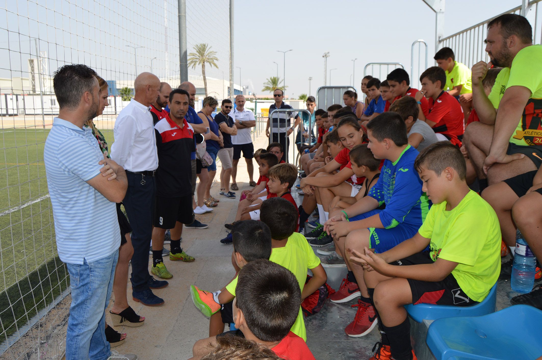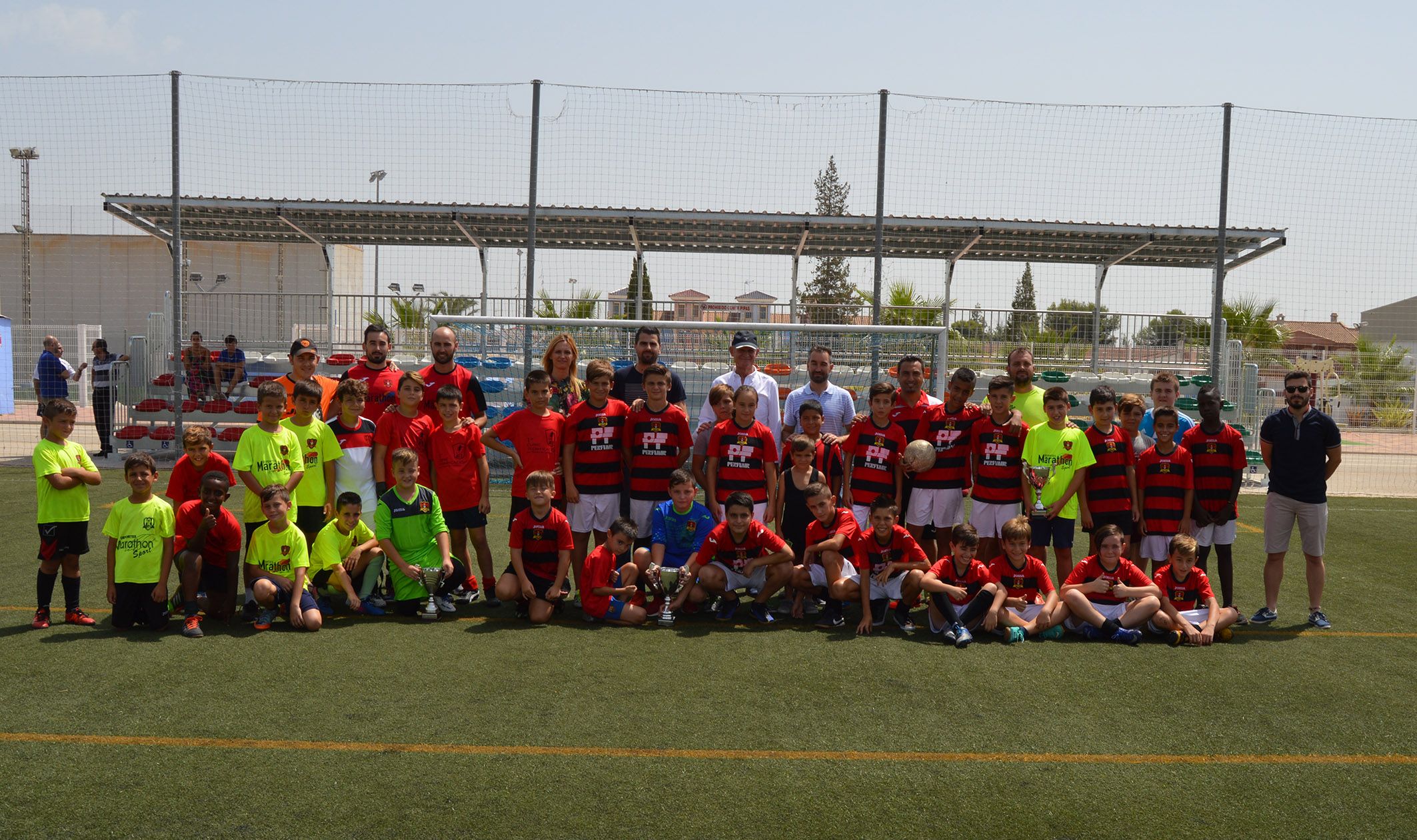 Una gran campaña cuya guinda han sido tres títulos ligueros y sus correspondientes ascensos de categoría. Así ha sido la temporada 2016/17 del Atlético Torreño, club de Las Torres de Cotillas que cuenta con seis años de historia. “Han ascendido dos de sus equipos alevines, uno a Primera y otro a Segunda, además del prebenjamín que también ha subido a Segunda”, indica el concejal de Actividad Física y Deportes, Ginés Pérez, que visitó junto al alcalde torreño, Domingo Coronado, a los jugadores del club en el campo municipal ‘Onofre Fernández Verdú’. “Además, la mayoría del resto de equipos del club han quedado en la parte alta de la tabla en sus respectivas categorías, por lo que hay que felicitar tanto a los jugadores como a los entrenadores y directivos del club por esta magnífica campaña”, destaca el edil.