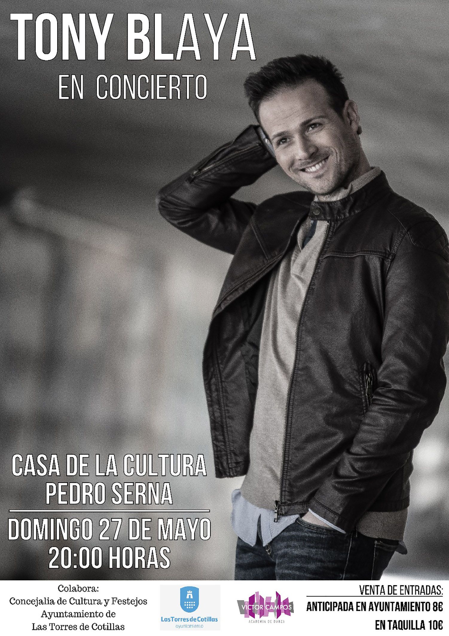 Organizado por la academia de danza ‘Víctor Campos’, este concierto forma parte de la programación de la Concejalía de Cultura local. “Tony, que ha participado en diversos musicales de entidad ejerciendo labores de productor, director escénico e intérprete, es un artista muy querido en nuestro pueblo”, señala la alcaldesa Isabel María Zapata, que recuerda que Blaya es licenciado en Interpretación en el Musical por la ESAD (Escuela superior de Arte Dramático) de Murcia.