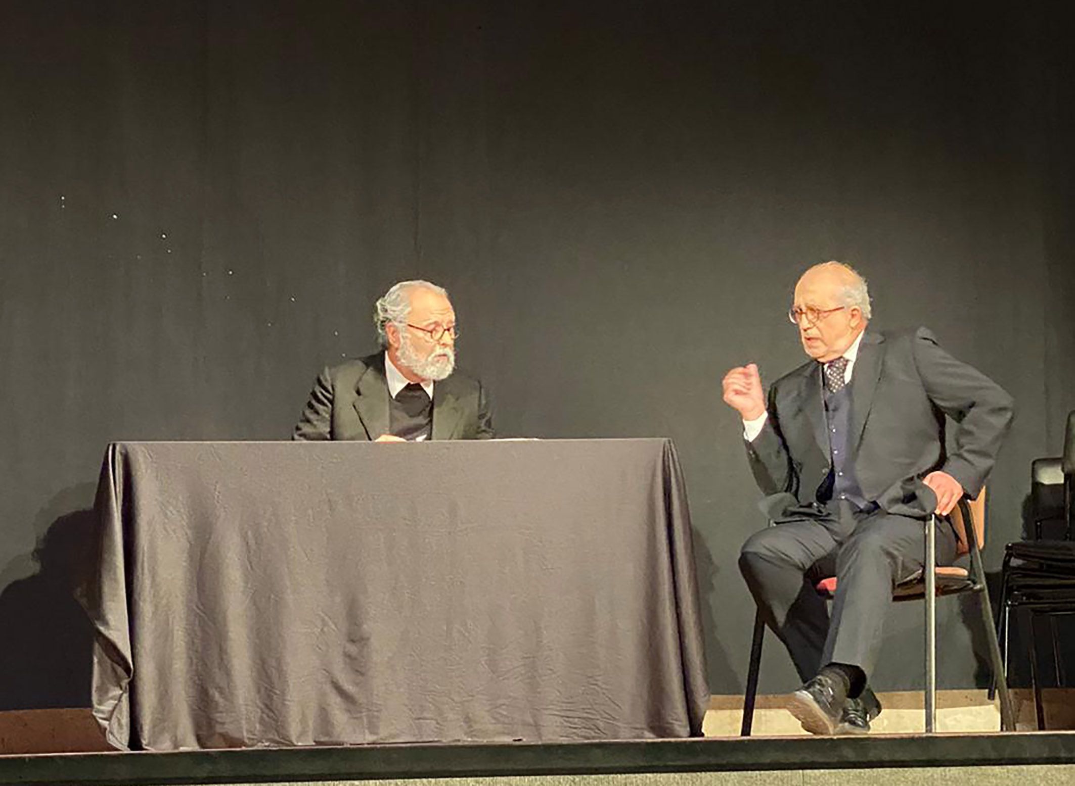 El grupo malagueño “Teatro Callejón del Gato” cerró el concurso del certamen de teatro amateur “Juan Baño” de Las Torres de Cotillas el pasado sábado 23 de octubre. Lo hizo en la Casa de la Cultura “Pedro Serna” con la obra “Entre los hunos y los hotros”, una historia en la que los espíritus de Manuel Azaña y Miguel de Unamuno se reencuentran tras muchos años en un viejo teatro y rememoran hechos del pasado de los que fueron protagonistas.