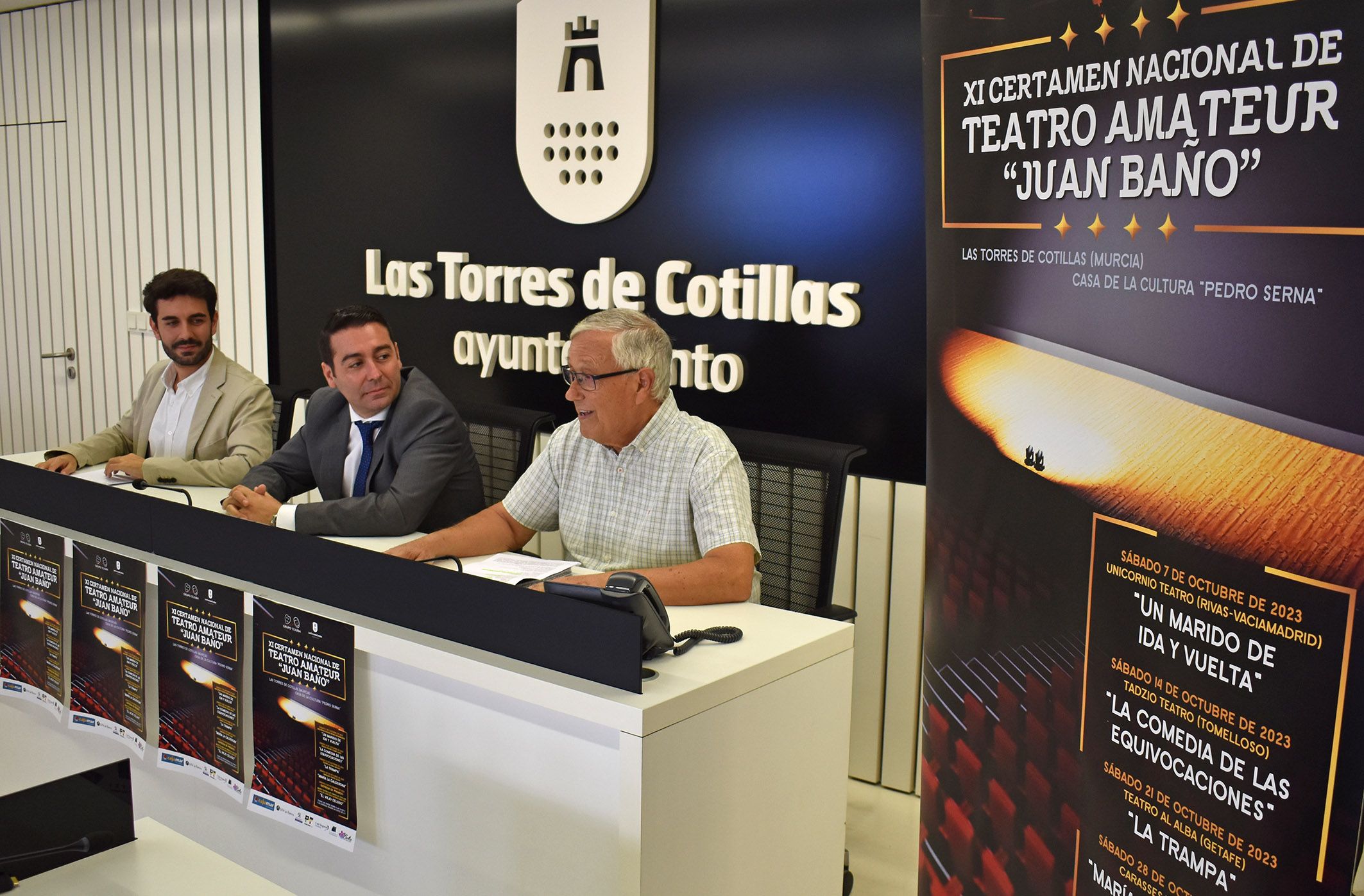 El certamen nacional de teatro amateur Juan Baño de Las Torres de Cotillas celebrará su 11ª edición el próximo mes de octubre, organizada por la asociación cultural teatral Tejuba y el Ayuntamiento local en la Casa de la Cultura Pedro Serna. Un certamen cuyas bases contemplan los siguientes premios: 1.000 euros y trofeo para el mejor espectáculo; y 300 euros y trofeo para los mejores actor, actriz y dirección.