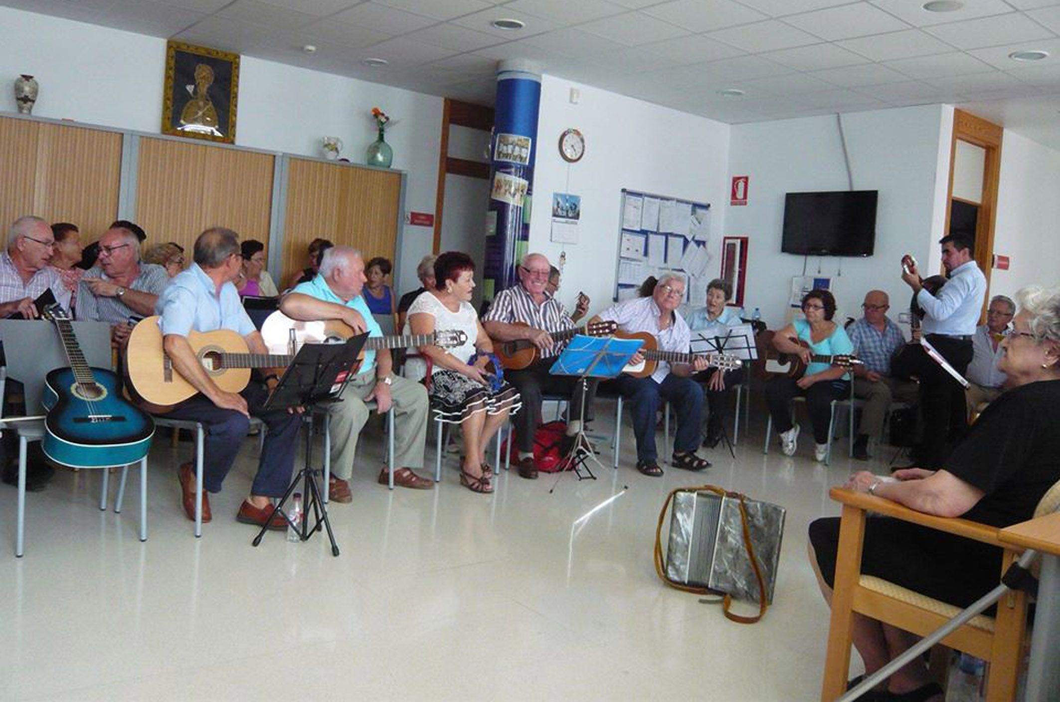 Este grupo musical, dirigido por el concejal de Cultura Pedro Cabrera, interpretaron distintas canciones para agrado de los usuarios de este centro de día, como ‘Vino Griego’, el ‘Vals de las mariposas’, ‘Resistiré’, ‘Naciste para mí’ o ‘No me hables’. “La música es algo que las personas de todas las edades pueden disfrutar y supone una actividad terapéutica muy beneficiosa”, explica Cabrera, que destaca que “mejora el estado de ánimo de las personas y ayuda a despertar viejos recuerdos asociados a momentos concretos de nuestro pasado”.