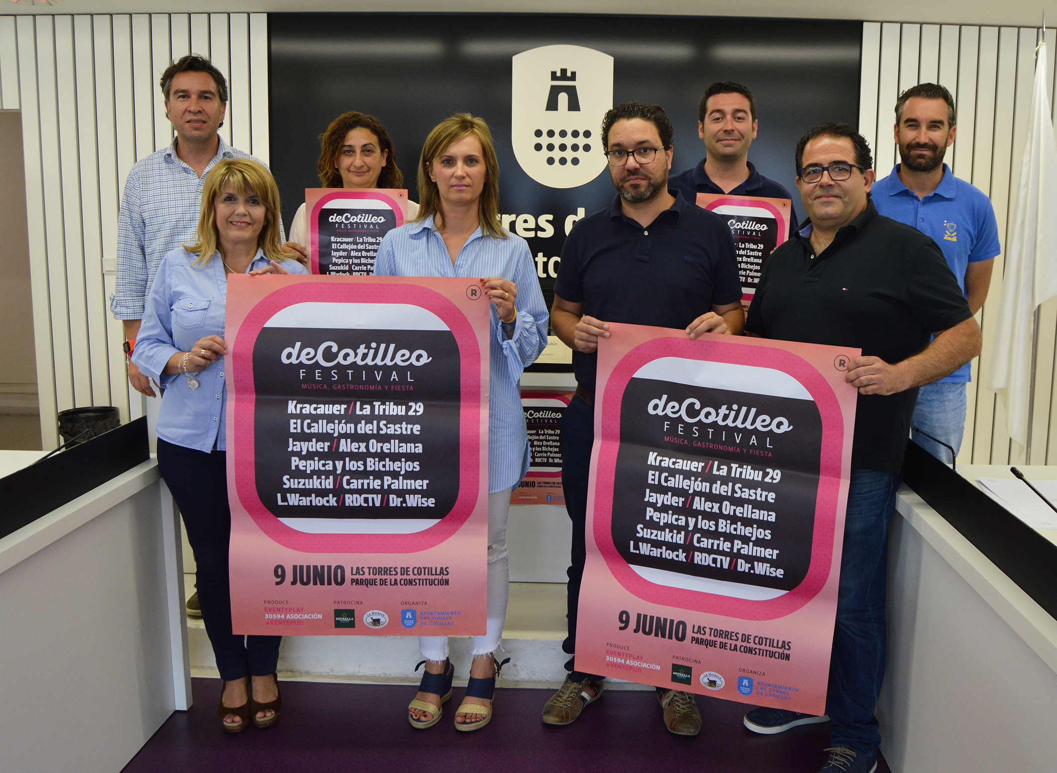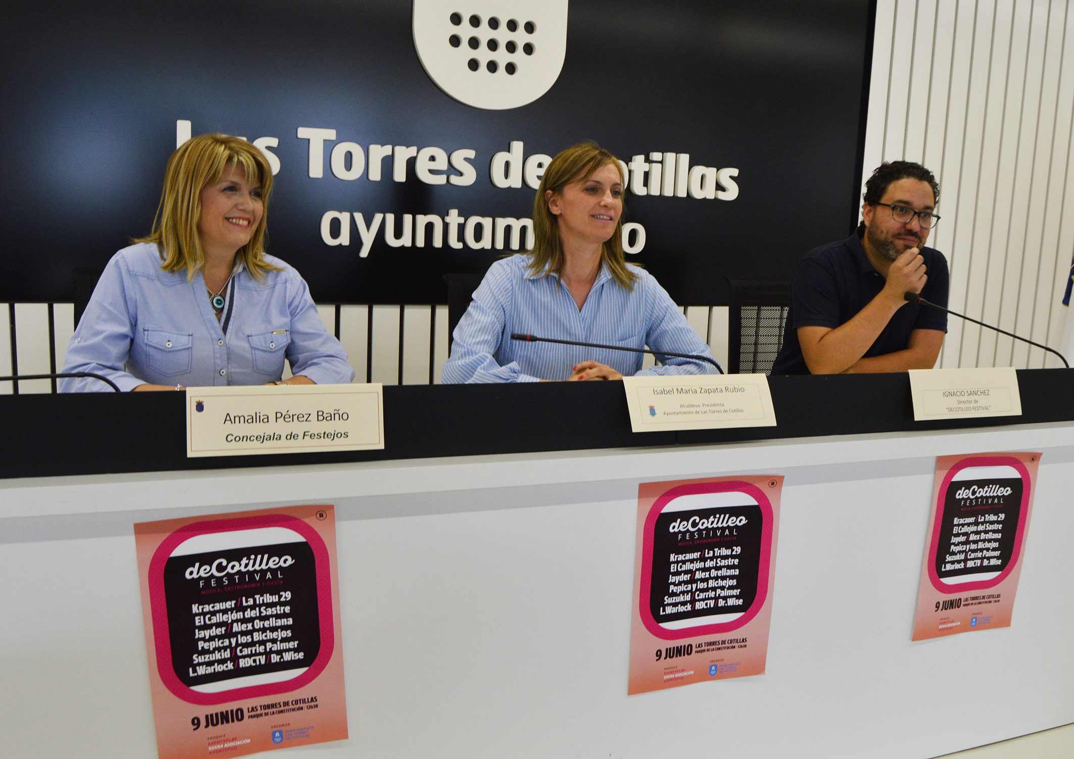El ‘DeCotilleo Festival’, que celebrará su primera edición el 9 de junio en el Parque de la Constitución de Las Torres de Cotillas, fue presentado en la tarde de ayer lunes 4 de junio en el Ayuntamiento local. El acto estuvo presidido por la alcaldesa Isabel María Zapata, la concejala de Participación Ciudadana Amalia Pérez y el director del evento Ignacio Sánchez. “Será un festival diurno con entrada gratuita y que propone más de 12 horas ininterrumpidas repletas de música, fiesta y gastronomía, pensada para toda la familia con actividades para todos y que apuesta por el talento murciano”, señalaba la alcaldesa.