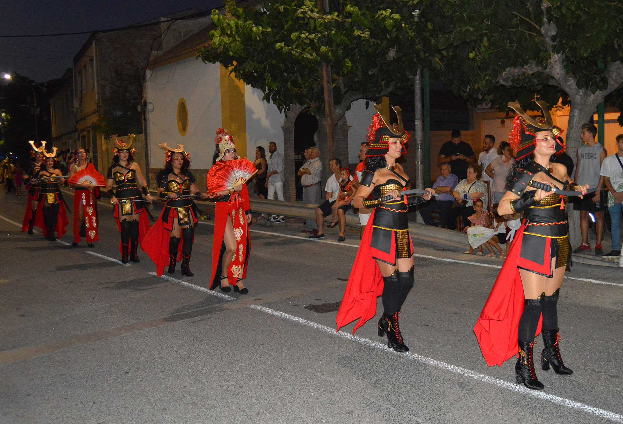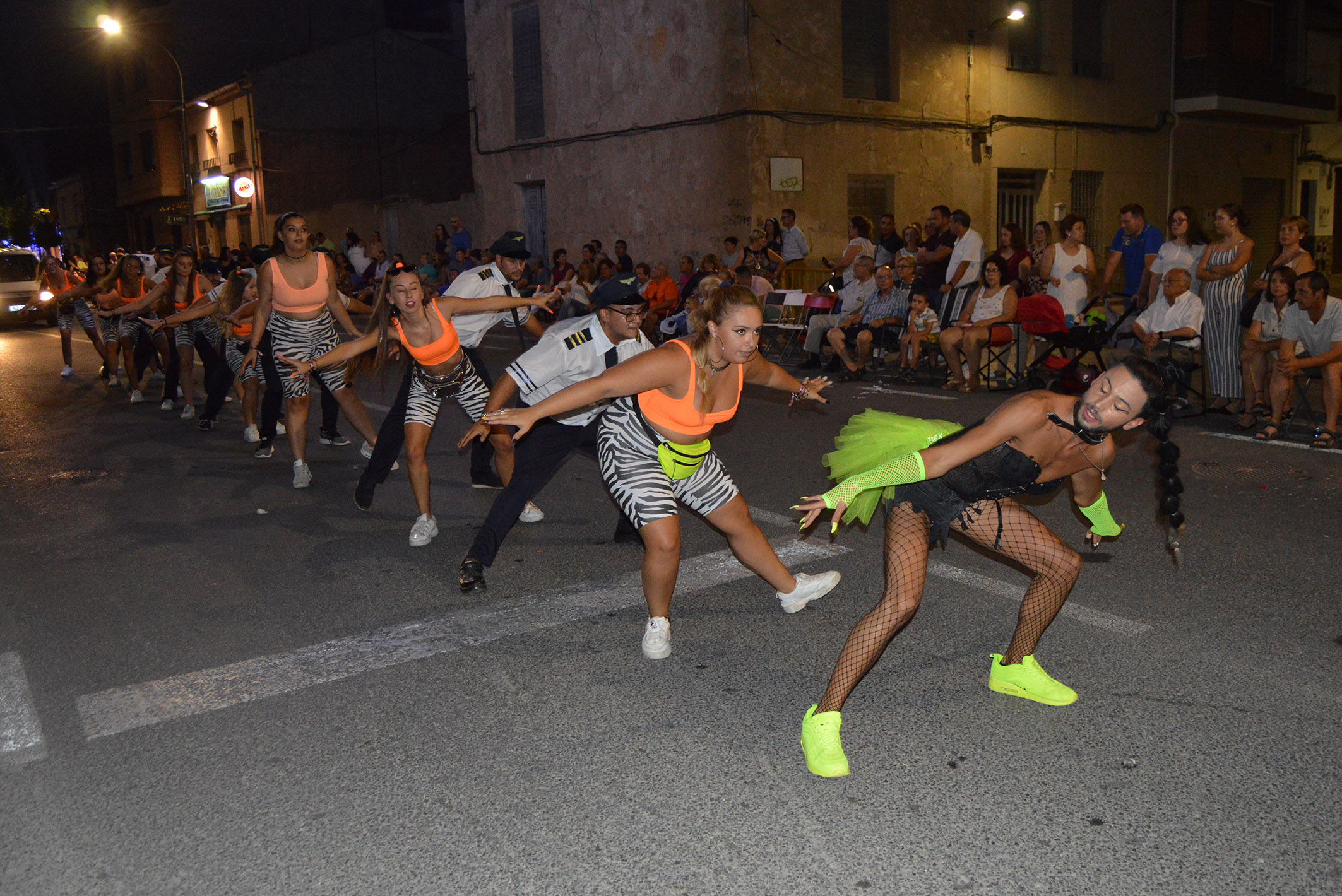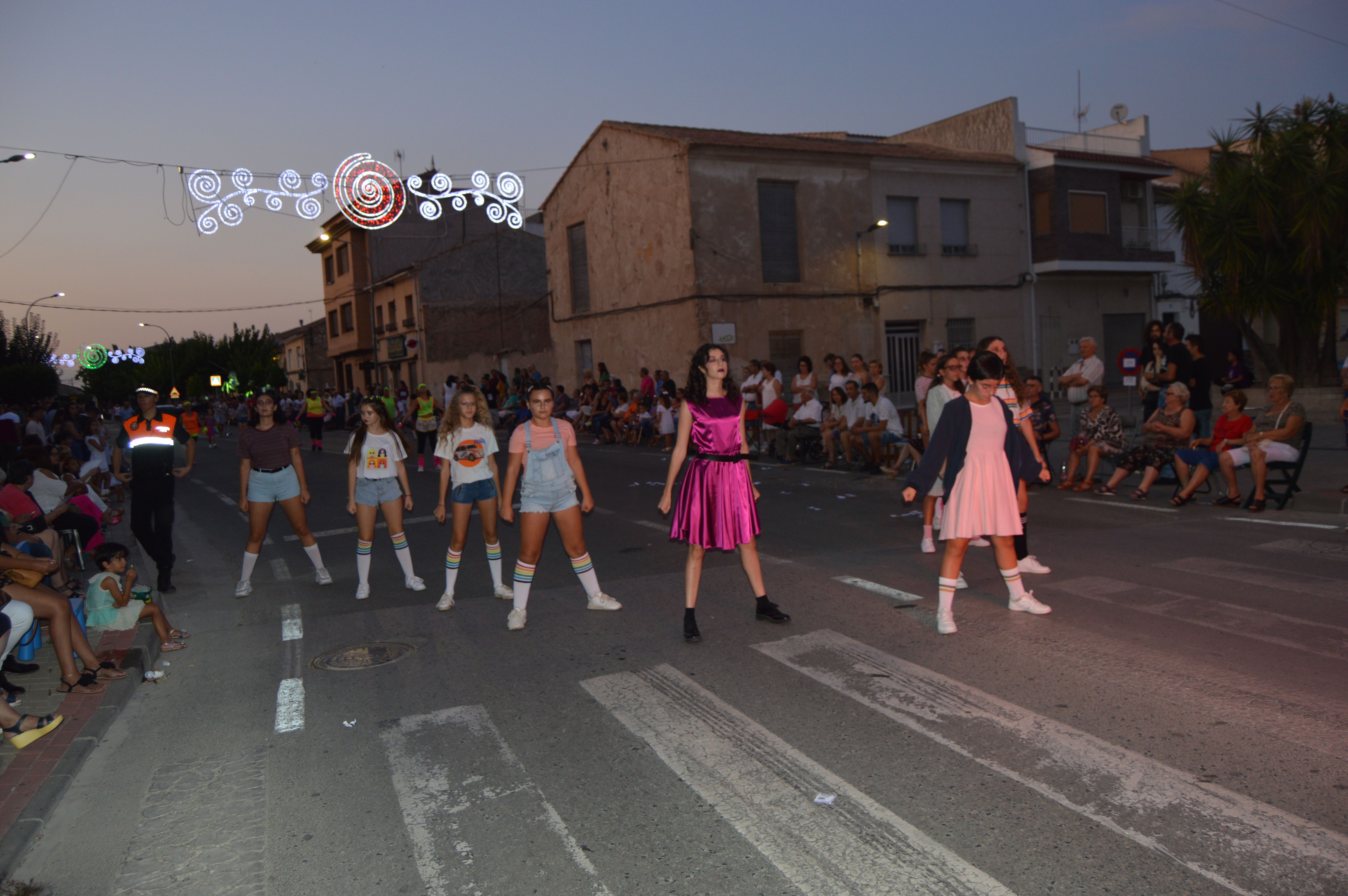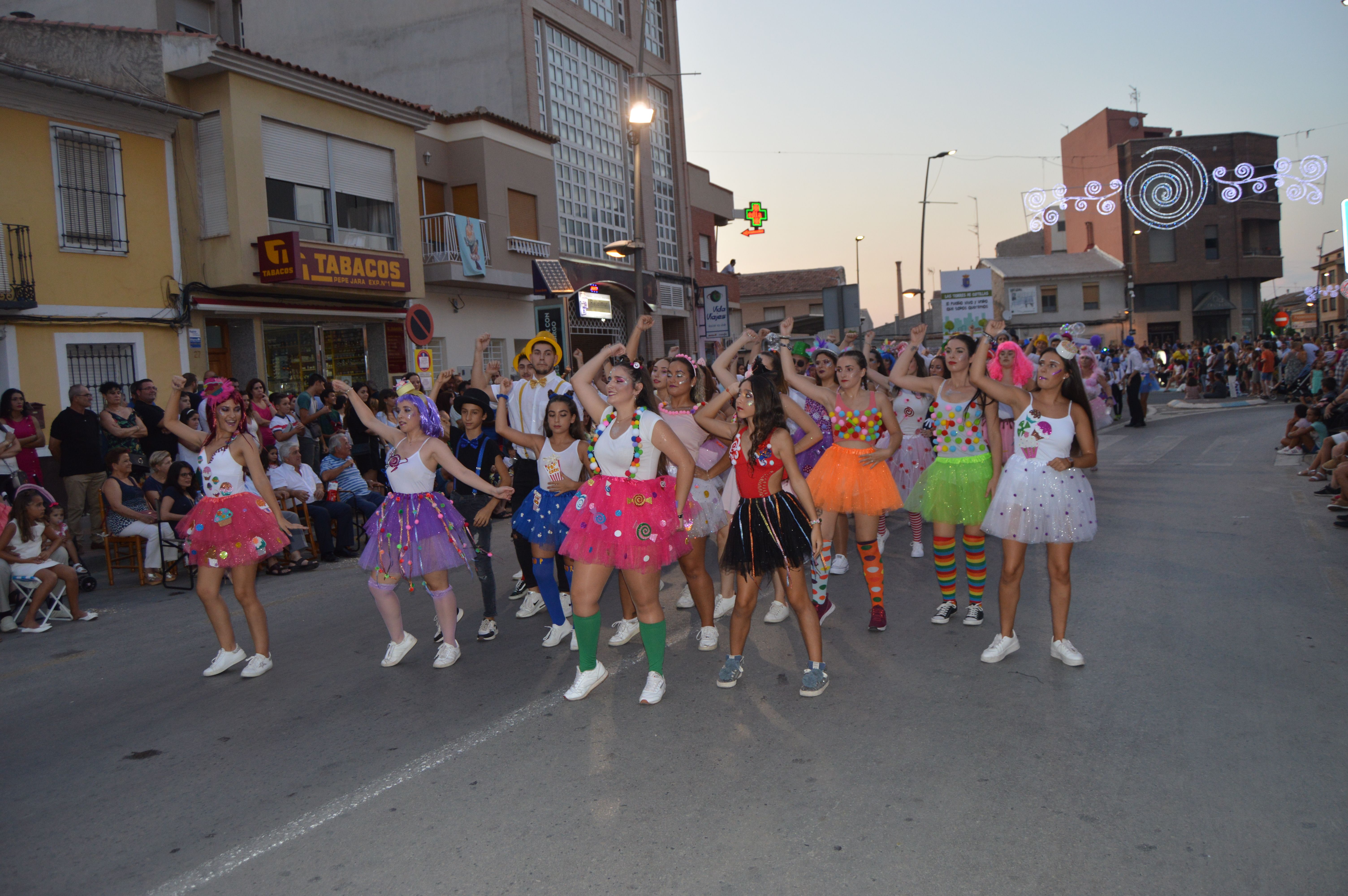 01/09/19 - En el último sábado de las fiestas no faltó como es tradición el desfile de comparsas y carrozas, que partió de la Ermita de la Cruz y llenó un año más las calles de la localidad de talento, imaginación, música, ilusión y mucho arte. Cientos de espectadores se agolparon al paso del desfile que concluyó en la Avenida Juan Carlos I para disfrutar de las llamativas coreografías que los integrantes de todas las edades de las 19 comparsas han ofrecido y para recibir los regalos de las 11 carrozas.