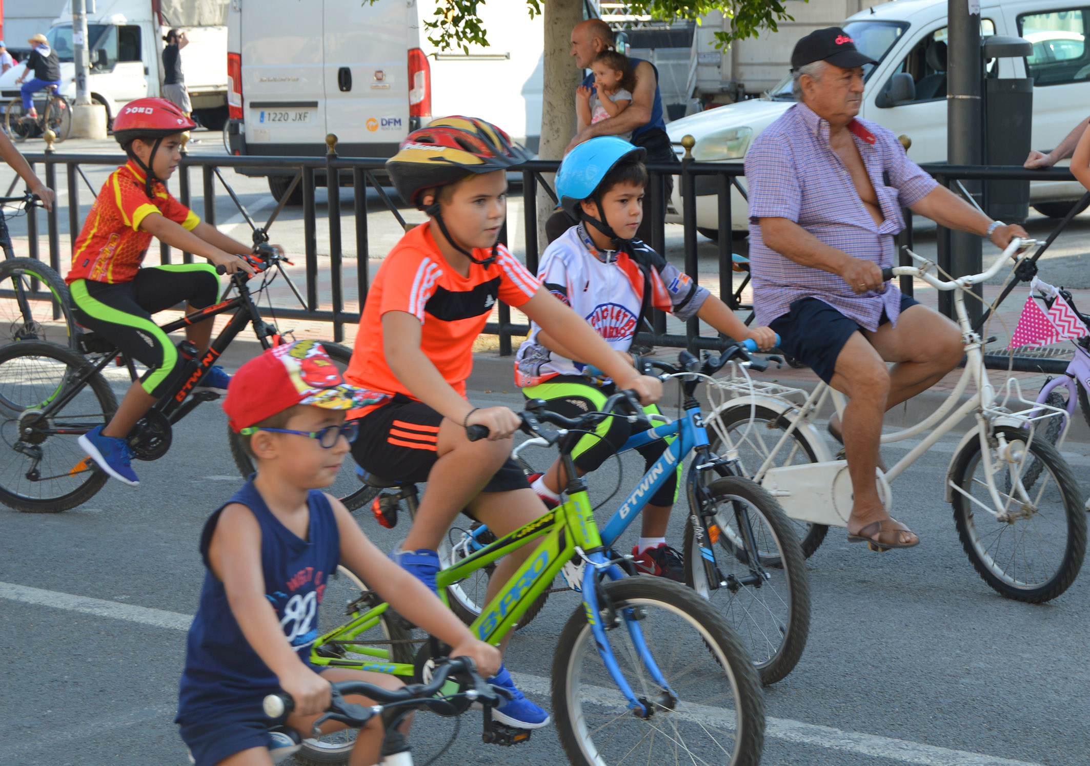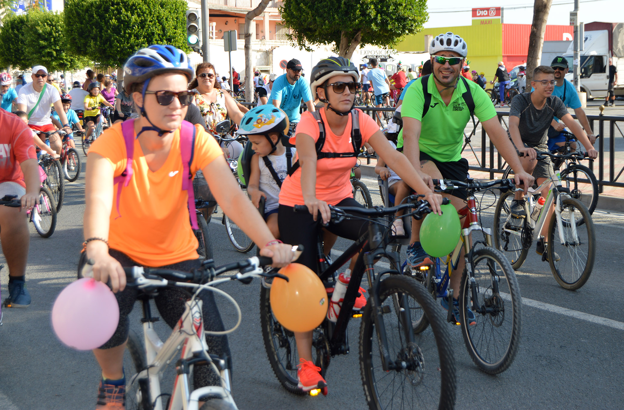 31/08/19 - La fiesta de las dos ruedas no ha faltado a los festejos de este año. Pequeños y mayores participaron en el Día de la Bicicleta Antonio Sarabia para cubrir un recorrido urbano de unos 7 kilómetros entre la explanada Maestro Don Ángel Palazón y la plaza Tirso de Molina. Con la presencia de la concejala de Salud y Deporte, Alberta Martínez Vázquez, en el lugar de llegada se sortearon regalos entre los participantes por gentileza de los patrocinadores Ciclos Sarabia y Automóviles Emilio.