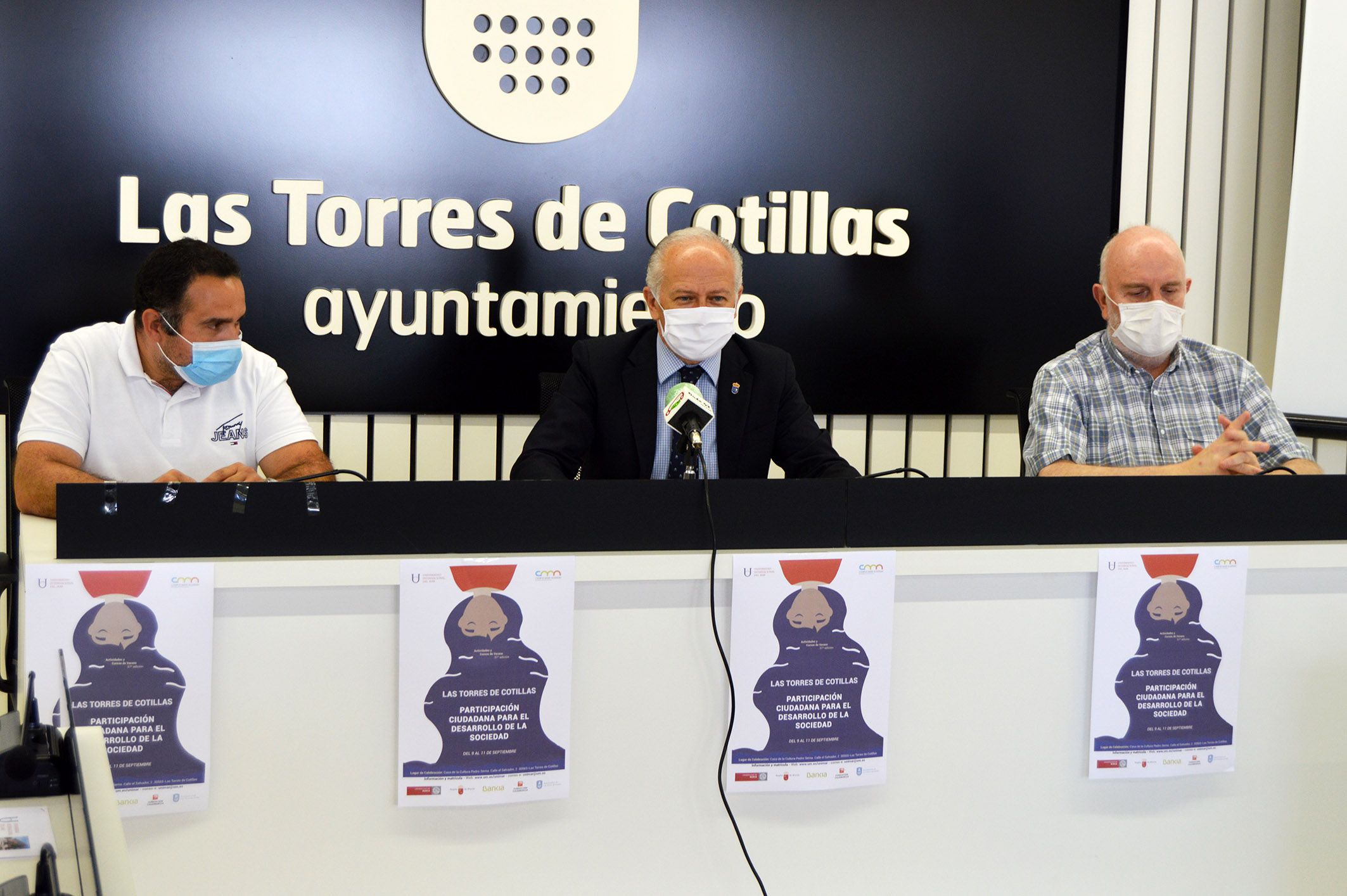 El alcalde de Las Torres de Cotillas, Joaquín Vela Fernández, y el concejal de Educación, Rafael Martínez García, han presentado el curso “Participación ciudadana para el desarrollo de la sociedad”, que la Universidad del Mar celebrará en el municipio del 9 al 11 de septiembre. Con un total de 25 horas y la Casa de la Cultura Pedro Serna como escenario, en esta iniciativa colaboran las Concejalías de Educación y la de Participación Ciudadana y su inauguración correrá a cargo de la consejera de Transparencia, Participación y Administración Pública, Beatriz Ballesteros.