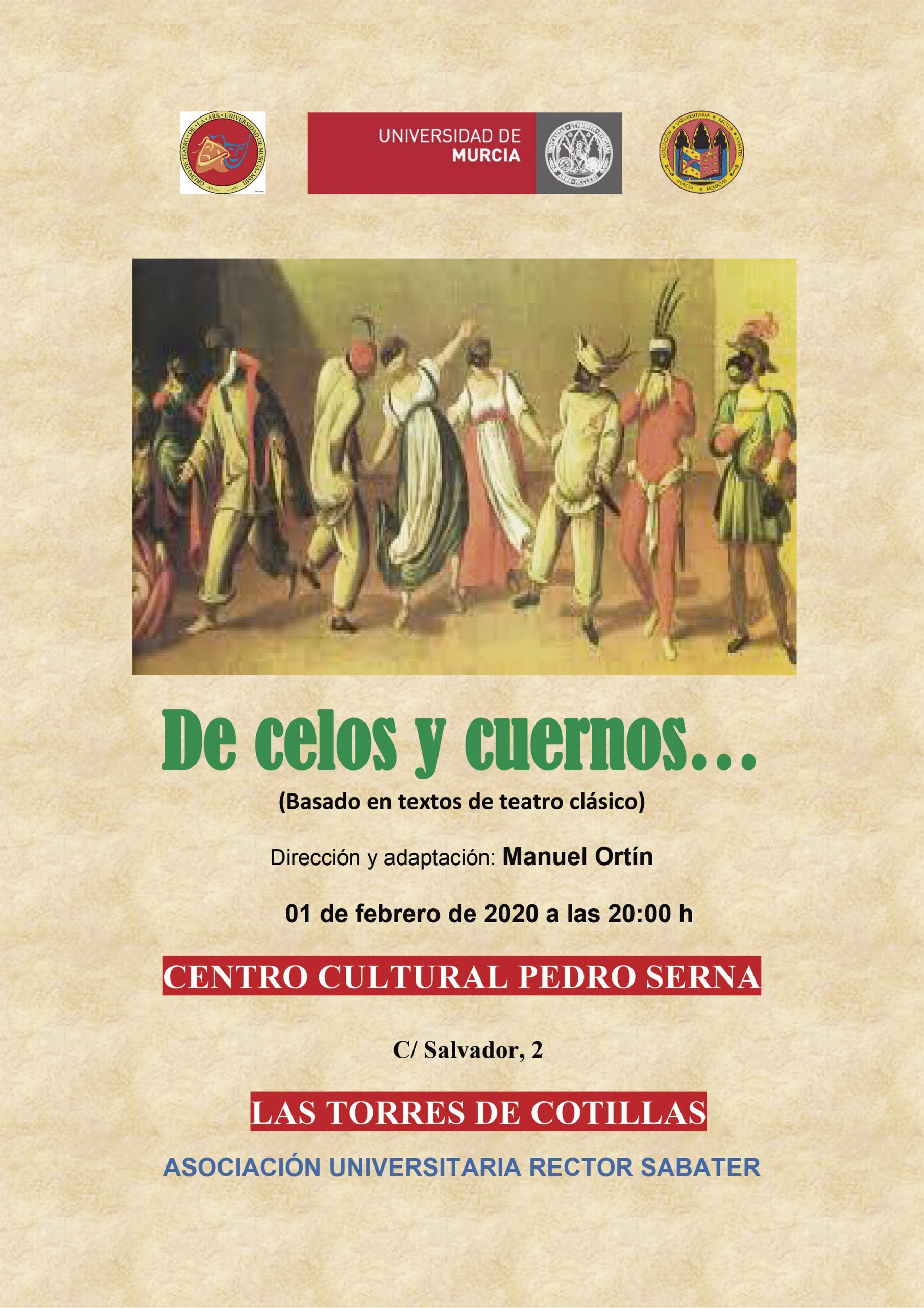 Llega febrero y la Concejalía de Cultura de Las Torres de Cotillas sigue desgranando su programa de actividades para el primer trimestre de 2020. Su firme apuesta por el teatro de calidad continuará mañana sábado 1 (20’30 horas) con la propuesta “De celos y cuernos…”, que será puesta en escena por el grupo de teatro de la Asociación Universitaria Rector Sabater.
