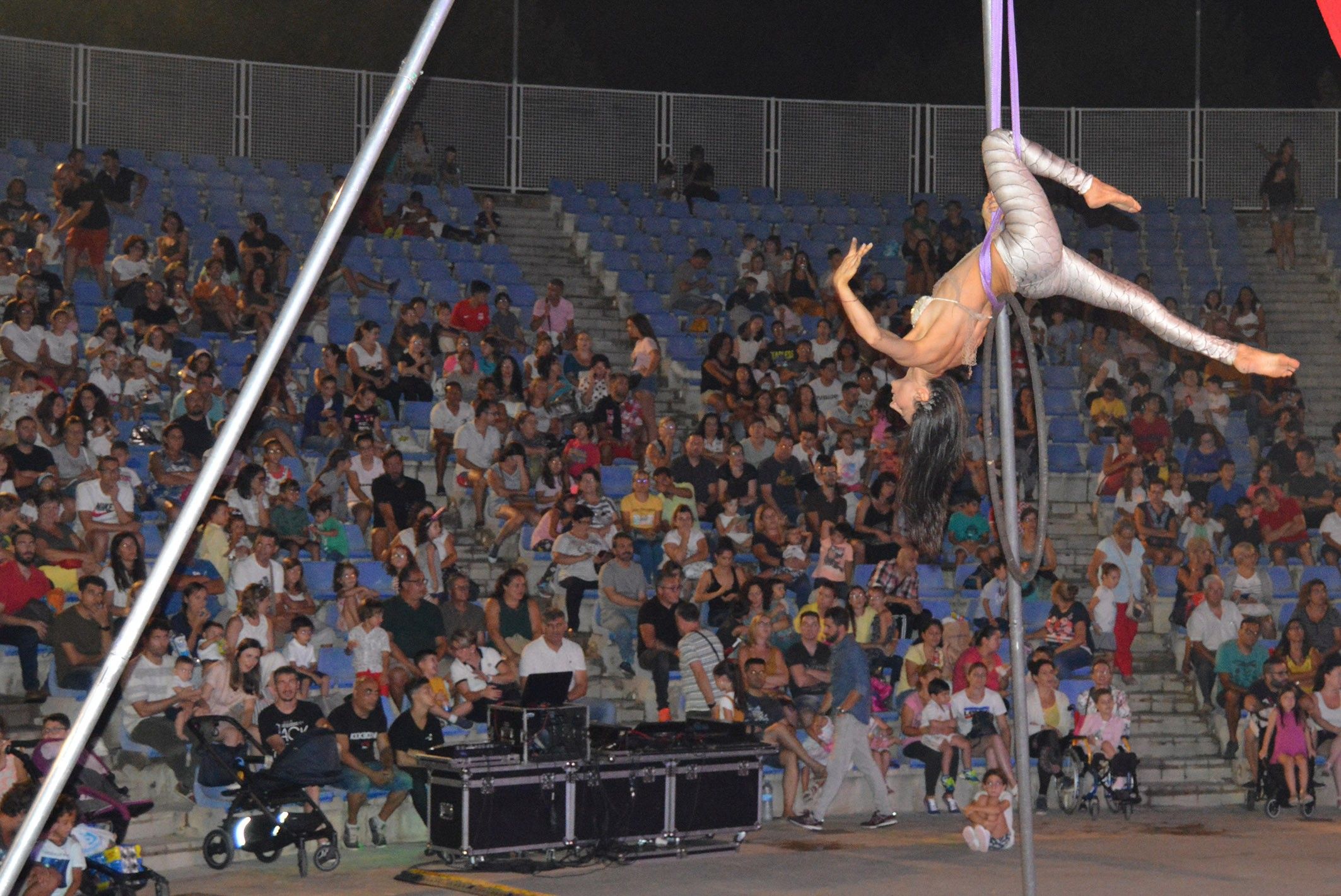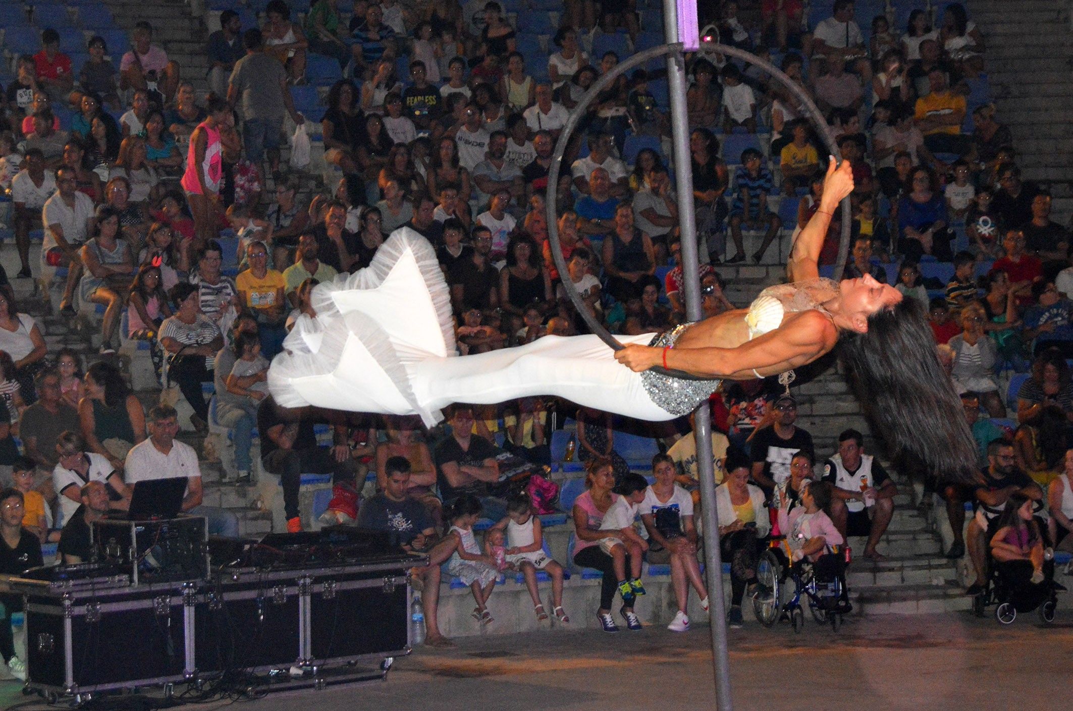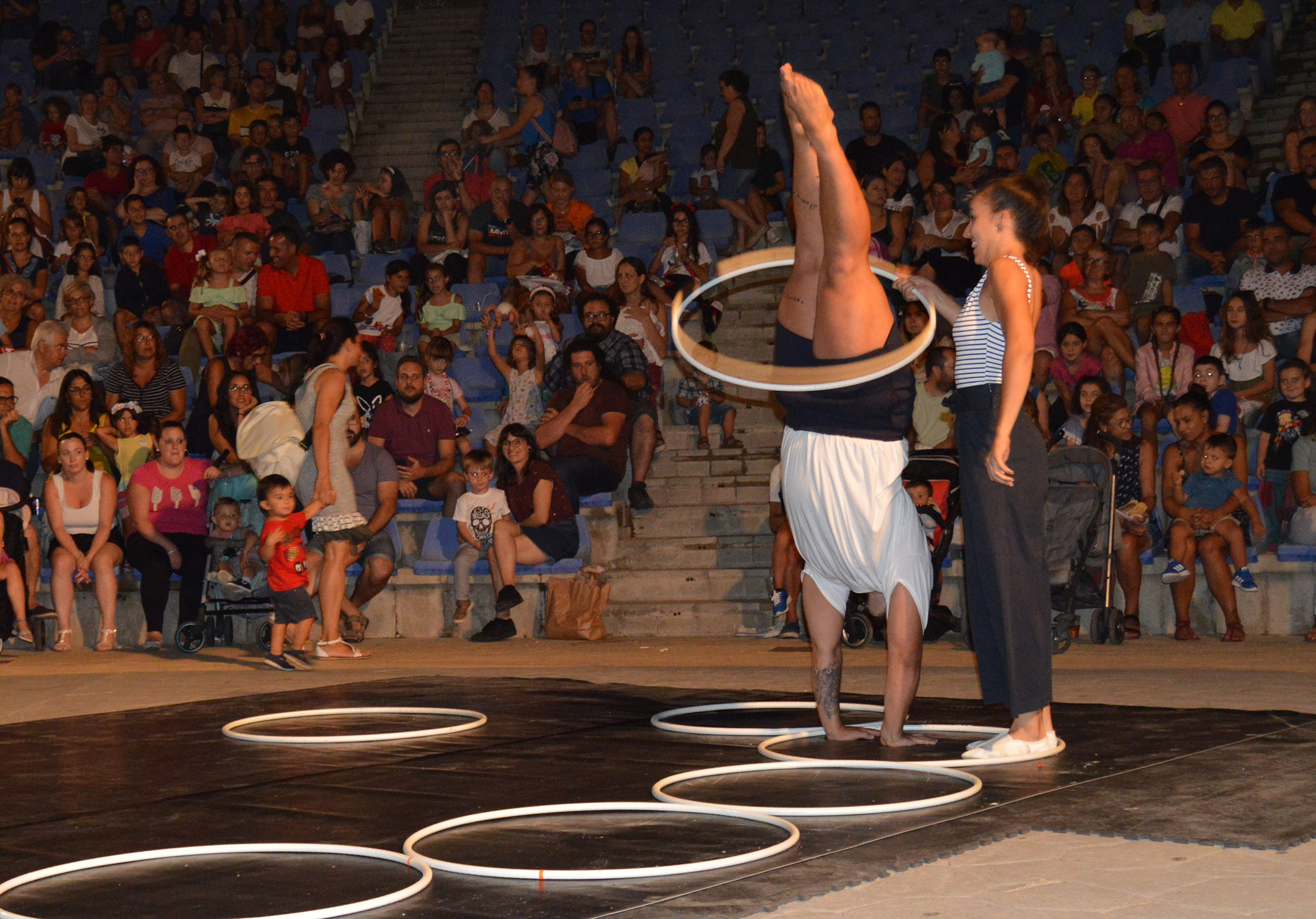 28/08/19 - El plato fuerte de la jornada de ayer fue el festival Las Torres en Familia, una cita con la música y las artes que tuvo lugar en el auditorio municipal Juan Baño. Comenzó con un taller de circo para los más pequeños y siguió con una exhibición de acrobacias circenses y danza aérea, humor, clown y la música en directo de la Billy Boom Band.