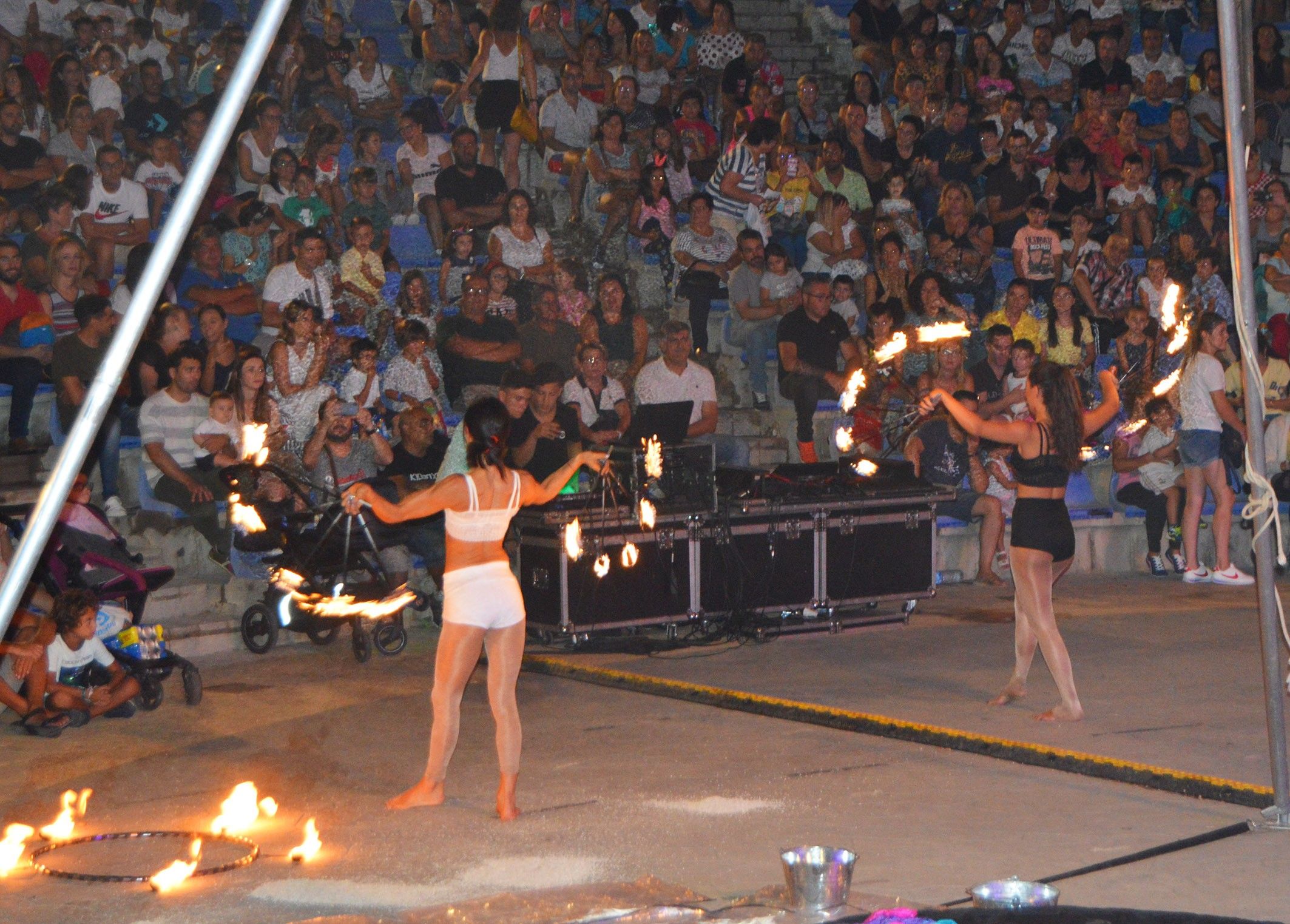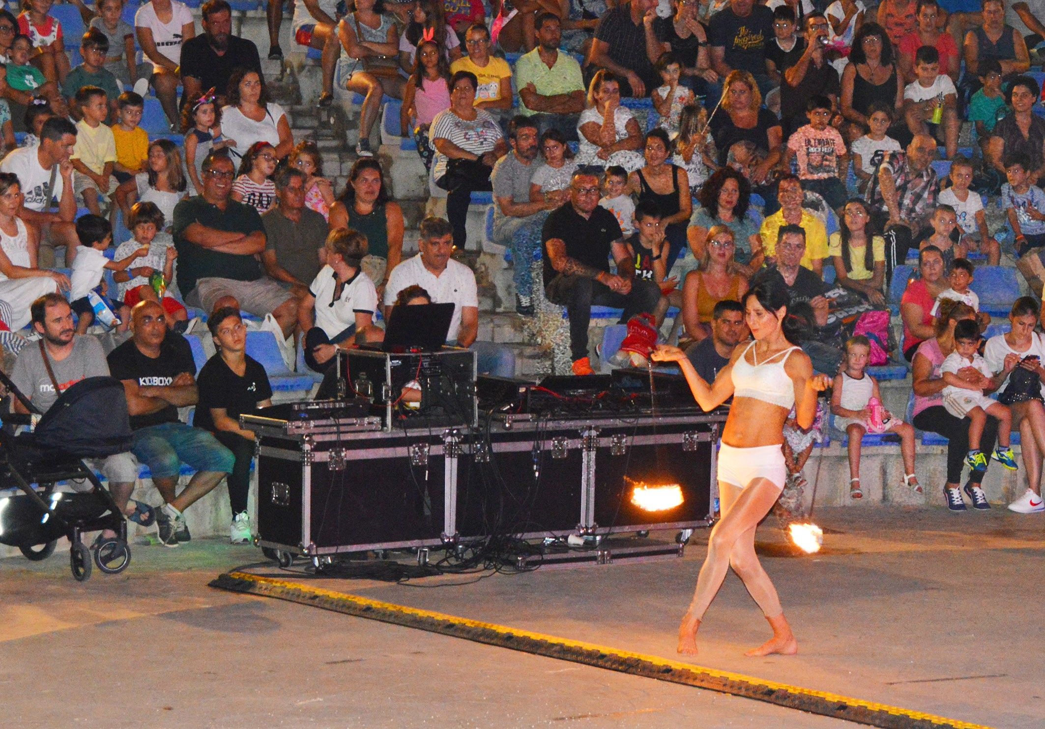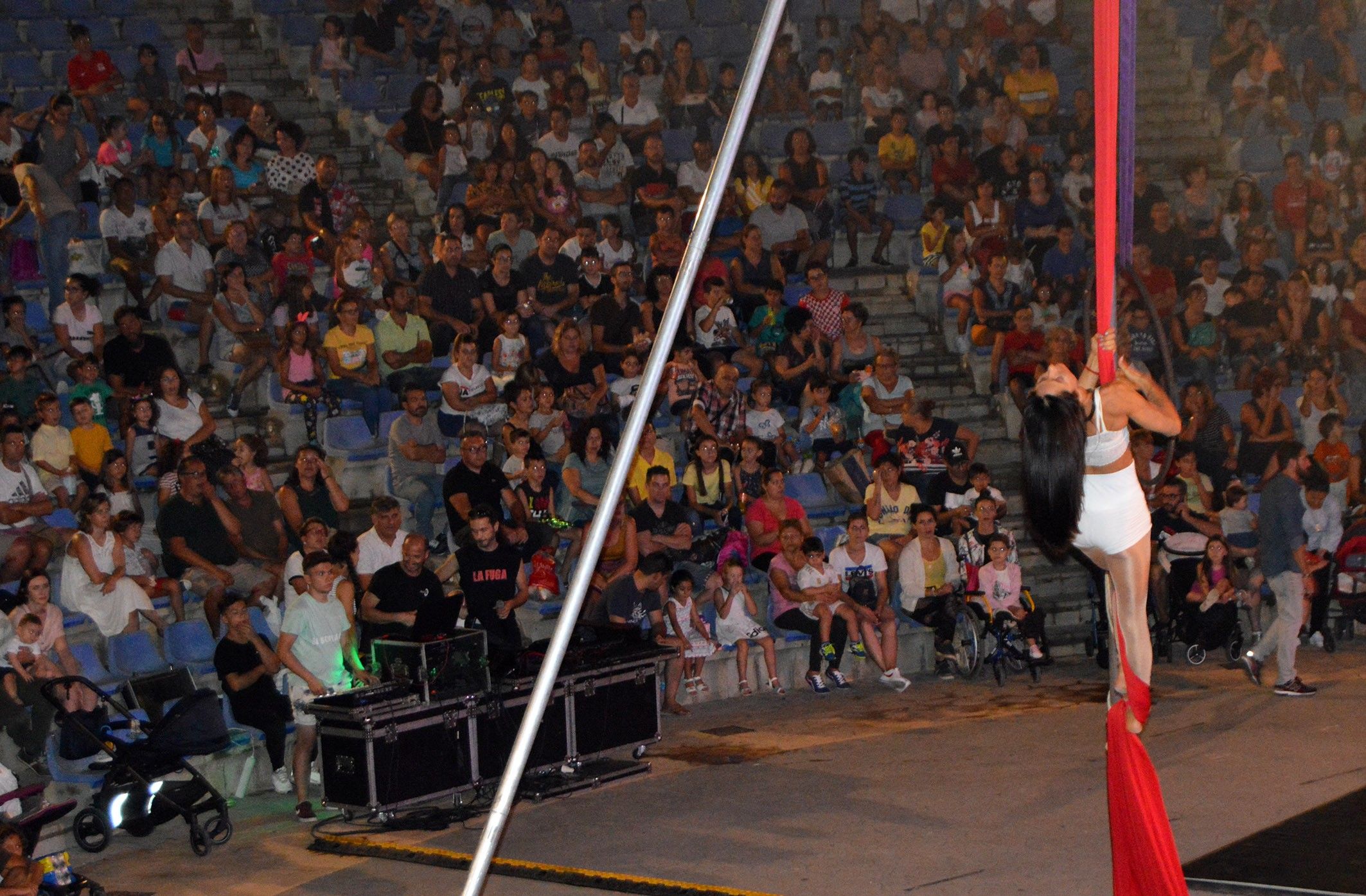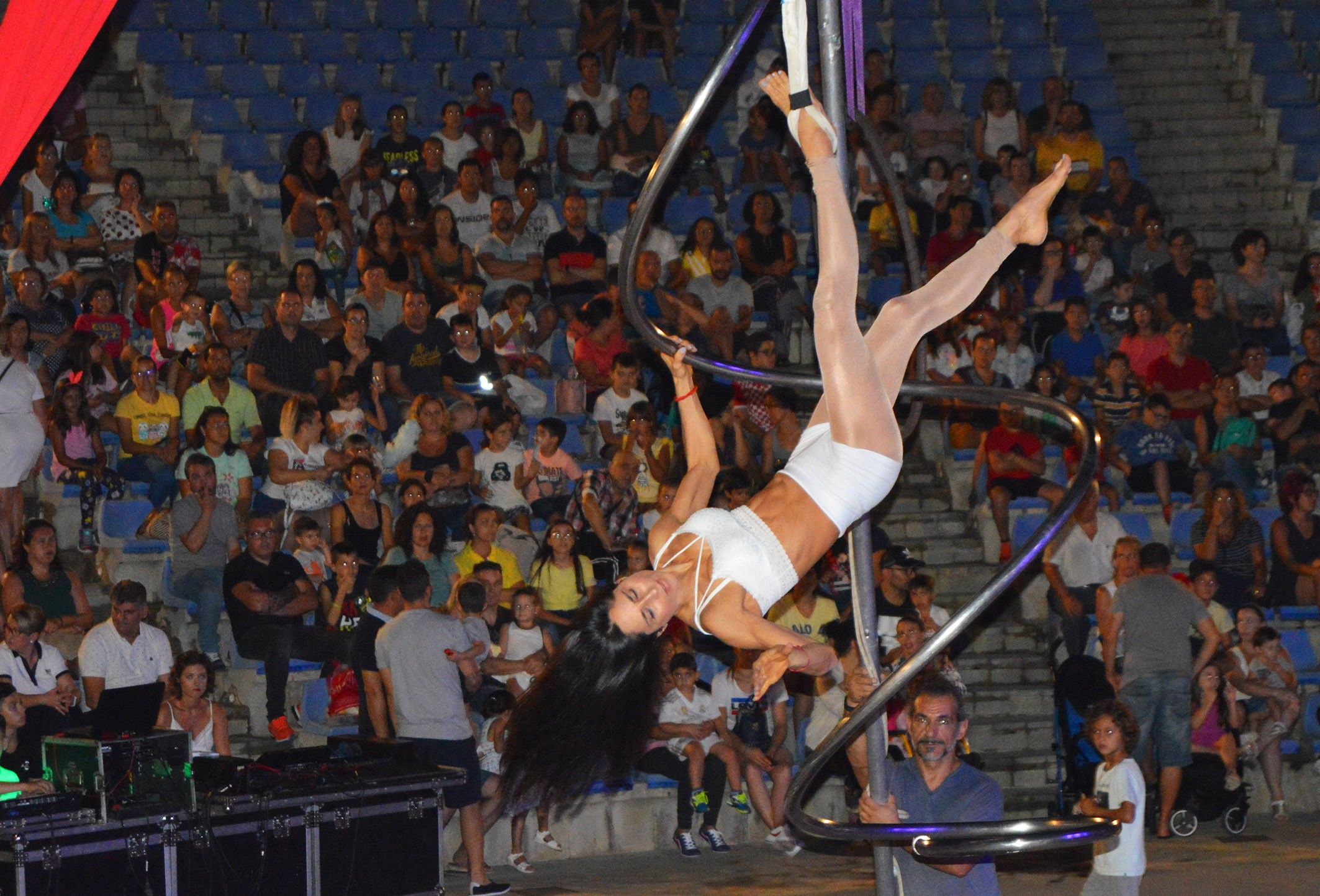 28/08/19 - El plato fuerte de la jornada de ayer fue el festival Las Torres en Familia, una cita con la música y las artes que tuvo lugar en el auditorio municipal Juan Baño. Comenzó con un taller de circo para los más pequeños y siguió con una exhibición de acrobacias circenses y danza aérea, humor, clown y la música en directo de la Billy Boom Band.