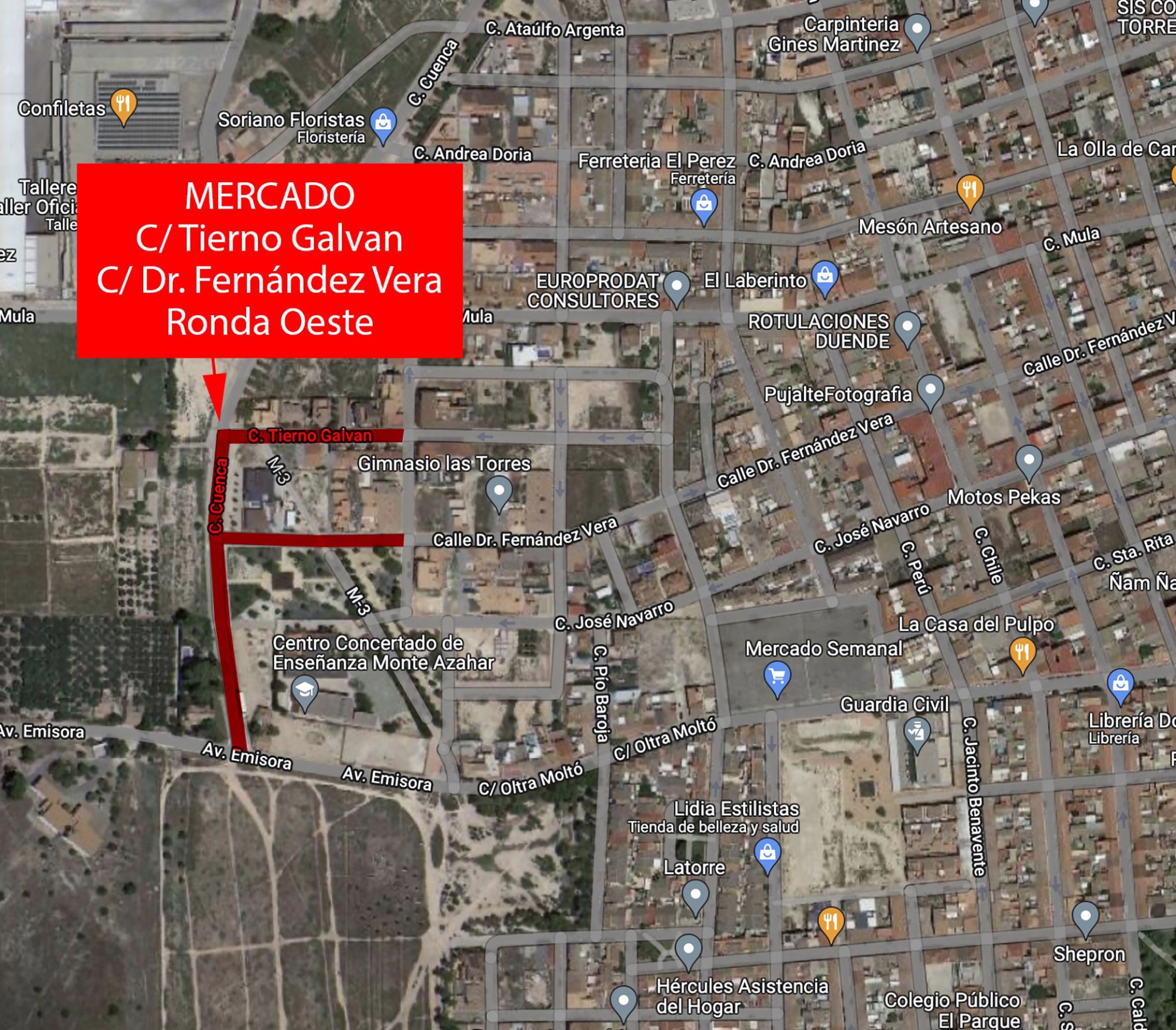 El mercado semanal de Las Torres de Cotillas cambia de ubicación durante las fiestas
