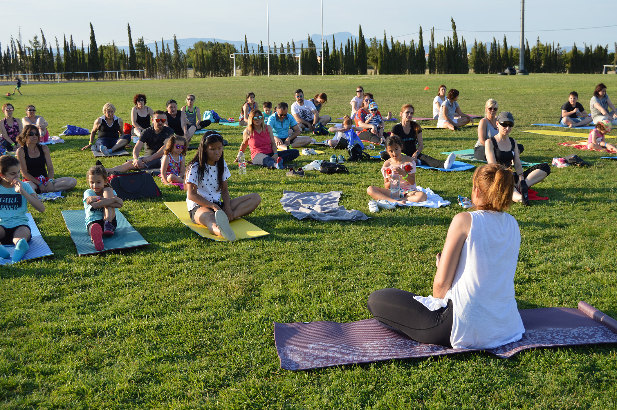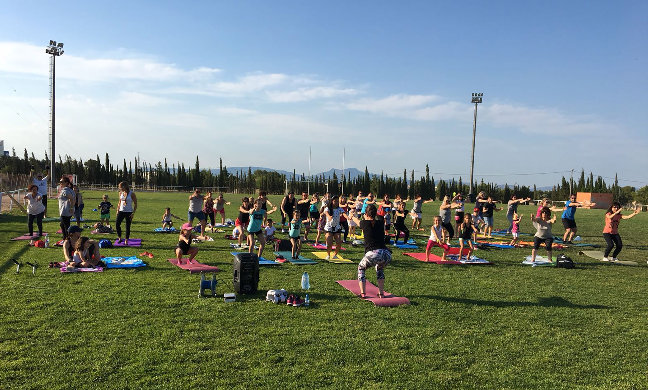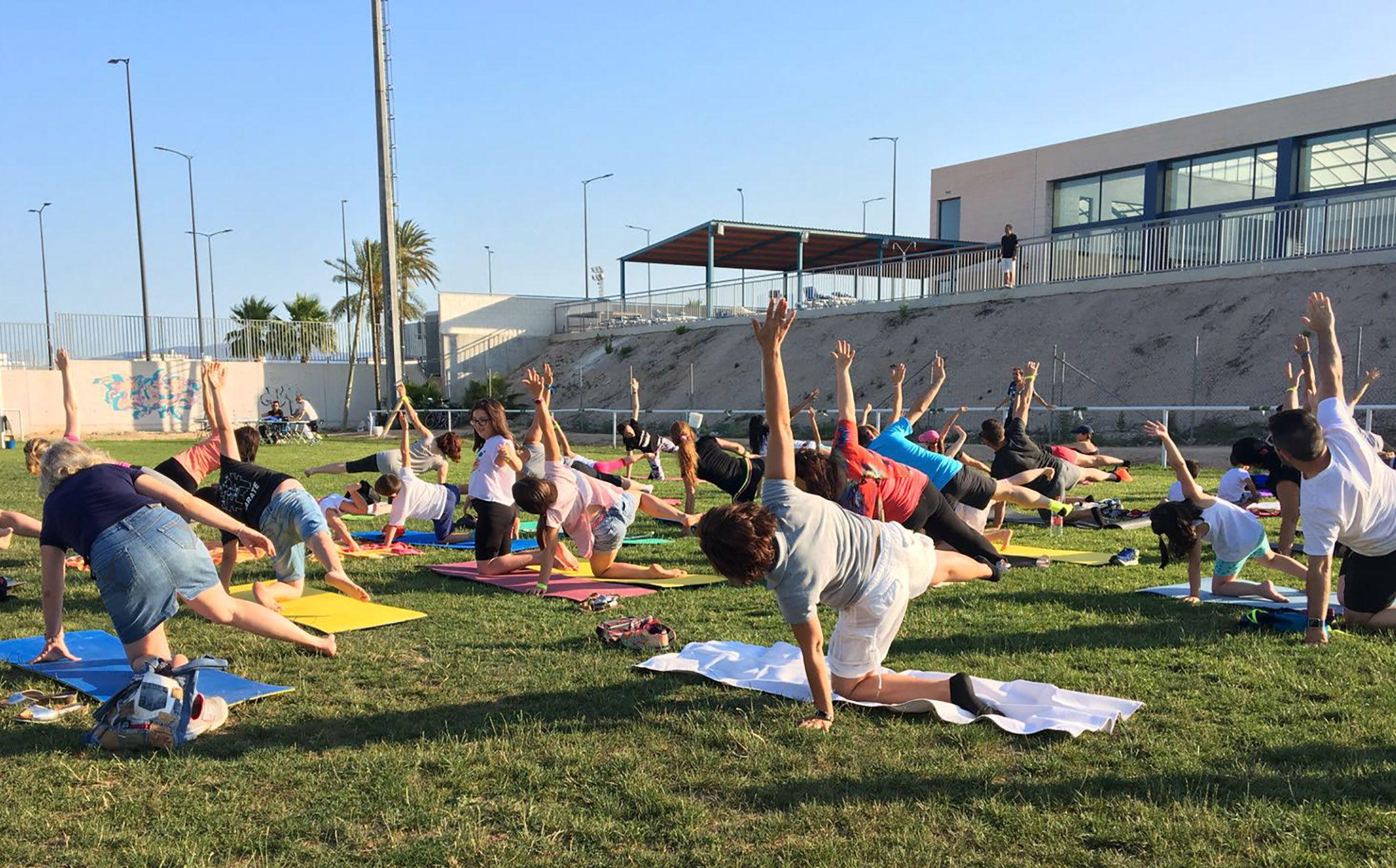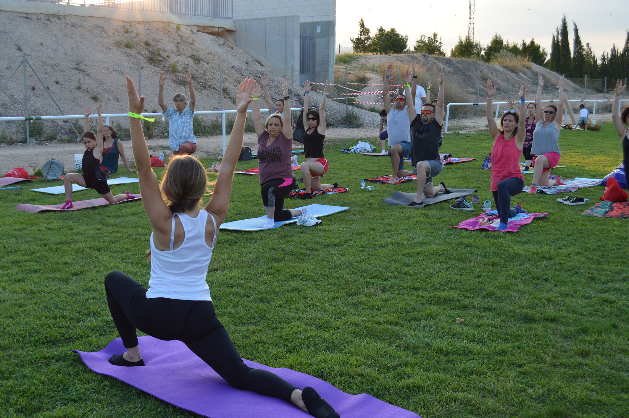 El campo municipal de césped natural de Las Torres de Cotillas acogió en la tarde de ayer sábado 16 de junio la nueva actividad gratuita en el municipio del proyecto europeo 'Do-U-Sport'. “Se propuso una jornada sobre movimiento bioenergético para personas de todas las edades, con actividades de yoga, pilates, chi-kung, hatha Flow y danzas del mundo”, explica la alcaldesa, Isabel María Zapata, que visitó a los participantes durante la sesión deportiva.