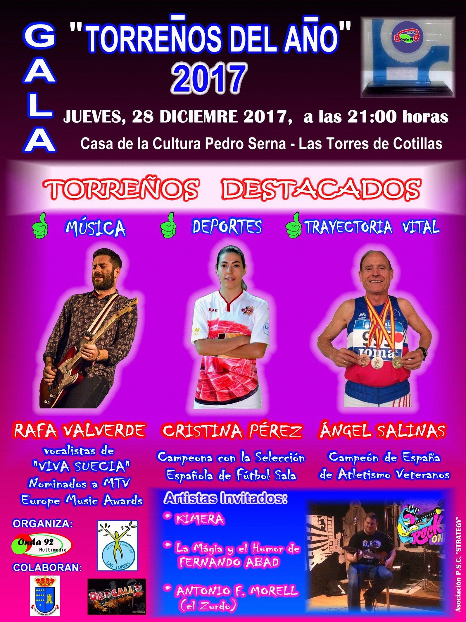 La gala de entrega de estos premios estará presentada por Salvador Martínez, María Ángeles Moragues, Paco Galera y Jesús Aguilar, locutores de la emisora municipal torreña. En este evento participarán, junto a los homenajeados, diferentes artistas y grupos: el ballet de ‘Kimera’, el actor Fernando Abad y sus monólogos, el guitarrista Antonio F. Morell ‘el zurdo’…