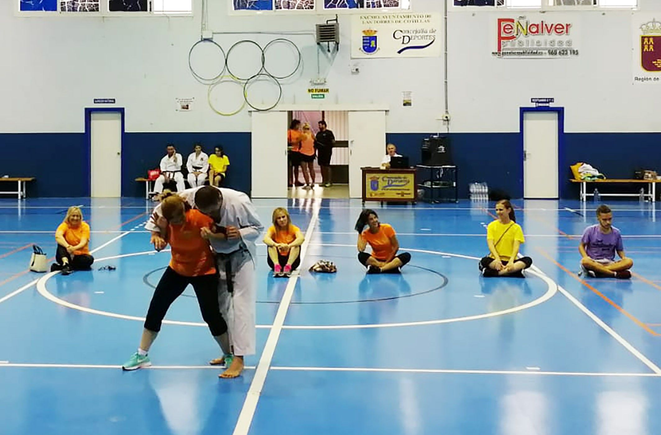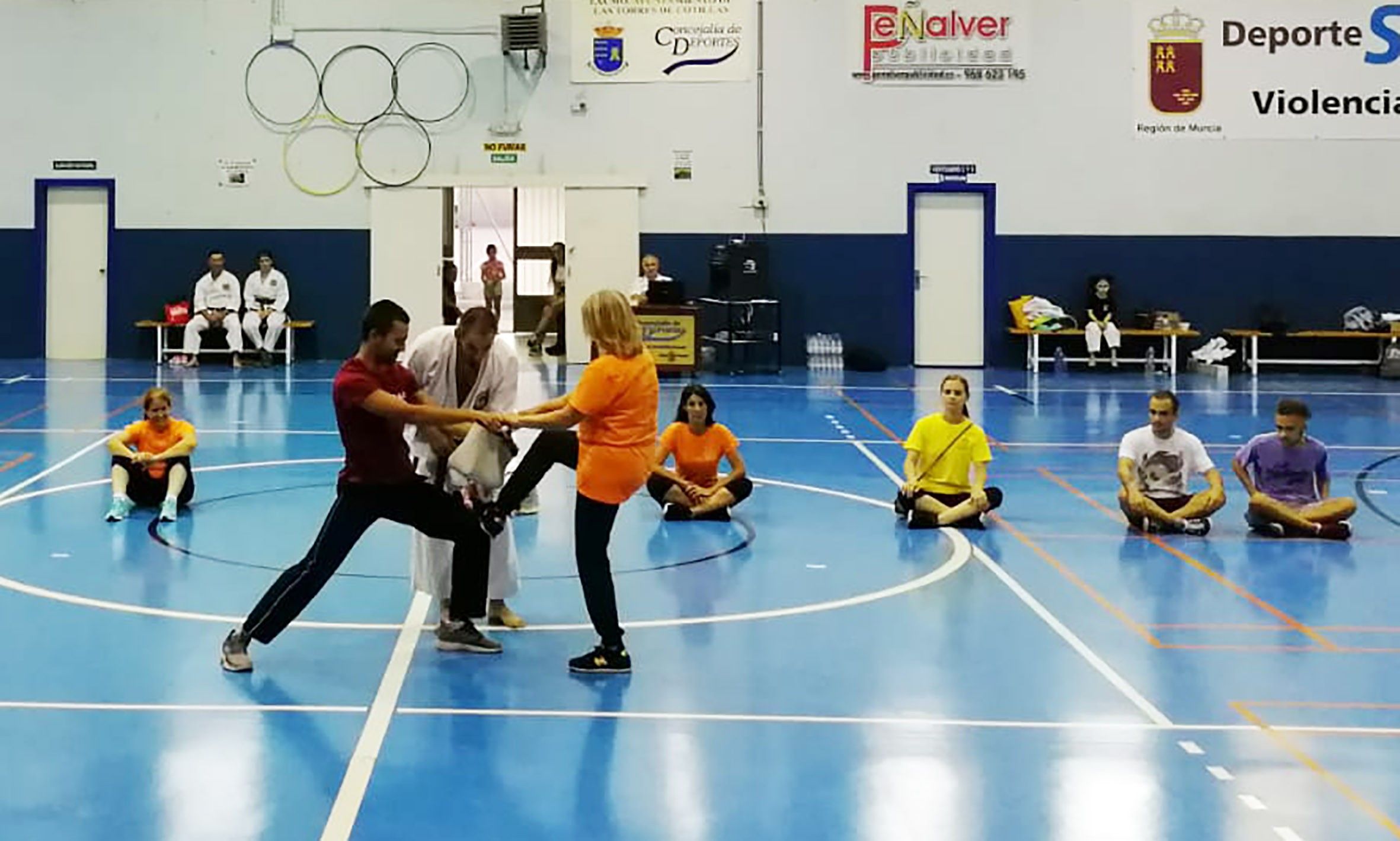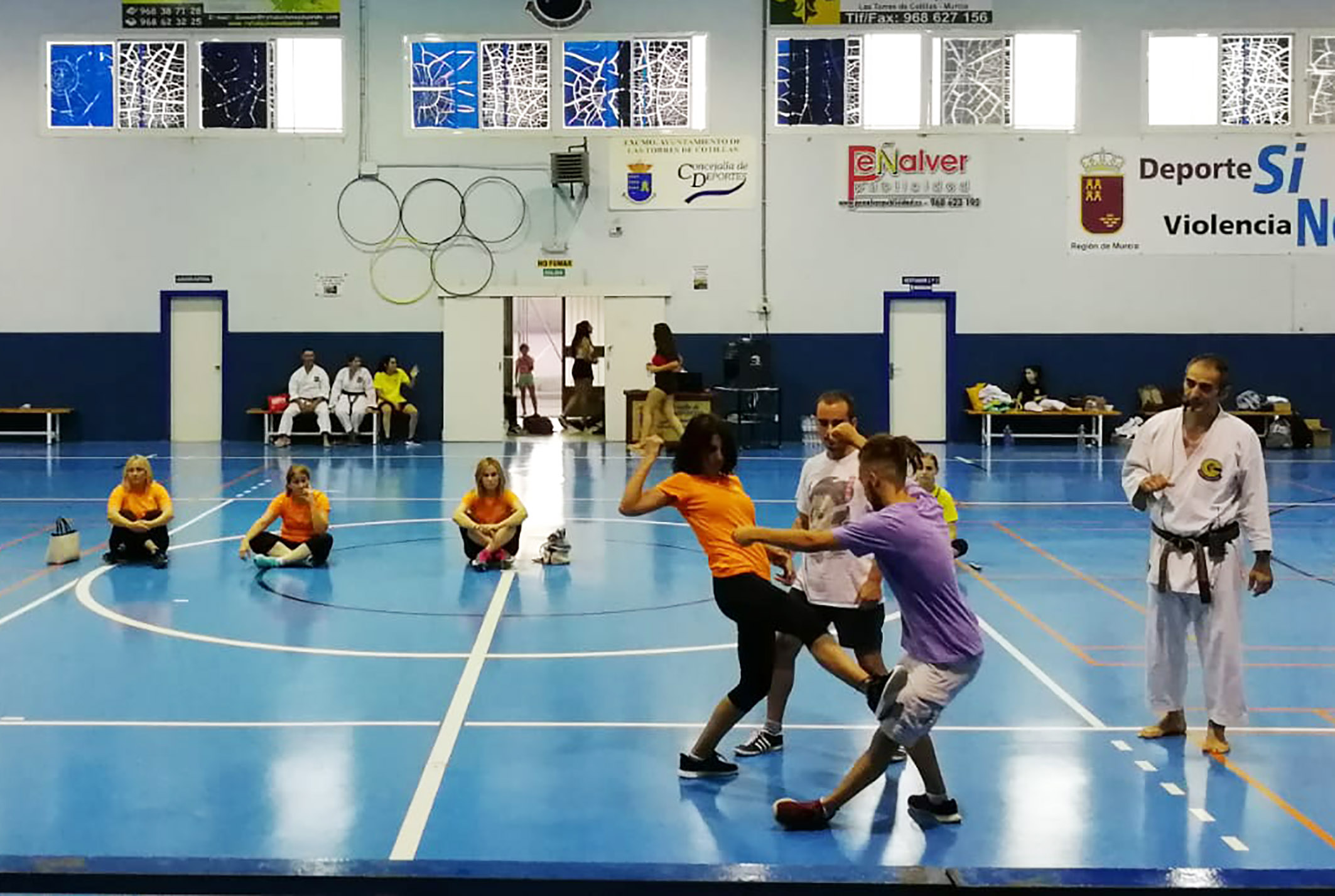 El pabellón acoge un curso de defensa personal y una exhibición de kárate