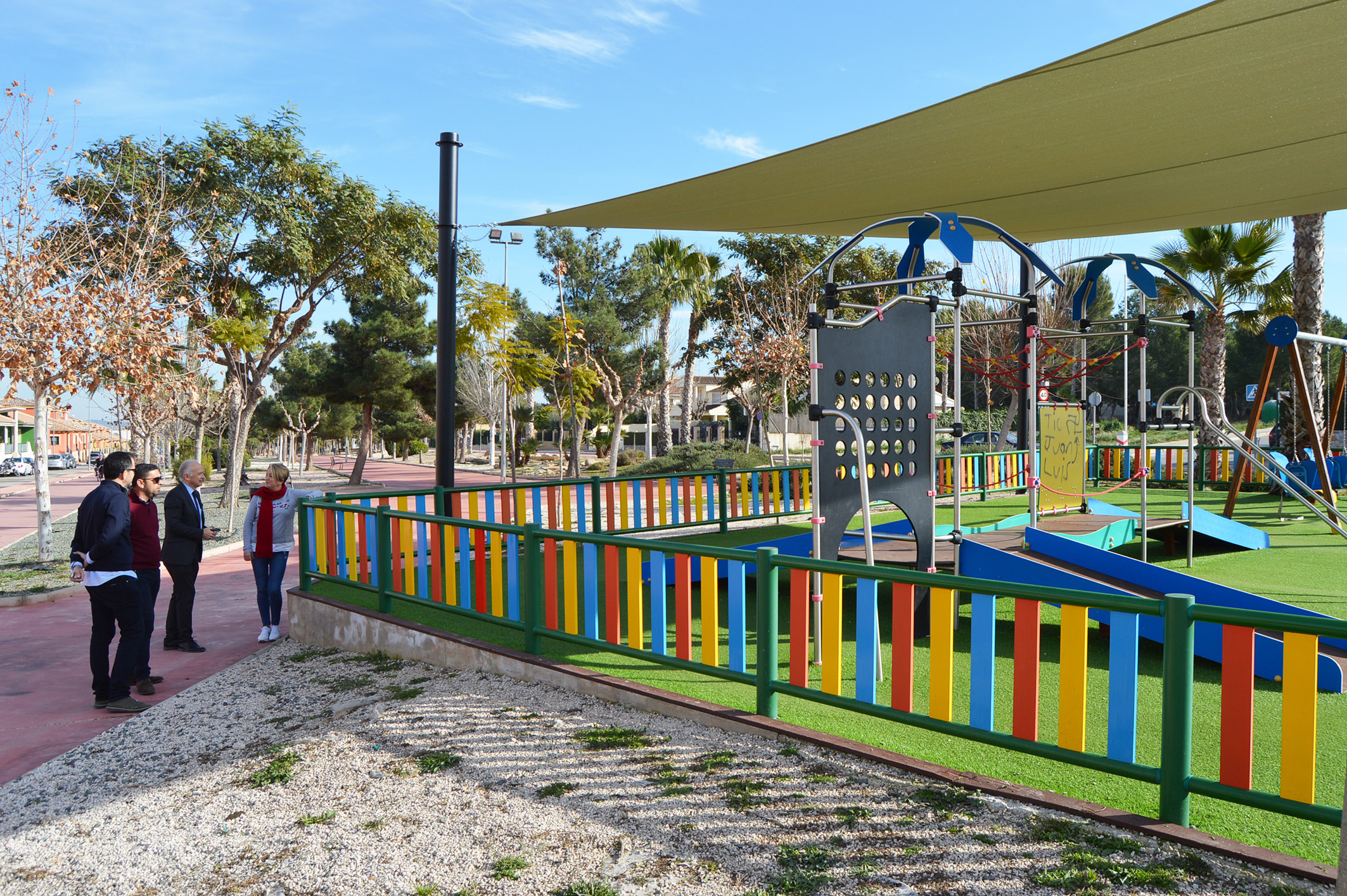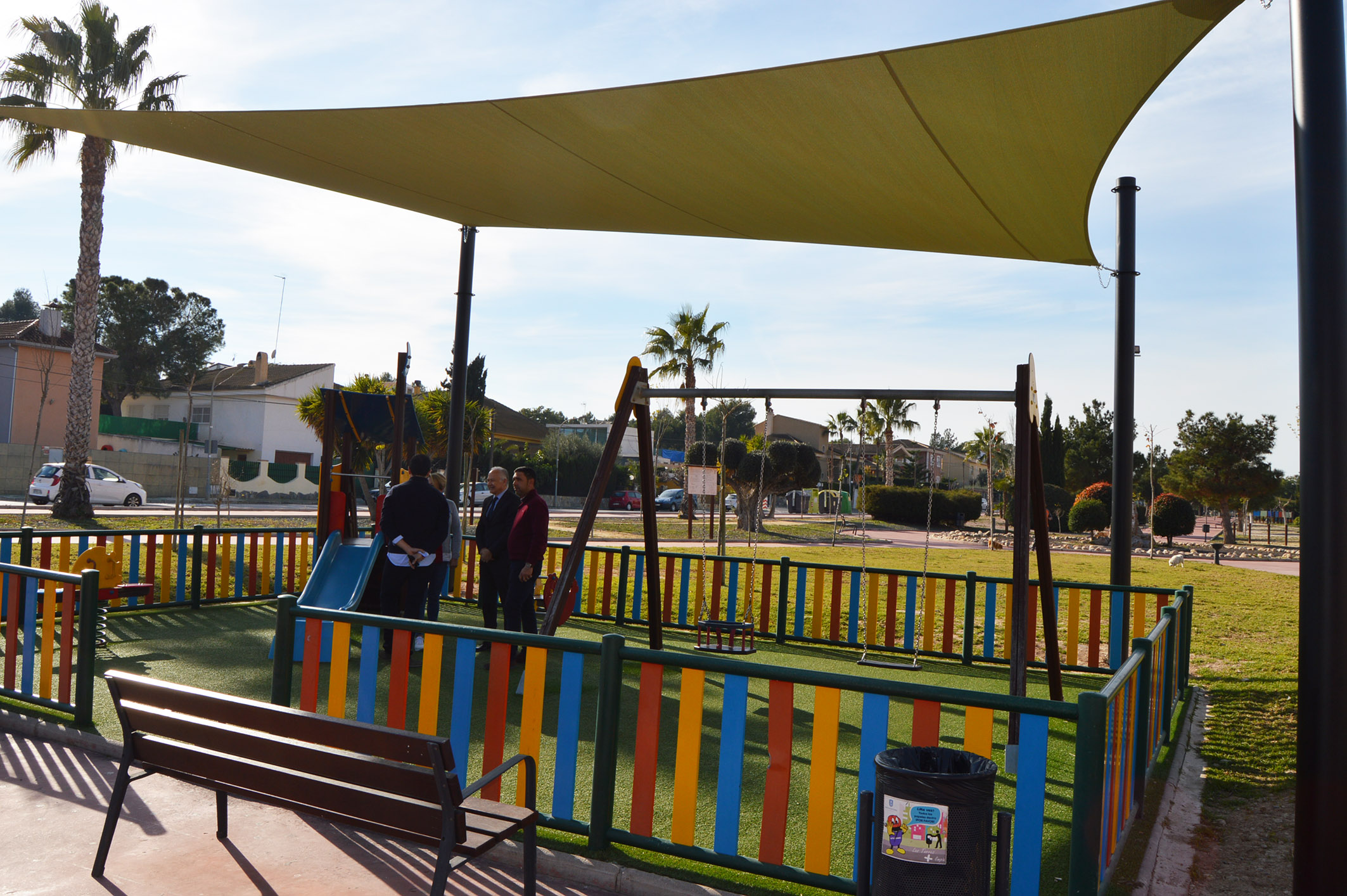 14/12/19 – La Concejalía de Urbanismo, Transición Ecológica, Medio Ambiente y Dominio Público de Las Torres de Cotillas ha concluido las obras de instalación de toldos en las zonas de juegos infantiles del Parque Paco Rabal, que así quedan protegidas de la exposición prolongada del sol. “Estas estructuras permiten cubrir con sombra los tres espacios lúdicos del parque, que disponen de una superficie total de 310 m2”, explica el alcalde, Joaquín Vela Fernández, que visitó ayer estas instalaciones.