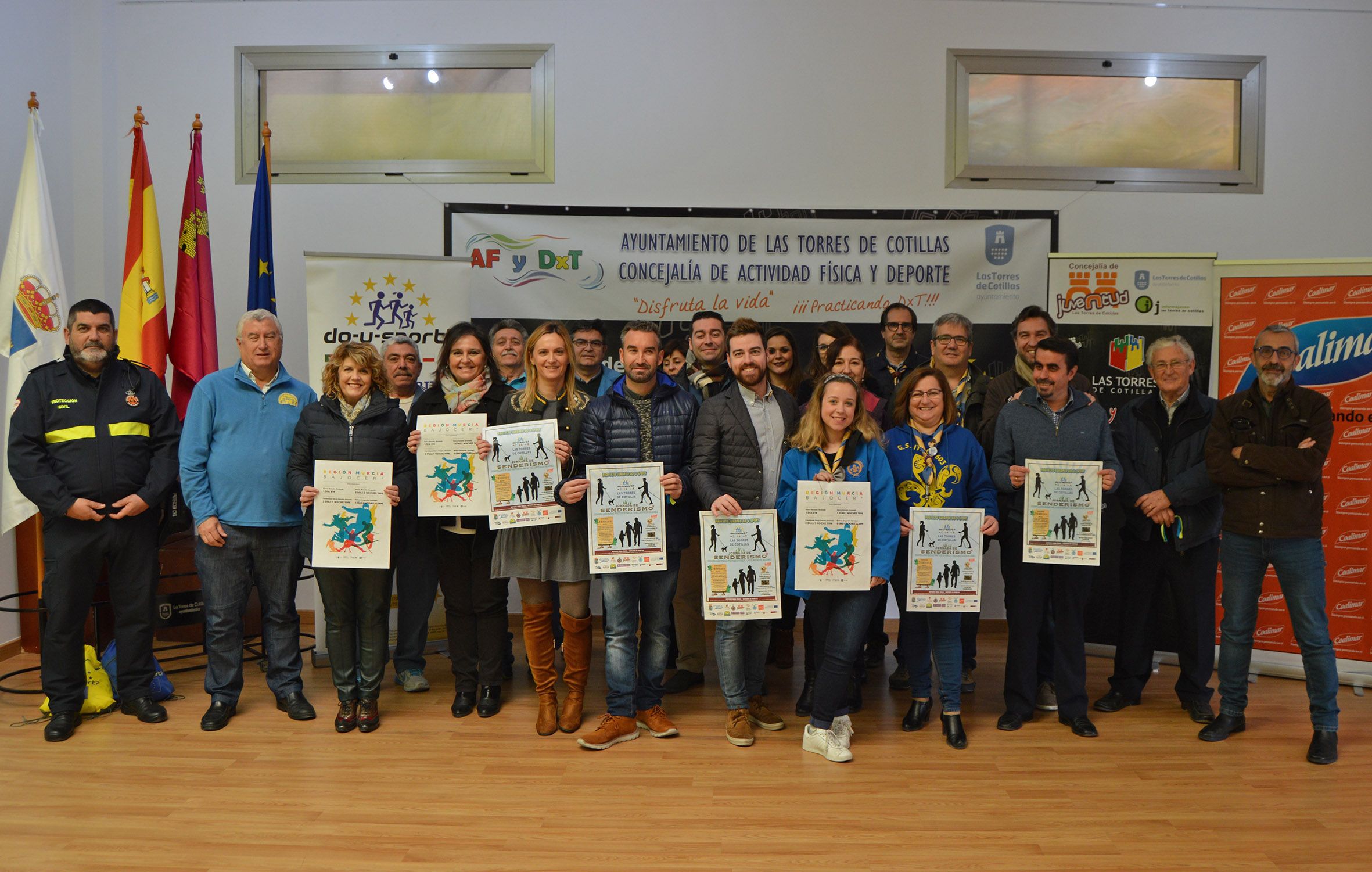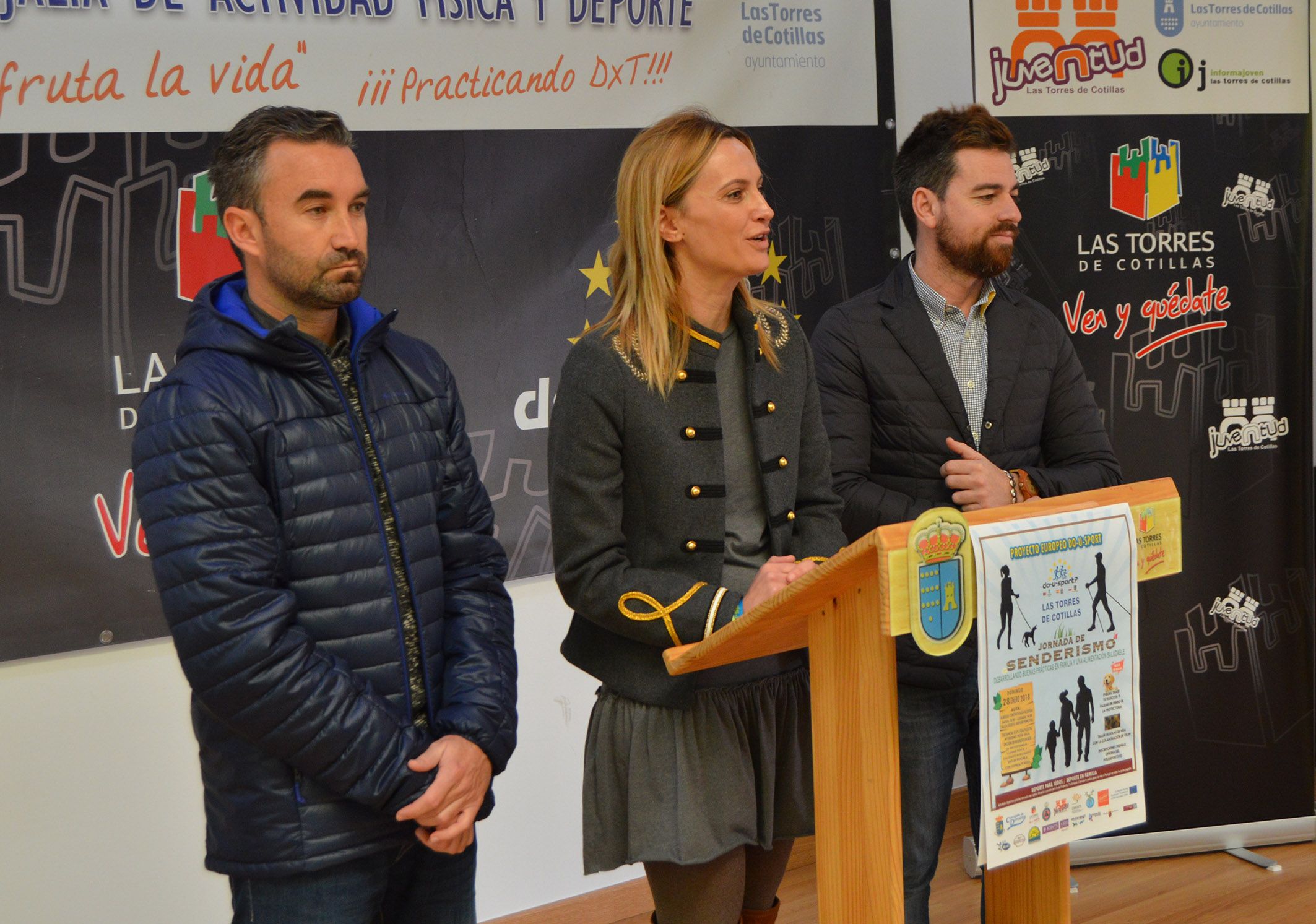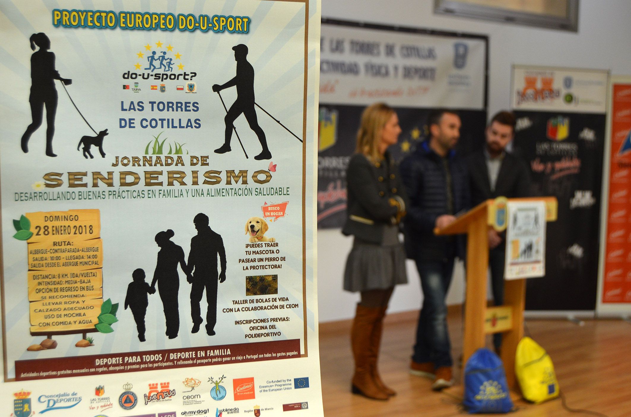 El próximo domingo 28 de enero la Concejalía de Actividad Física y Deportes de Las Torres de Cotillas propone una nueva actividad en el marco del proyecto europeo 'Do-U-Sport'. Será una jornada de senderismo que bajo el lema ‘Desarrollando buenas prácticas en familia y una alimentación saludable’ ha sido presentada hoy jueves 25 de enero en el Centro de Jóvenes Artistas torreño por la alcaldesa Isabel María Zapata, el director general de Juventud, Francisco Sánchez, y el concejal de Juventud, Actividad Física y Deportes, Ginés Pérez.