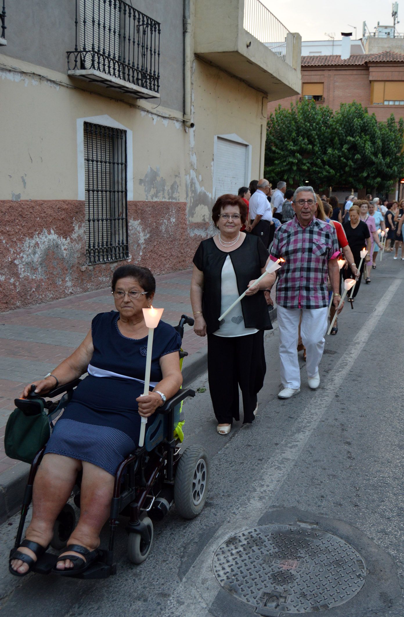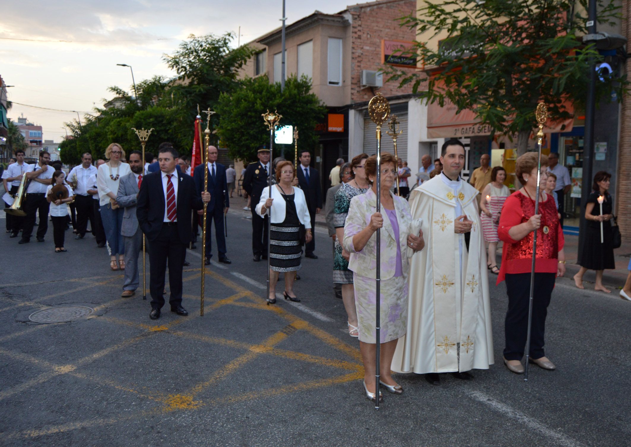 Un año más la imagen del Sagrado Corazón de Jesús desfiló por Las Torres de Cotillas en la noche de ayer domingo 25 de junio, en una procesión organizada por la Hermandad del mismo nombre. Tras la celebración de una eucaristía en la Iglesia de Nuestra Señora de la Salceda oficiada por el párroco titular del templo torreño, Ismael Sánchez, pasados pocos minutos de las nueve de la noche comenzaba el desfile. En él participaron cientos de fieles que, portando los tradicionales cirios, arroparon a la talla de Cristo Rey.