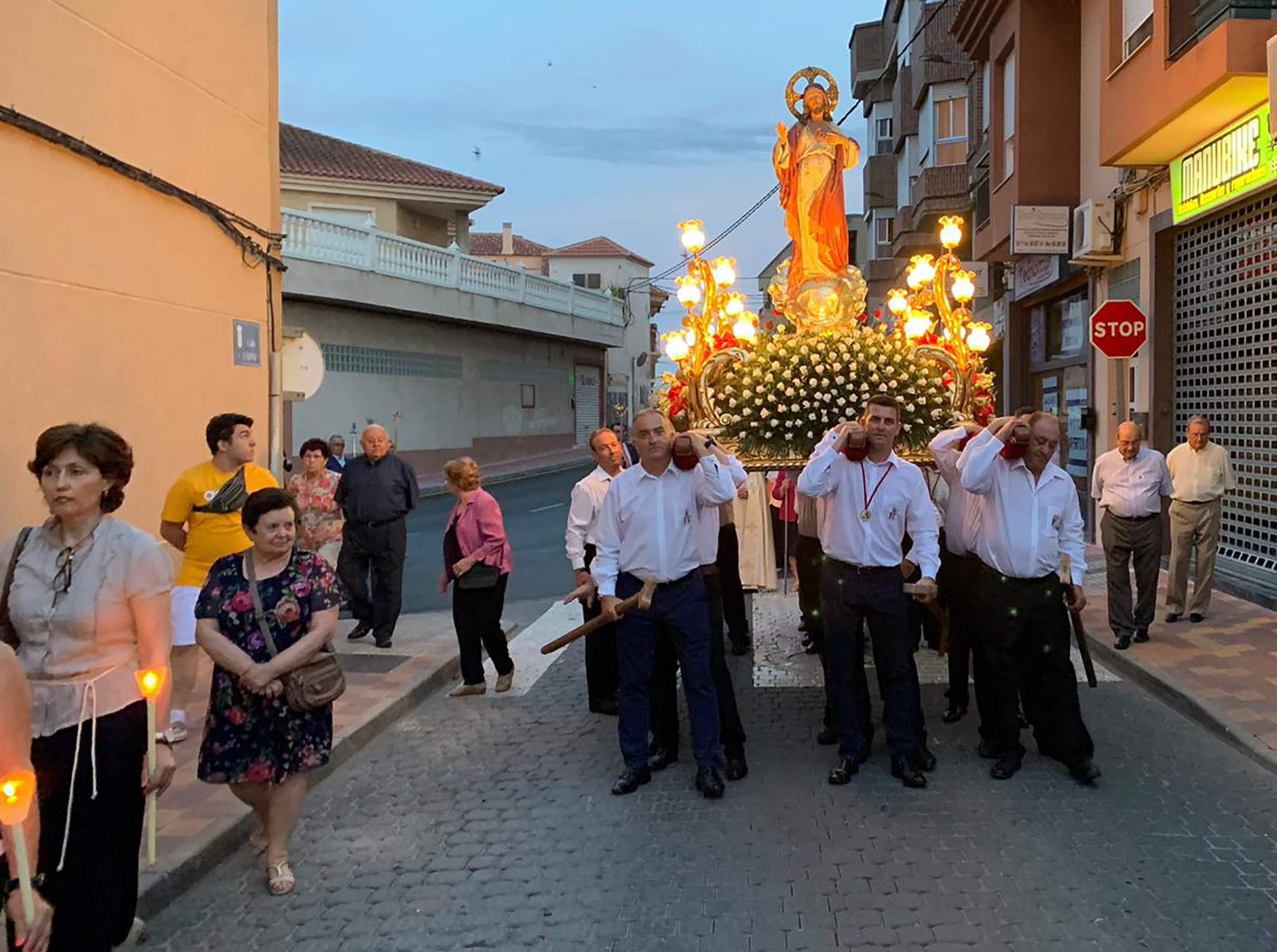 17/06/19 – En la noche de ayer domingo 16 de junio se celebró en Las Torres de Cotillas la tradicional procesión del Sagrado Corazón de Jesús. Un desfile que tuvo como preámbulo la celebración de una misa en la Iglesia de Nuestra Señora de la Salceda, oficiada por el párroco titular del templo torreño, Ismael Sánchez.