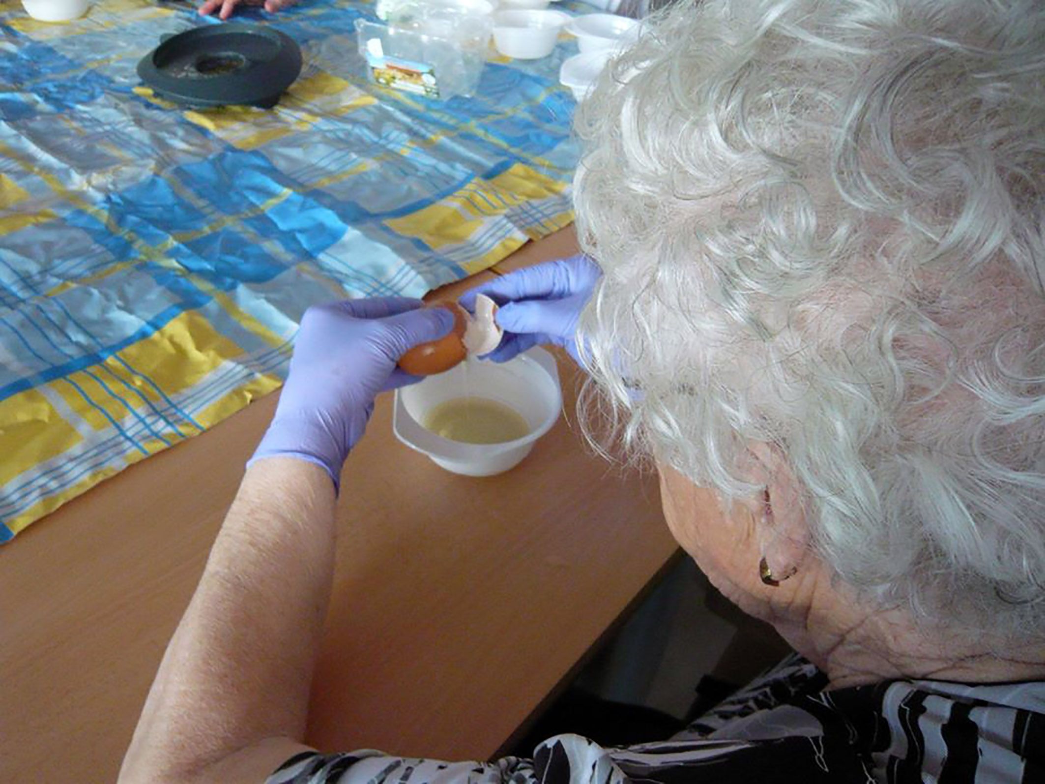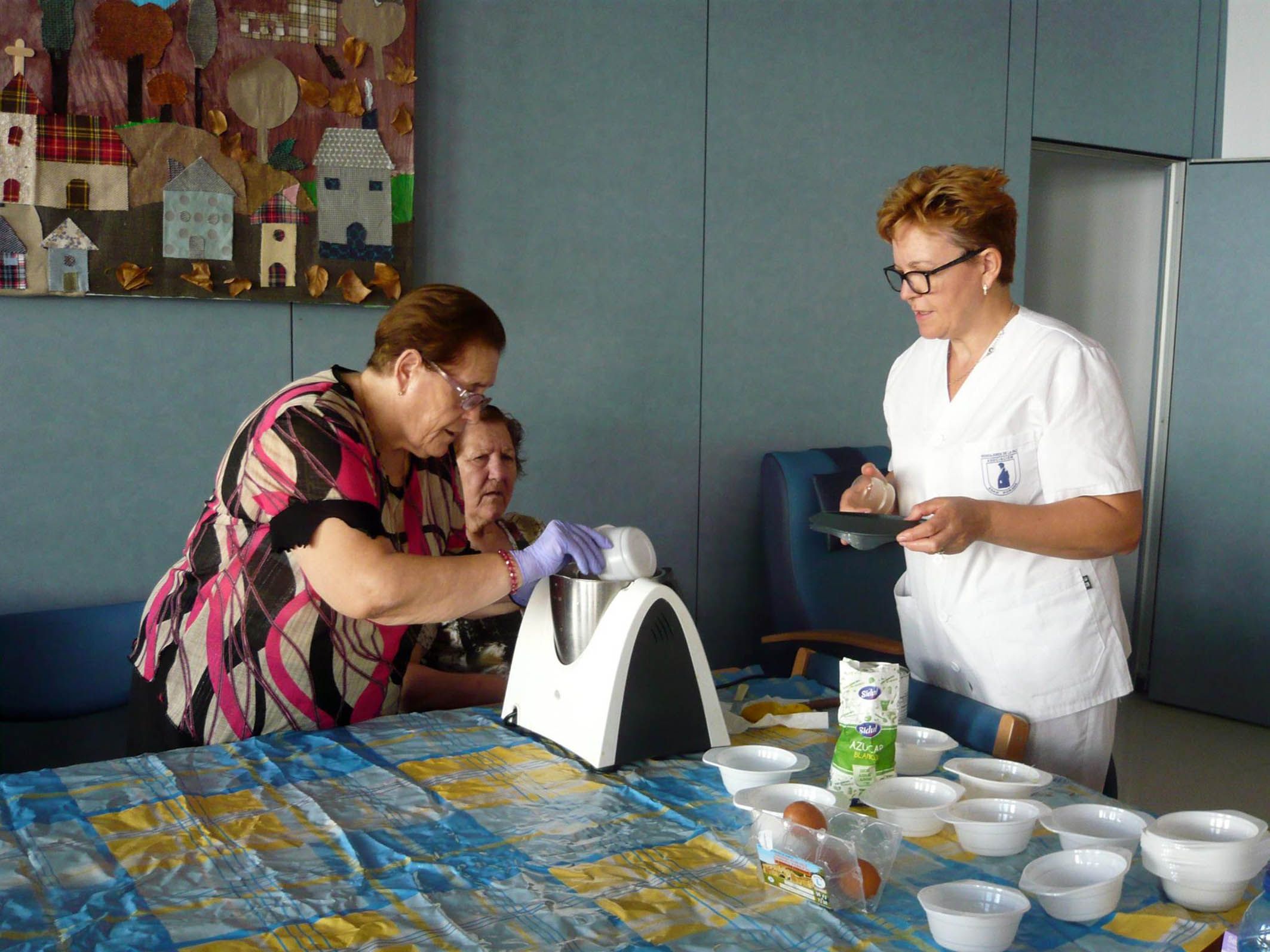 Con ingredientes tan básicos como azúcar, melocotones pelados, zumo de limón y claras de huevos este taller ayudó a sus participantes a pasar un rato muy entretenido recordando tareas que formaban parte de su vida diaria. Para finalizar, tanto los participantes en esta actividad como sus compañeros y el propio personal del servicio degustaron el dulce plato elaborado.