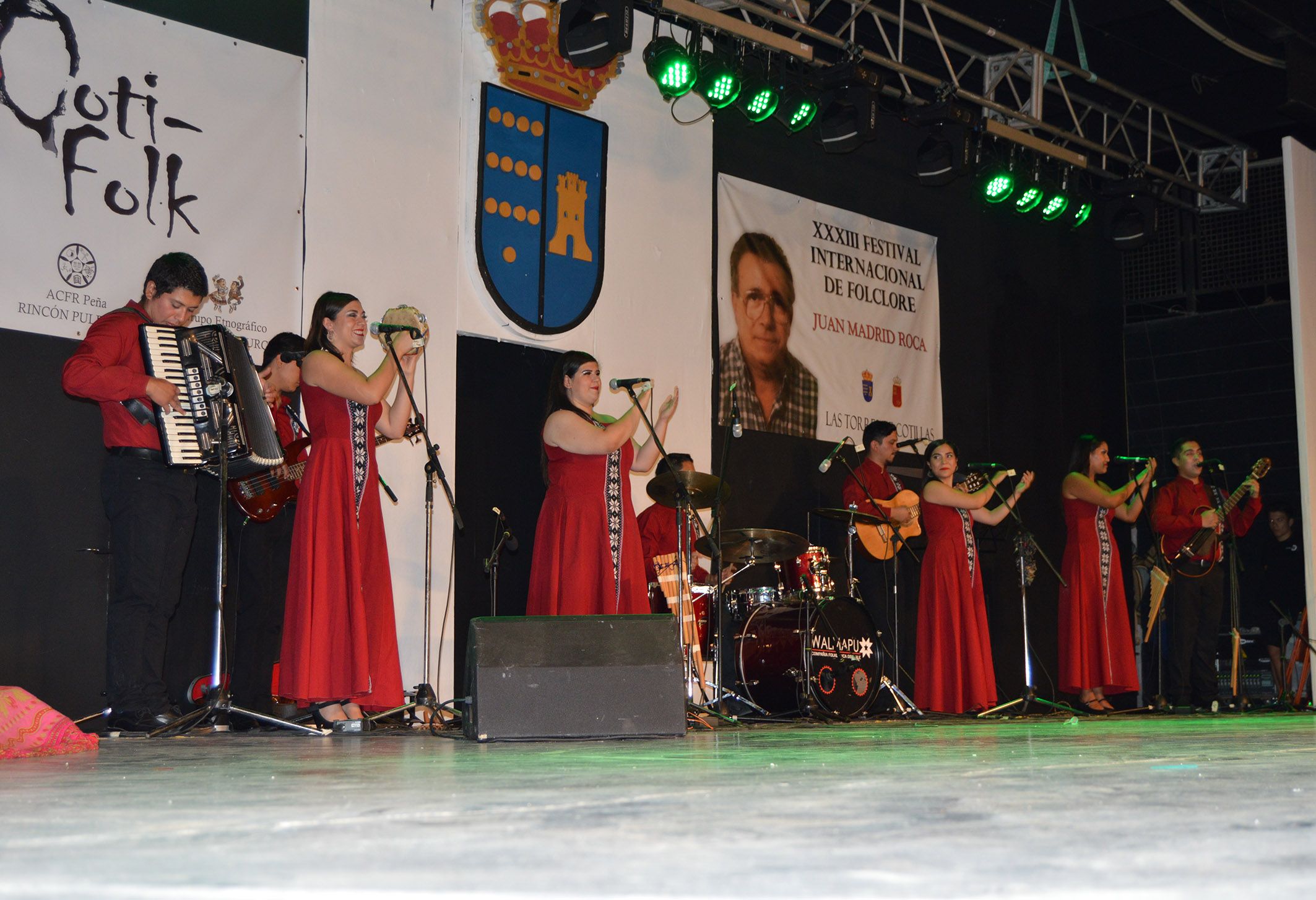 Para concluir la jornada, tuvo lugar en el auditorio municipal ‘Juan Baño’ la 33ª edición del festival internacional de folklore ‘Juan Madrid Roca’, organizado por la asociación ‘Cotifolk’. En esta cita participaron el grupo de coros y danzas ‘Madridejos’ (Toledo), la ‘Walmapu Compañía Folklórica’ (Chile) y el grupo etnográfico ‘Vergel de Murcia’ (Las Torres de Cotillas).