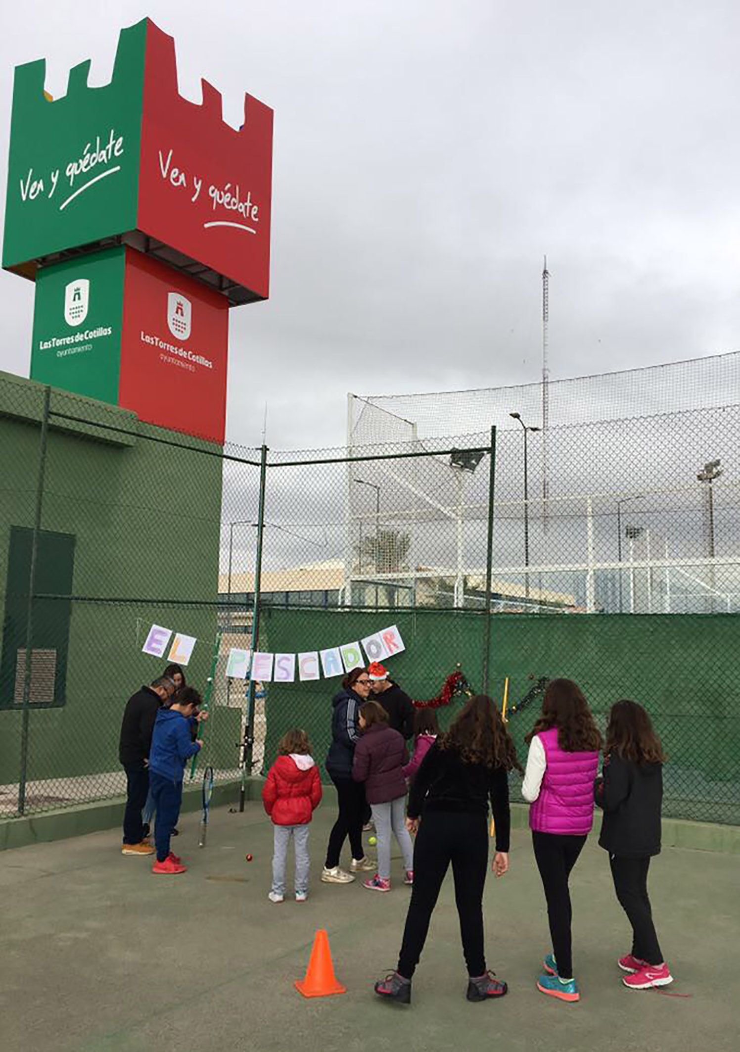Cerca de 200 personas participaron en la fiesta solidaria que la escuela de tenis ‘Las Torres entre raquetas’ celebró el pasado sábado 23 de diciembre en el polideportivo municipal de Las Torres de Cotillas. “El objetivo de este evento, en el que se organizaron diferentes juegos y actividades, era recoger juguetes y alimentos para las familias más necesitadas del municipio”, indica el concejal de Actividad Física y Deportes, Ginés Pérez, que también asistió a este festejo a beneficio de la asociación ‘Sonrisas Solidarias’.