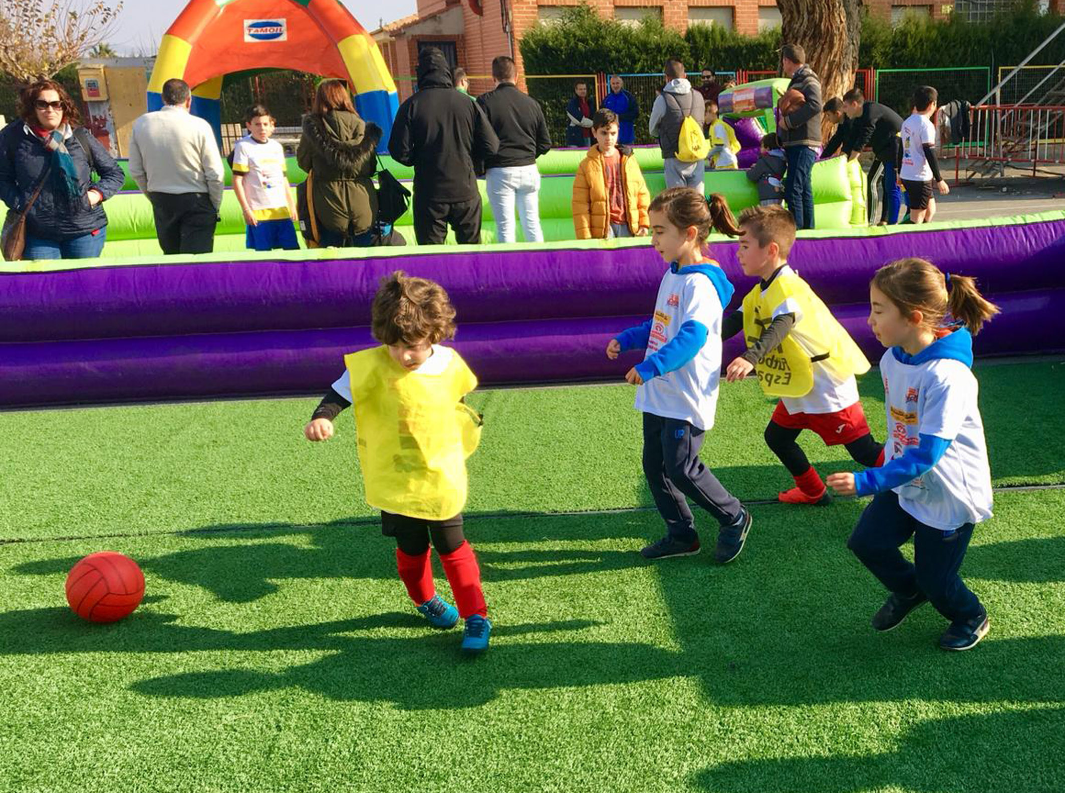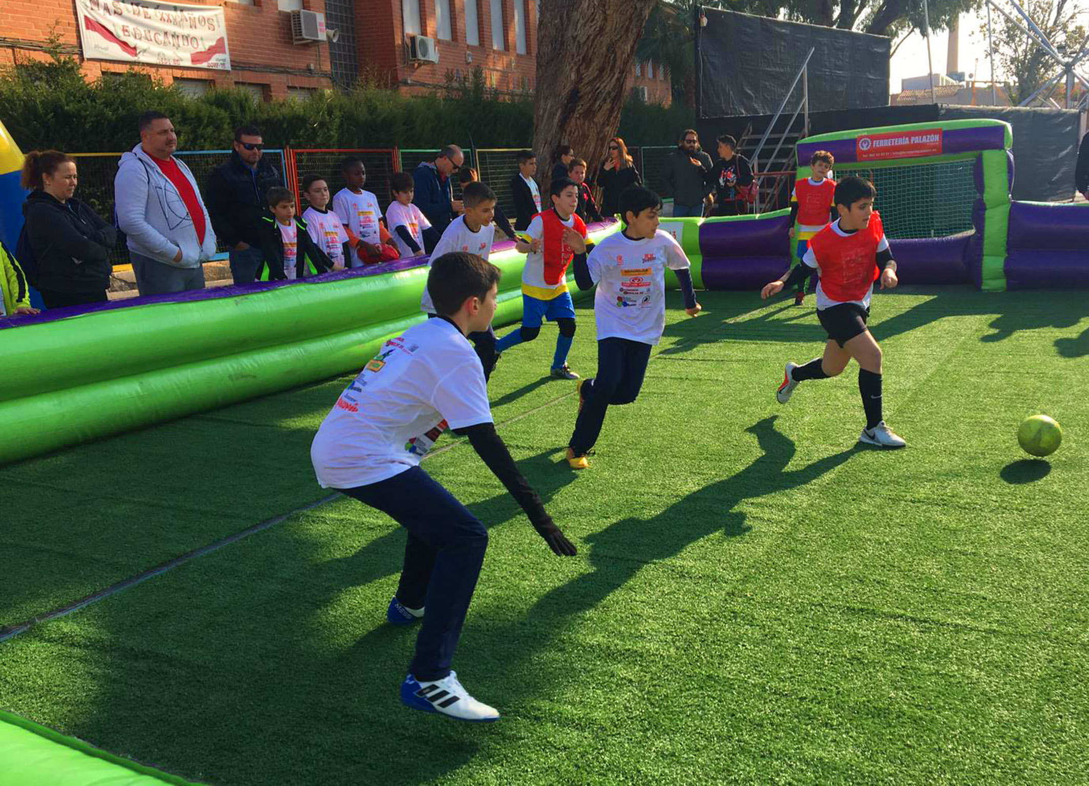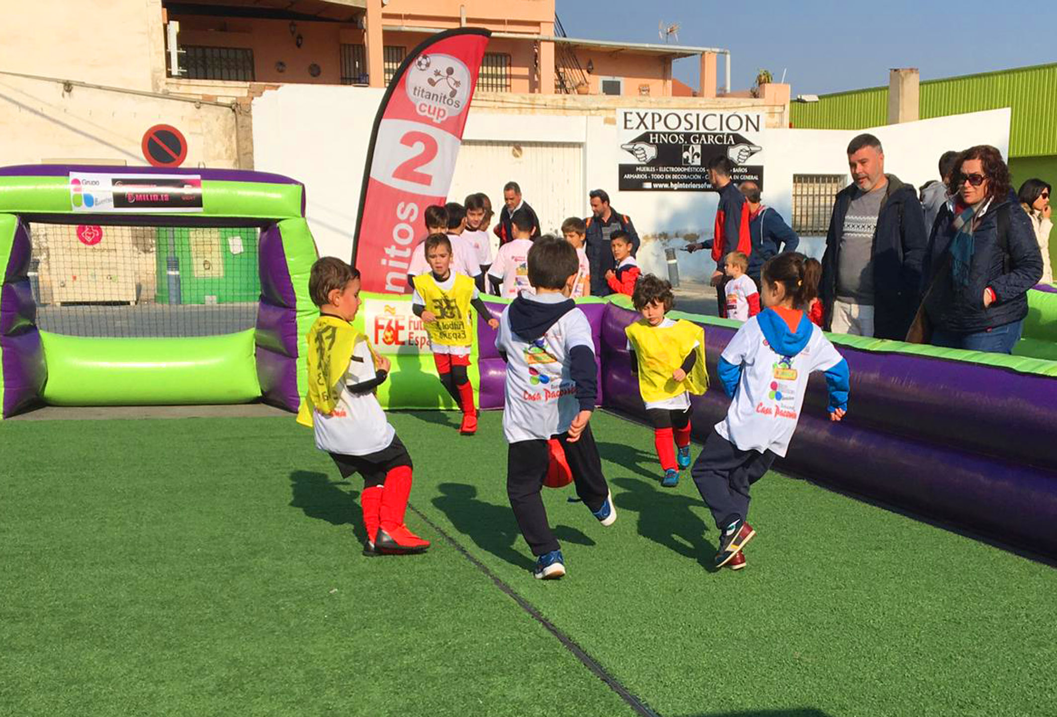 La explanada Maestro Don Ángel Palazón de Las Torres de Cotillas acogió el pasado viernes 28 de diciembre el torneo de exhibición de fútbol 3 ‘Automóviles Emilio&Grupo Promotora’, en el que decenas de niños y niñas de 4 a 11 años lo pasaron en grande. “Fue una mañana saludable, de convivencia y diversión, en la que los participantes pudieron disfrutar de uno de sus deportes favoritos en un entorno novedoso como fueron las canchas portátiles hinchables instaladas”, explica la alcaldesa, Isabel María Zapata.