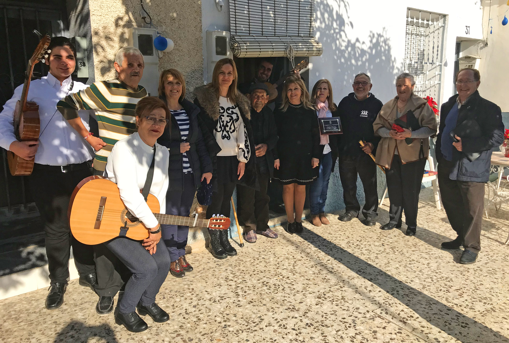 En esta visita Zapata estuvo acompañada por un grupo de miembros de la peña torreña ‘Rincón Pulpitero’, que entonaron diversas canciones para poner la nota festiva a la cita. Por supuesto, en estas fechas no faltaron los villancicos y el ‘Cumpleaños Feliz’. “Onofre es muy conocido y querido en Las Torres de Cotillas, un gran representante de la huerta local, tanto que fue nombrado ‘Huertano del Año’”, recuerda Zapata.