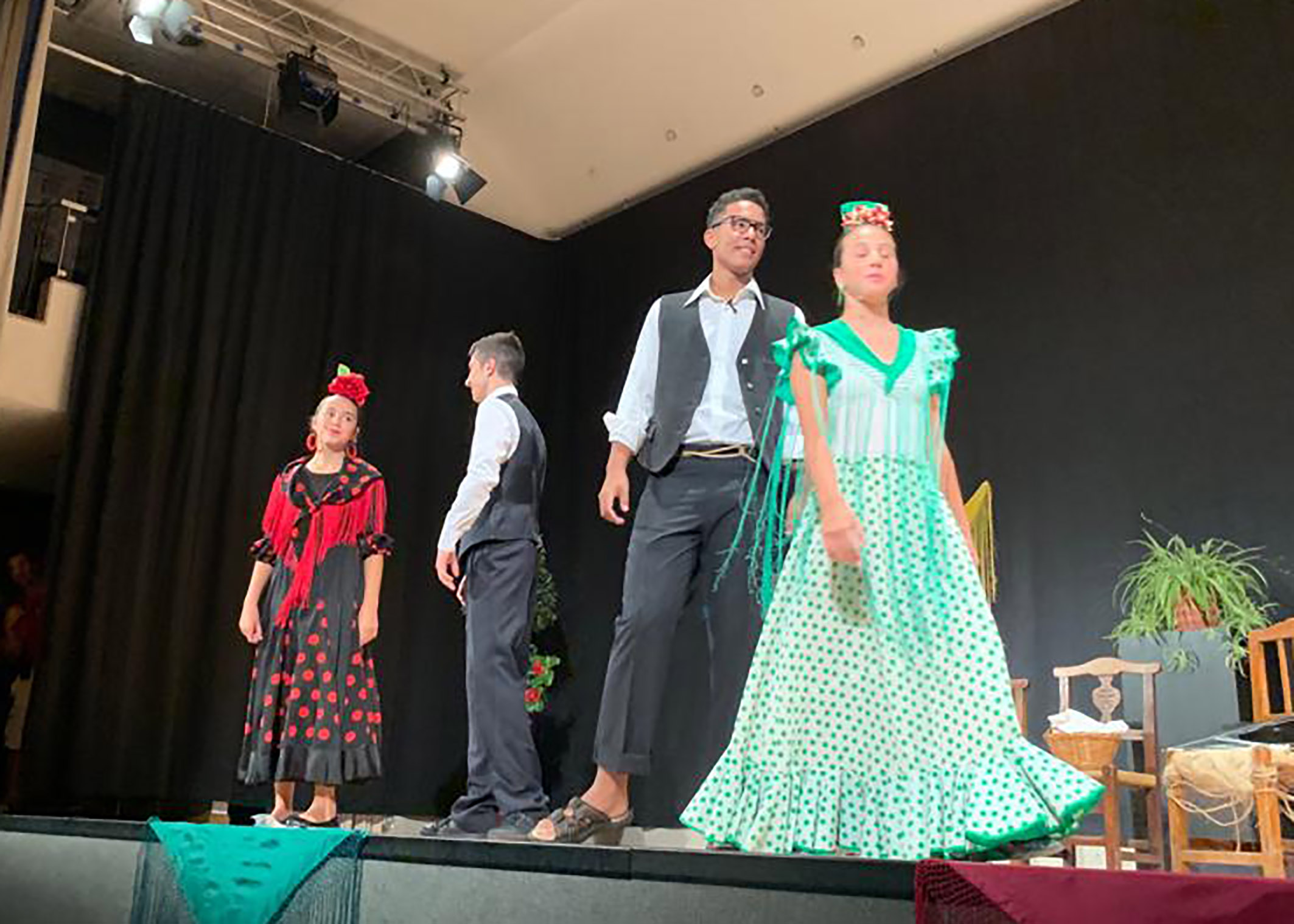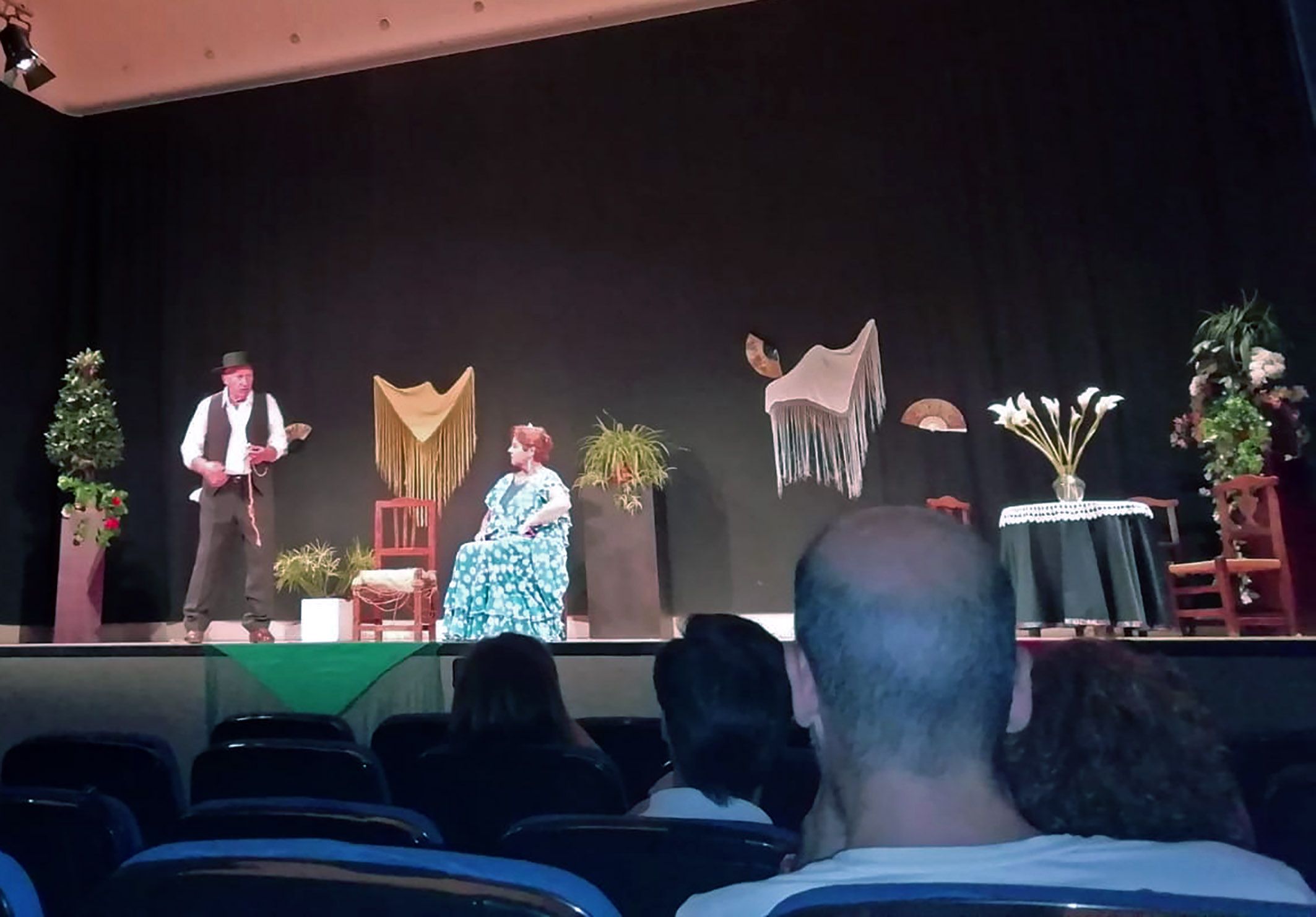 29/07/19 – La Casa de la Cultura Pedro Serna de Las Torres de Cotillas acogió en la noche del pasado sábado 27 de julio un festival intergeneracional de teatro organizado por el grupo de teatro Tejuba en colaboración con la Concejalía de Cultura local. Para ello sus actores -todos ellos de diferentes edades, incluidos los más pequeños- interpretaron tres sainetes de los hermanos Álvarez Quintero: por un lado, Santi Baño y Francisco Fernández representaron ‘Ganas de reñir’; por otro, Lorena Lara y Rafa Cánovas pusieron en escena ‘Sangre gorda’; y, por último, Laura Carpio, María Fernández, Michael Vicente y Sergio Carpio interpretaron ‘Un pregón sevillano’.