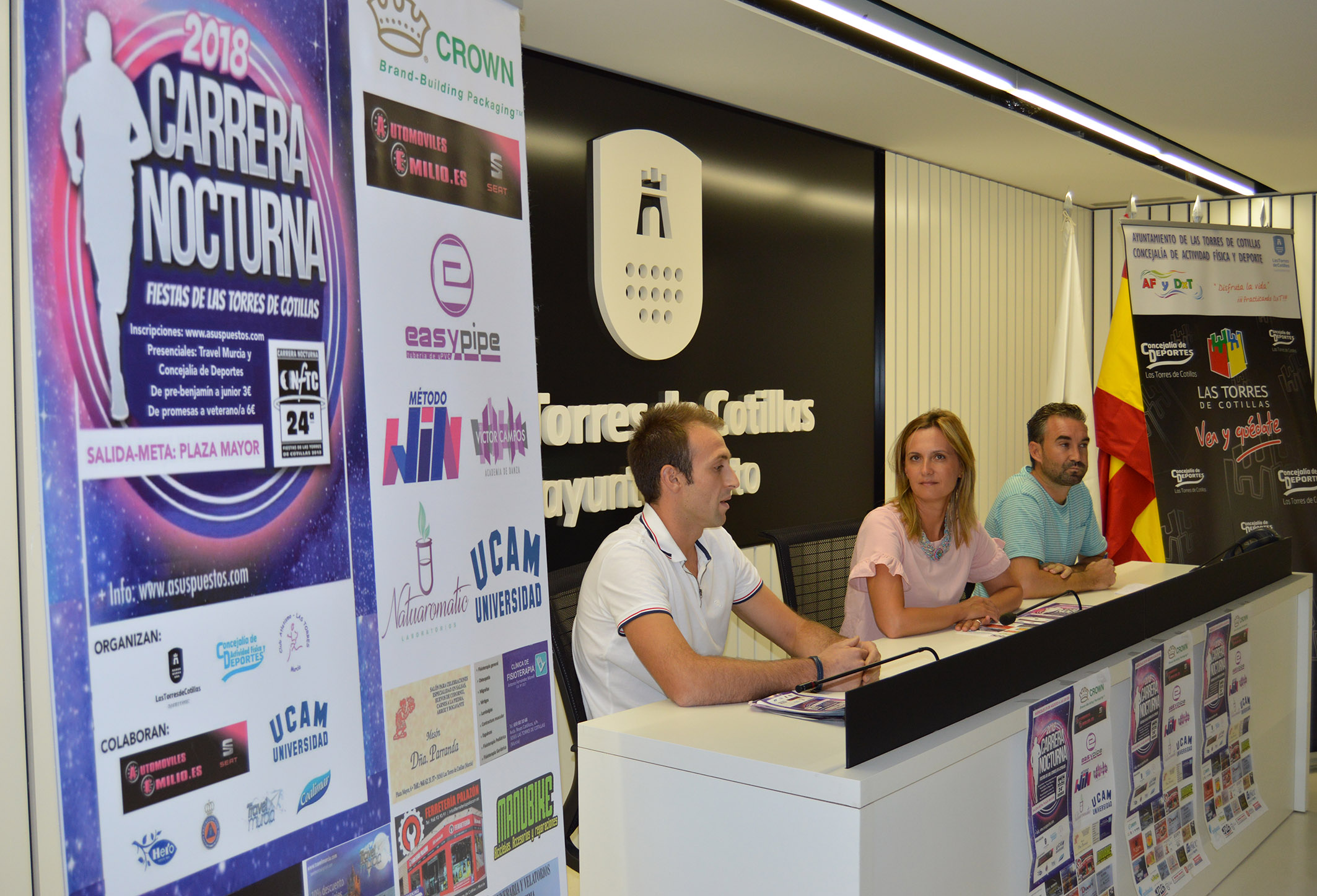 La ‘Carrera Nocturna Fiestas de Las Torres de Cotillas’ cumplirá el próximo miércoles 29 de agosto (20’15 horas) su 24ª edición, durante la celebración de los festejos del municipio que cada año se celebran en homenaje a la Virgen de la Salceda. “Esta prueba está asentada en el calendario de los corredores aficionados de nuestra Región y está abierta a todas las edades, desde categoría chupetas hasta veteranos”, explica la alcaldesa, Isabel Mª Zapata, que presidió ayer lunes 20 de agosto la presentación junto al concejal de Actividad Física y Deportes, Ginés Pérez, e Ignacio Soria, presidente del club ‘Atletismo Las Torres’.
