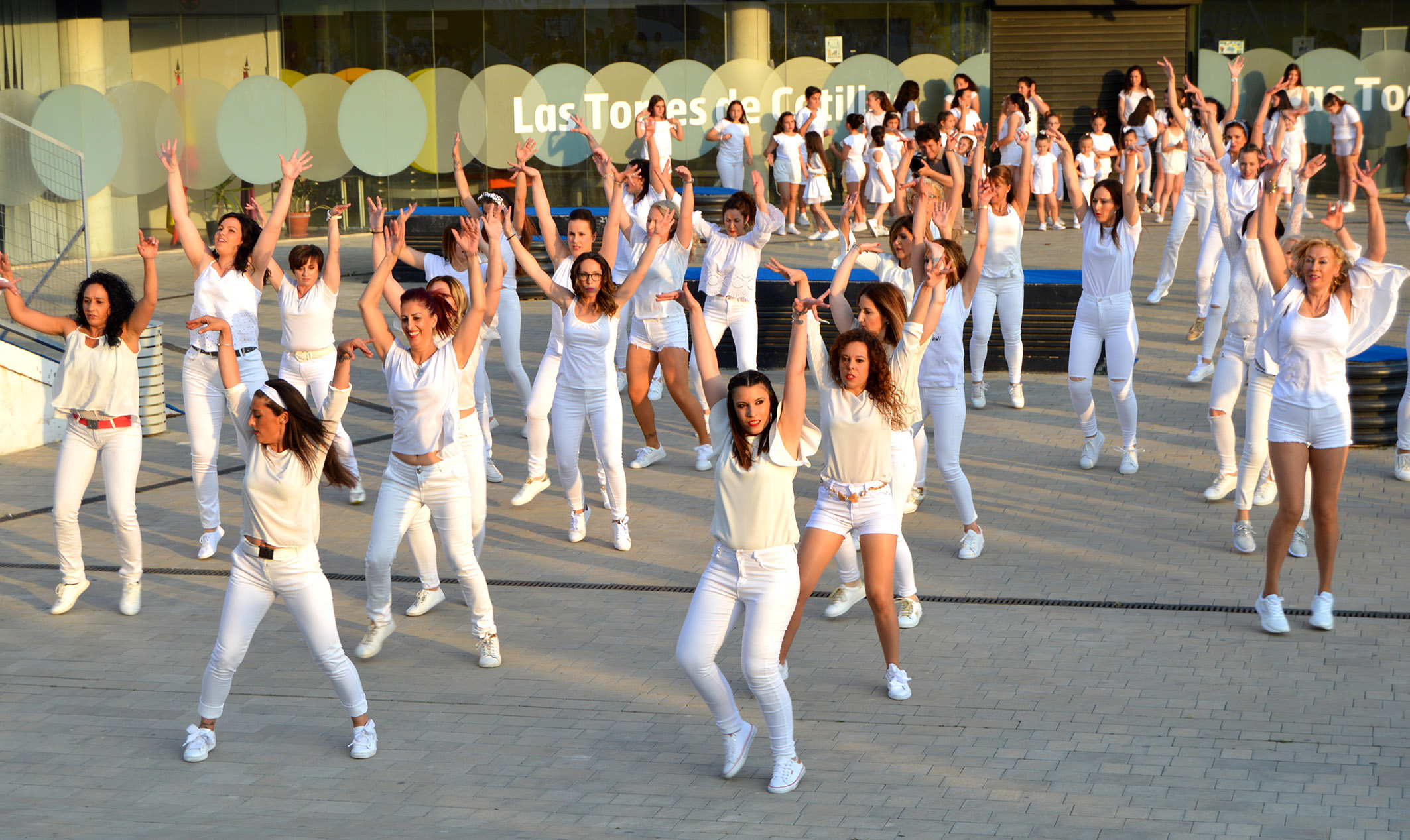 Celebrar su primer aniversario de una manera muy especial. Ése era el objetivo de la academia de danza ‘Víctor Campos’ de Las Torres de Cotillas, que el pasado viernes 11 de mayo organizó un espectacular flashmob en la plaza Adolfo Suárez. En él participaron cerca de 300 personas de 3 años en adelante, todos ellos vestidos de blanco, una divertida actividad que se alargó alrededor de una hora y ante la que se congregó numeroso público.