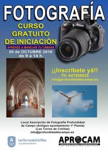 La asociación fotográfica ‘Profundidad de Campo’ (APROCAM) de Las Torres de Cotillas, en colaboración con el Ayuntamiento local, propone para el próximo sábado 20 de octubre un curso gratuito de iniciación al mundo de la fotografía. Con el título ‘Aprende a manejar tu cámara’, esta propuesta se desarrollará de 9 a 14 horas en el antiguo Ayuntamiento