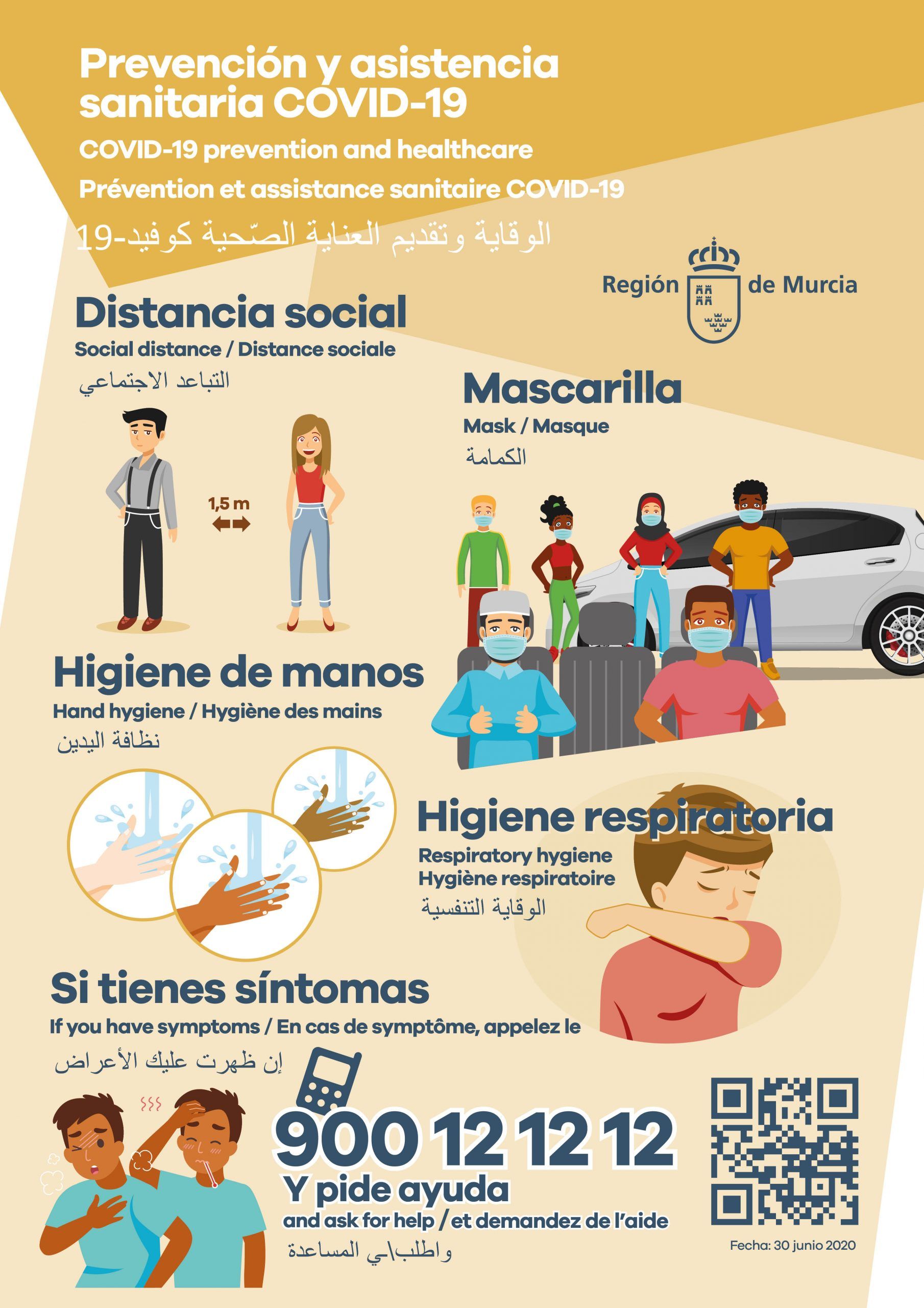 El municipio de Las Torres de Cotillas ha visto reforzadas las tareas informativas para la prevención y asistencia sanitaria ante la crisis provocada por COVID-19. Coordinado por la Concejalías de Servicios Sociales y de Salud, se ha realizado el reparto de cartelería impresa con mensajes en castellano, árabe, francés e inglés, que se ha reforzado con su difusión online en los canales municipales. “Es muy importante que todos los ciudadanos del municipio, independientemente de su origen y lengua, tengan la información necesaria para evitar la propagación del virus en la comunidad”, señala la edil María del Mar Ruiz Rosillo.