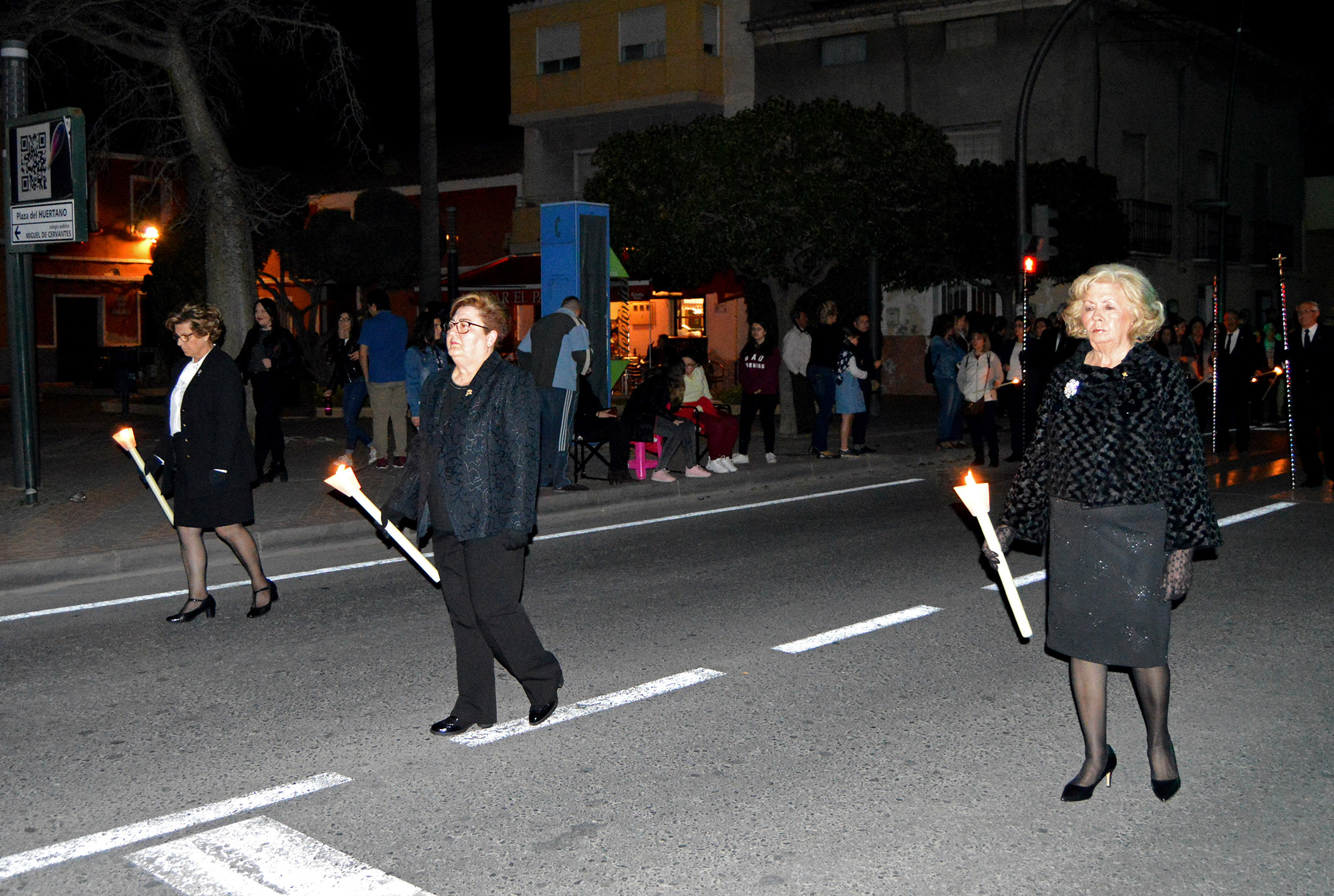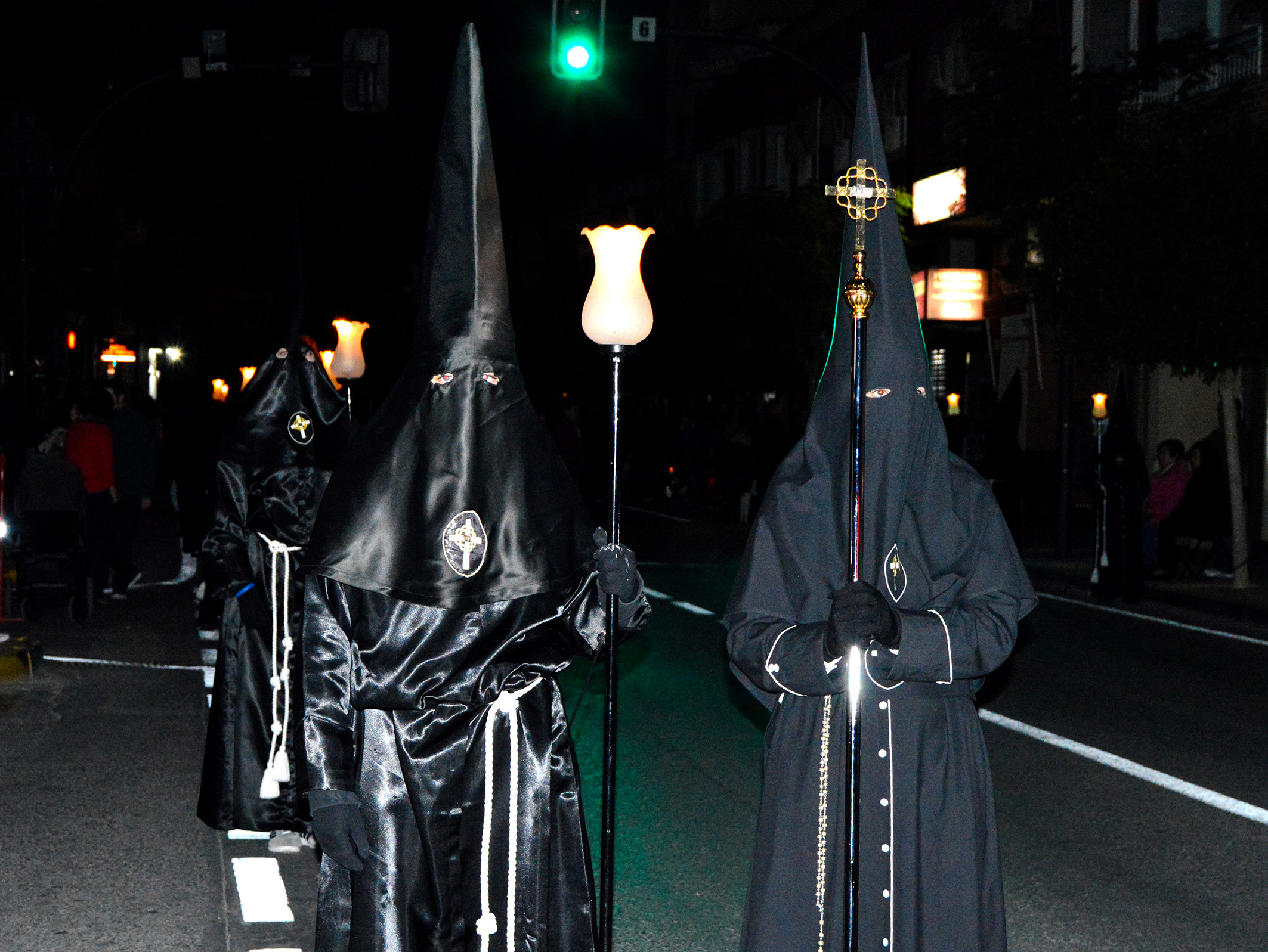 Las calles de Las Torres de Cotillas se quedaron mudas en la noche de ayer, Miércoles Santo. Y lo hicieron, tal y como manda la tradición, con motivo de la ceremoniosa procesión del Silencio, que corrió a cargo de los nazarenos de la cofradía del Santísimo Cristo Crucificado. Así, un año más las túnicas negras, la solemnidad y el recogimiento tomaron el municipio para desfilar por el recorrido habitual de las procesiones torreñas (salida de la Iglesia de La Salceda, calle Fernández Jara, calle Reyes Católicos, calle Campo, calle Mula, calle Mayor y de vuelta al templo).